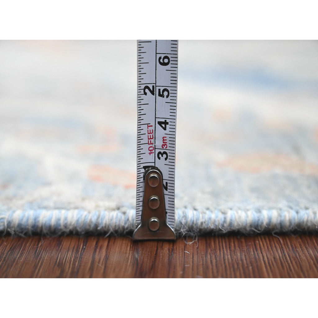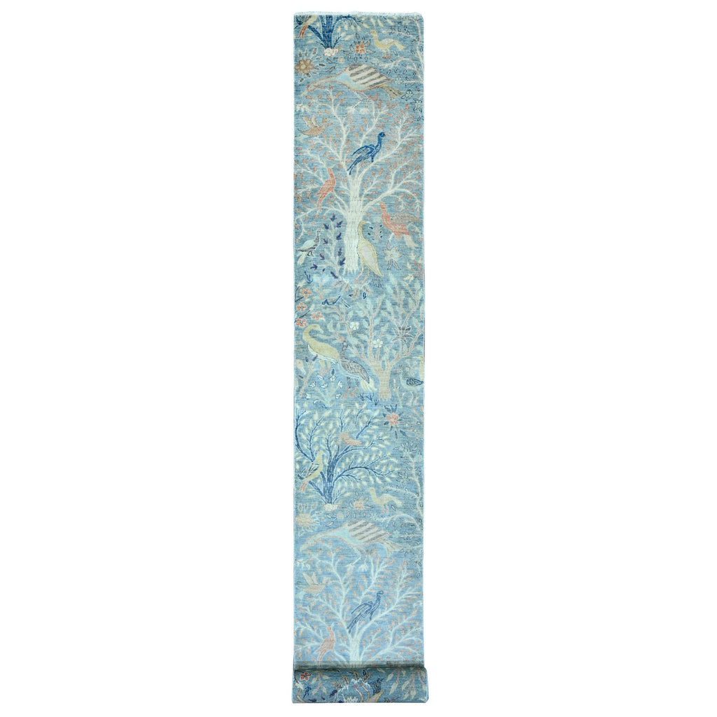 2'6"x25'4" Baby Blue, Afghan Peshawar With Birds Of Paradise Design, Soft Wool, Vegetable Dyes, Hand Knotted, Xl Runner, Oriental Rug FWR123696