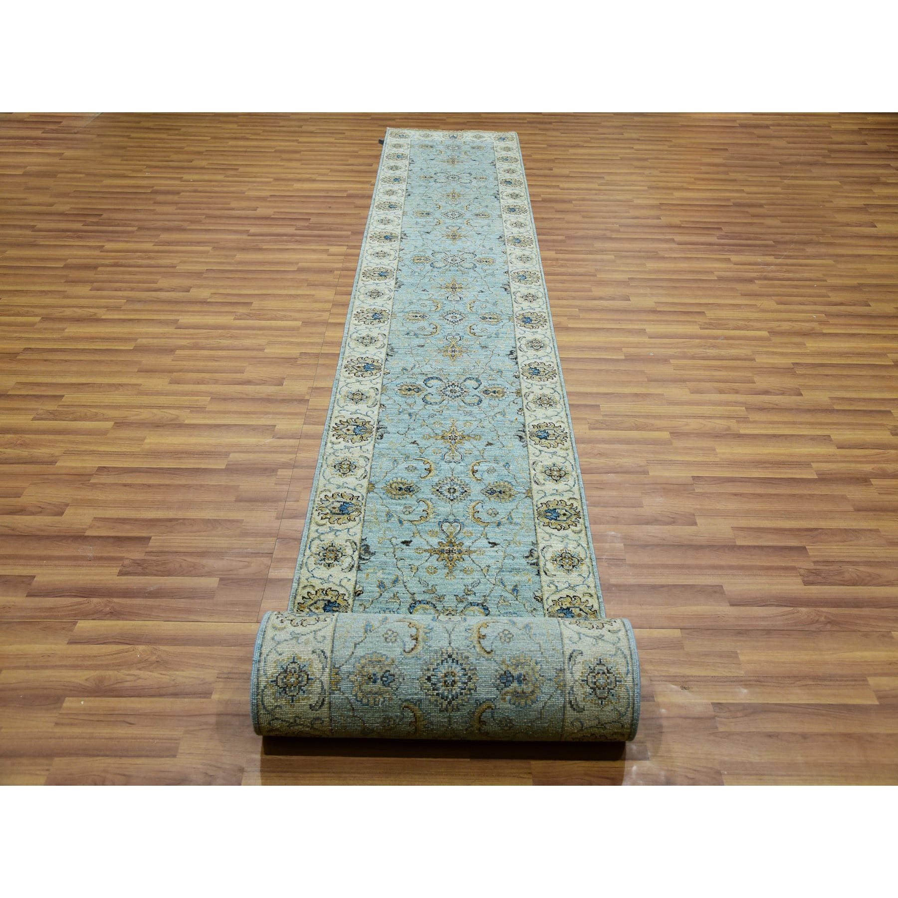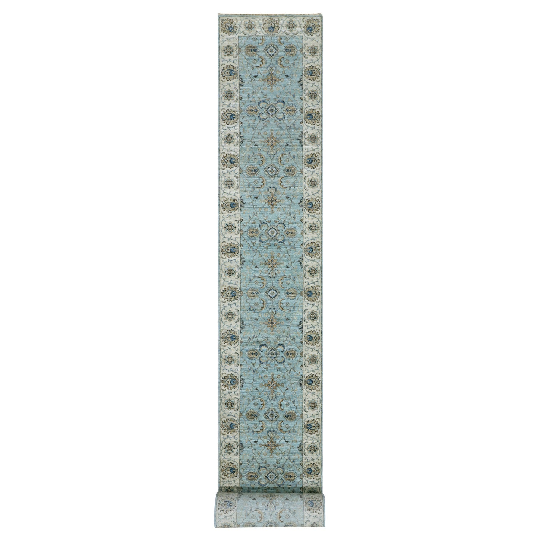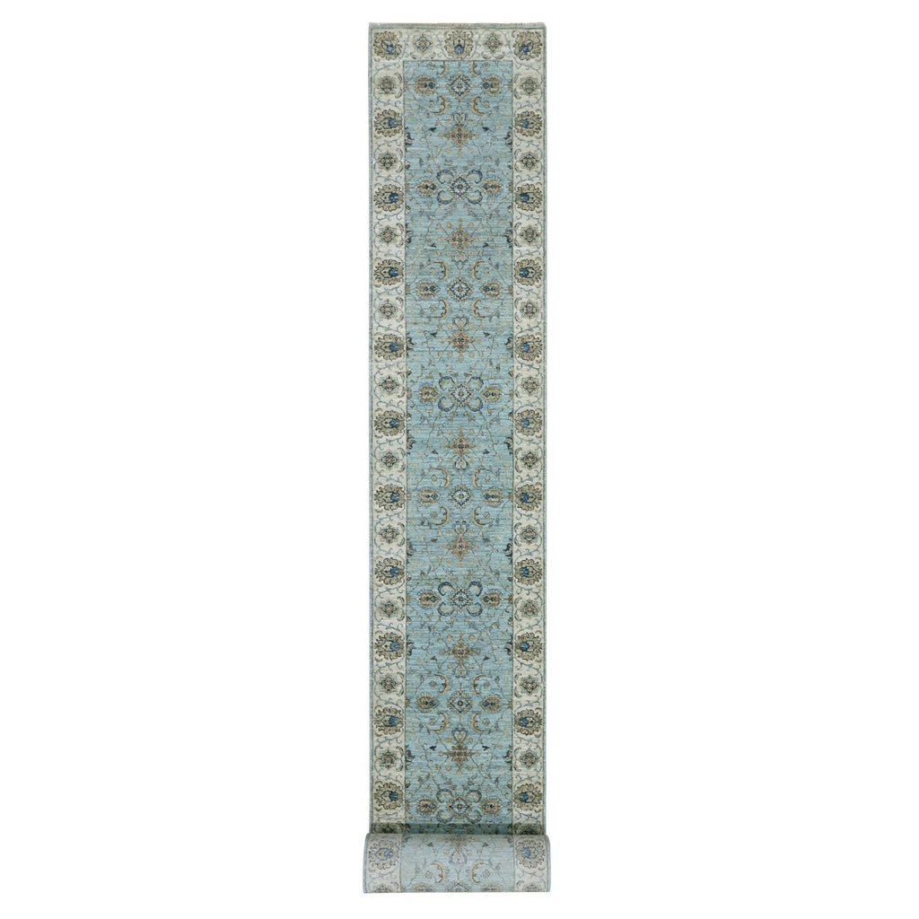 2'6"x25'8" Cerulean Blue, Hand Knotted Natural Dyes, Pure Wool, Denser Weave, Shah Abbas Xl Runner With Floral Design, Agra Oriental Rug FWR456222