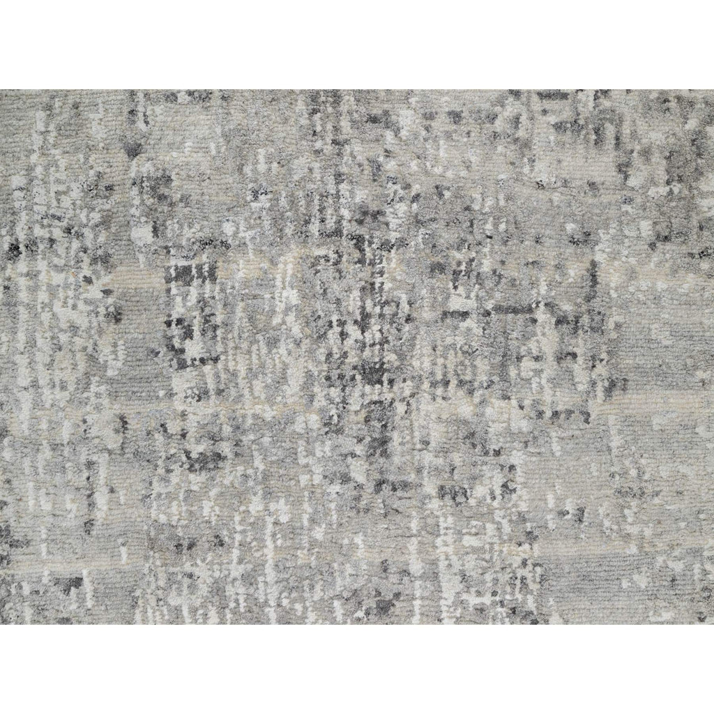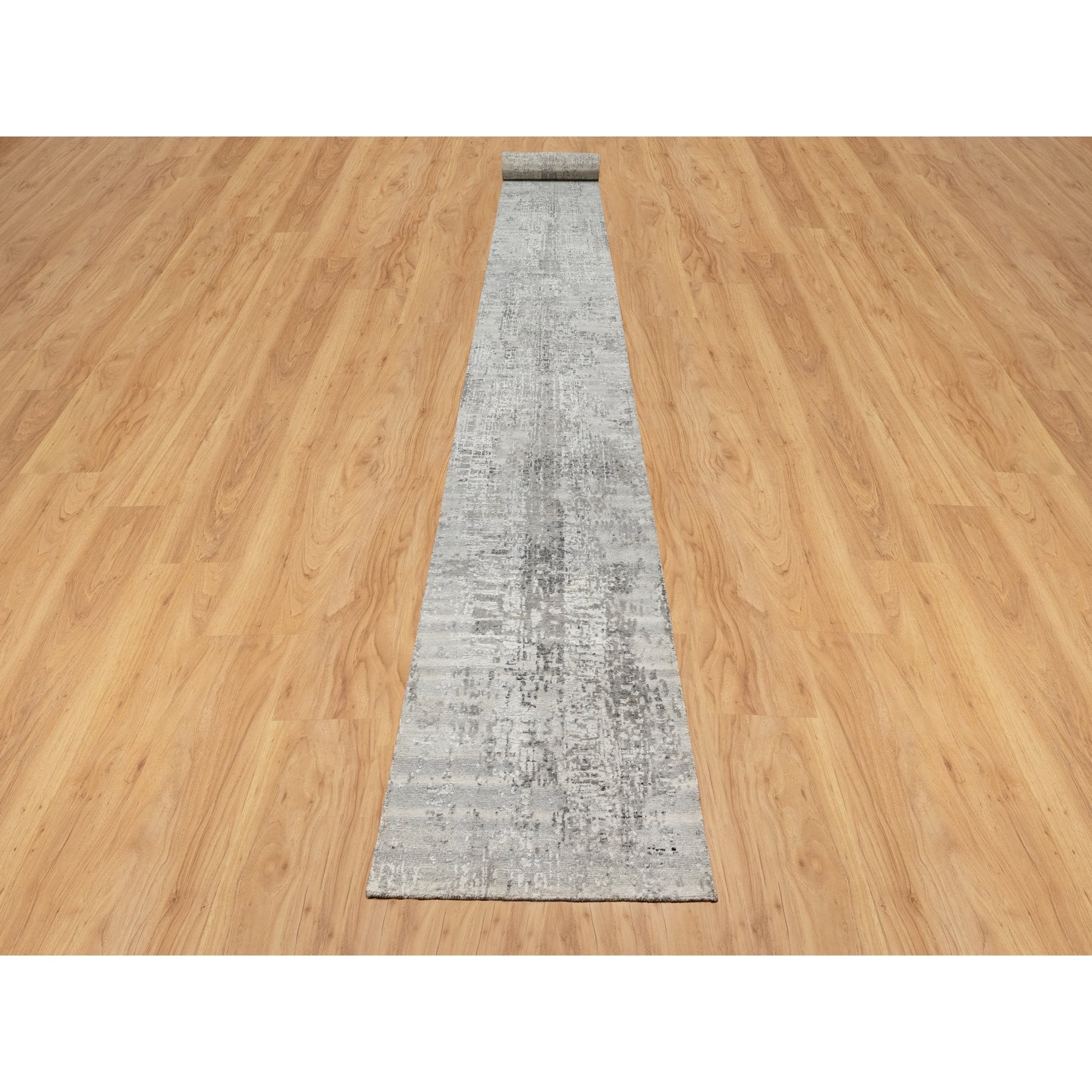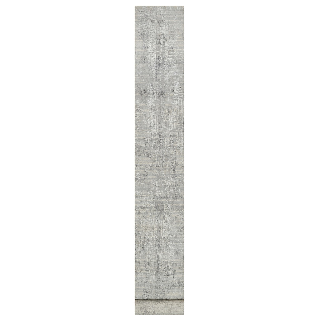 2'6"x26' Pastel Gray, Hand Knotted, Undyed Natural Wool, Modern Design, Hand Spun, Xl Runner, Oriental Rug FWR545082