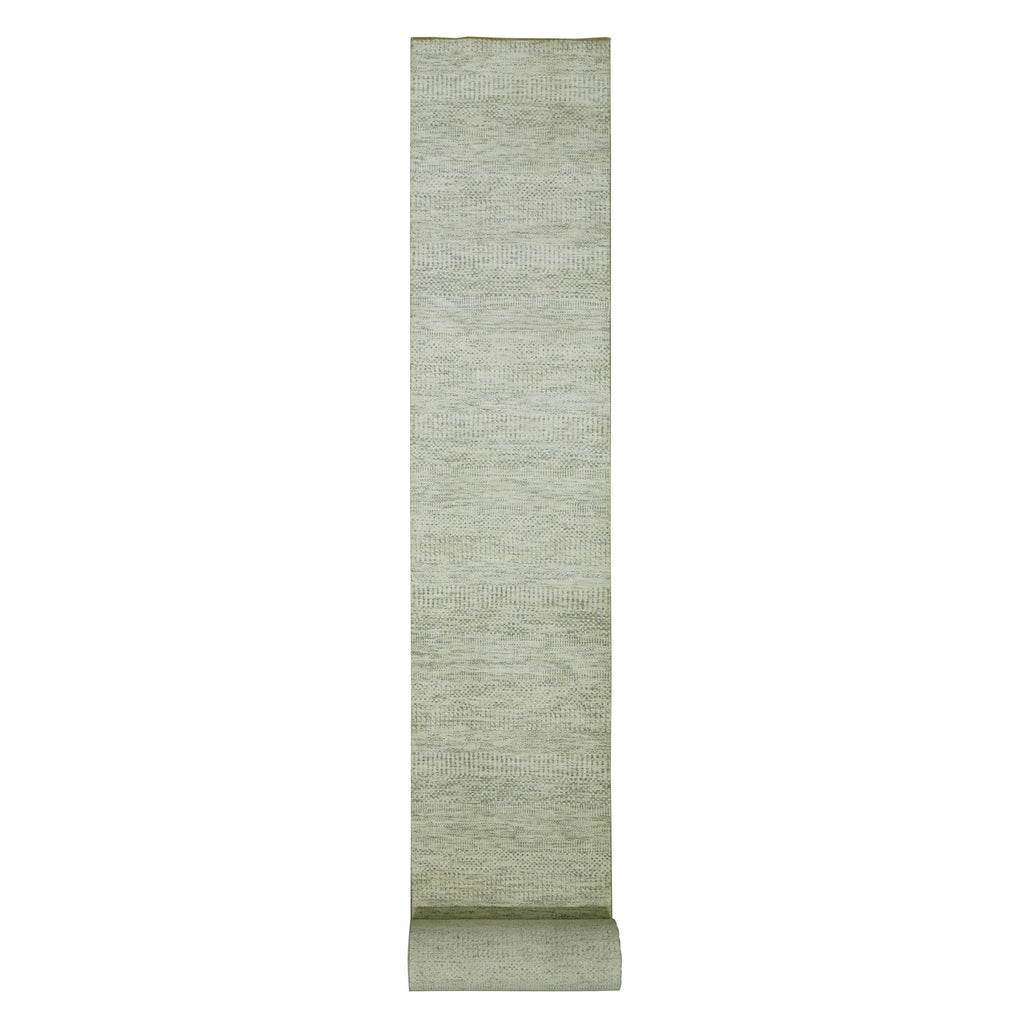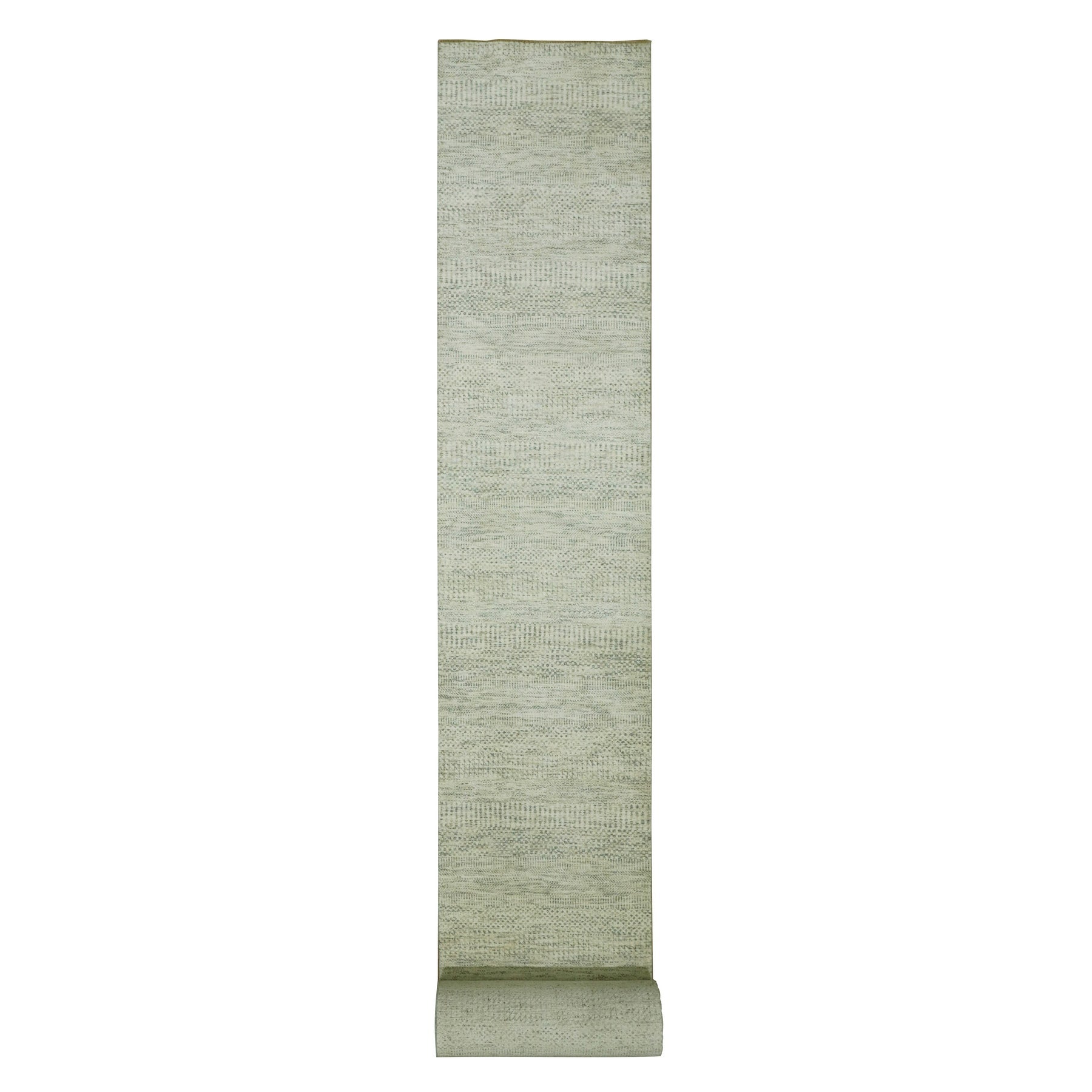 2'6"x29'9" Aesthetic White, Vibrant Wool, Organic Sustainable Textile, Modern Grass Design, Tone On Tone, Hand Knotted Xl Runner Oriental Rug FWR456180