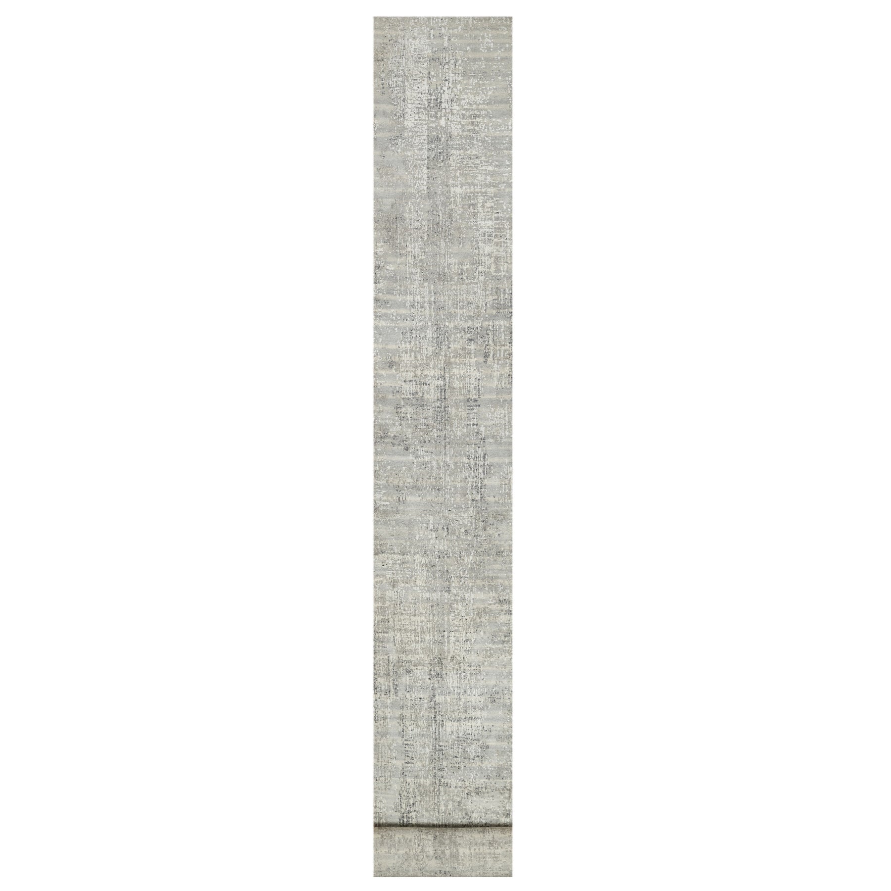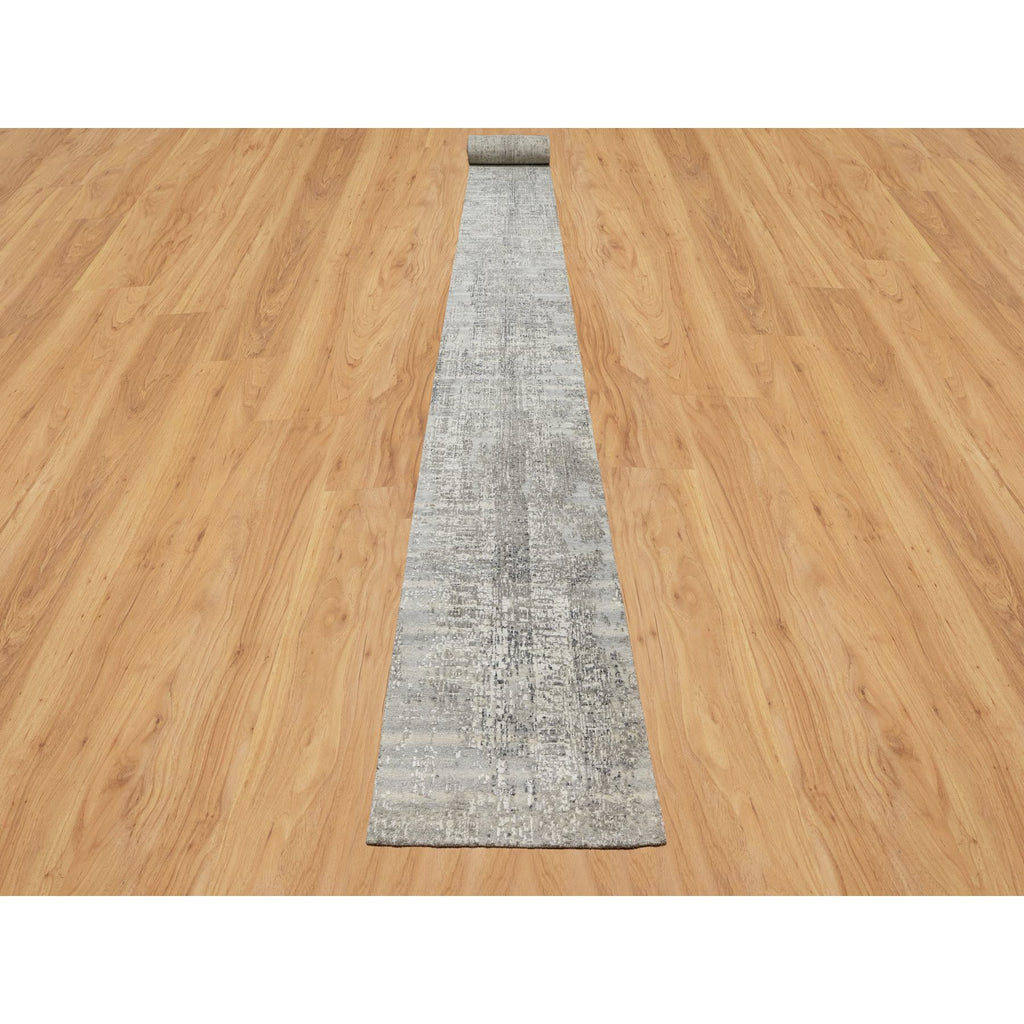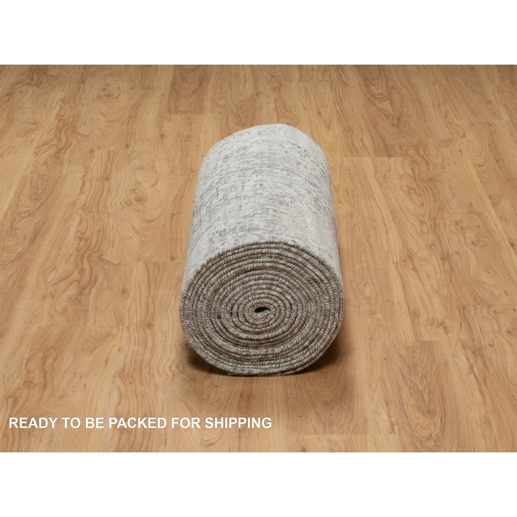 2'6"x29'9" Dorian Gray, Hand Knotted, Modern Design, Hand Spun, Undyed Natural Wool, Xl Runner, Oriental Rug FWR545088