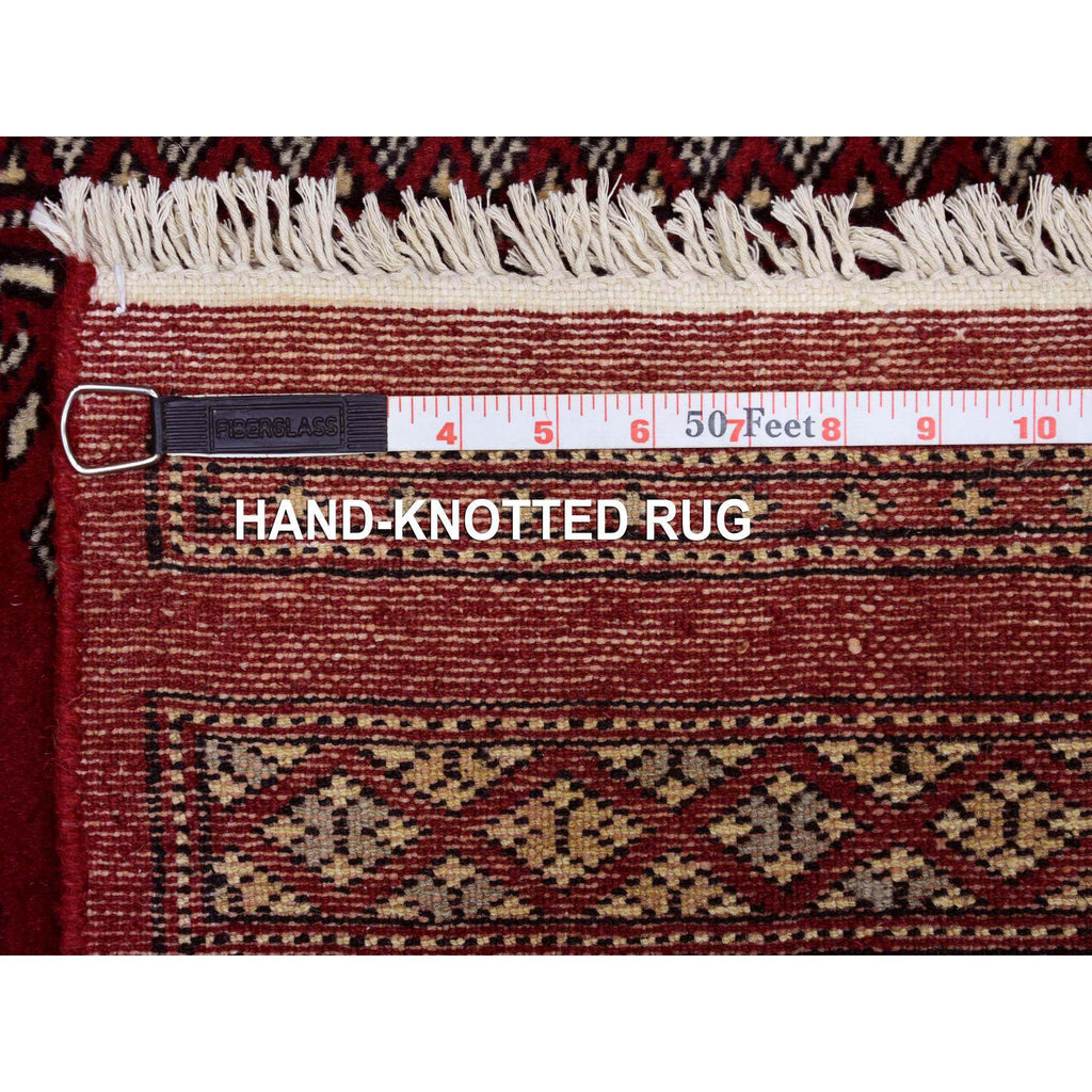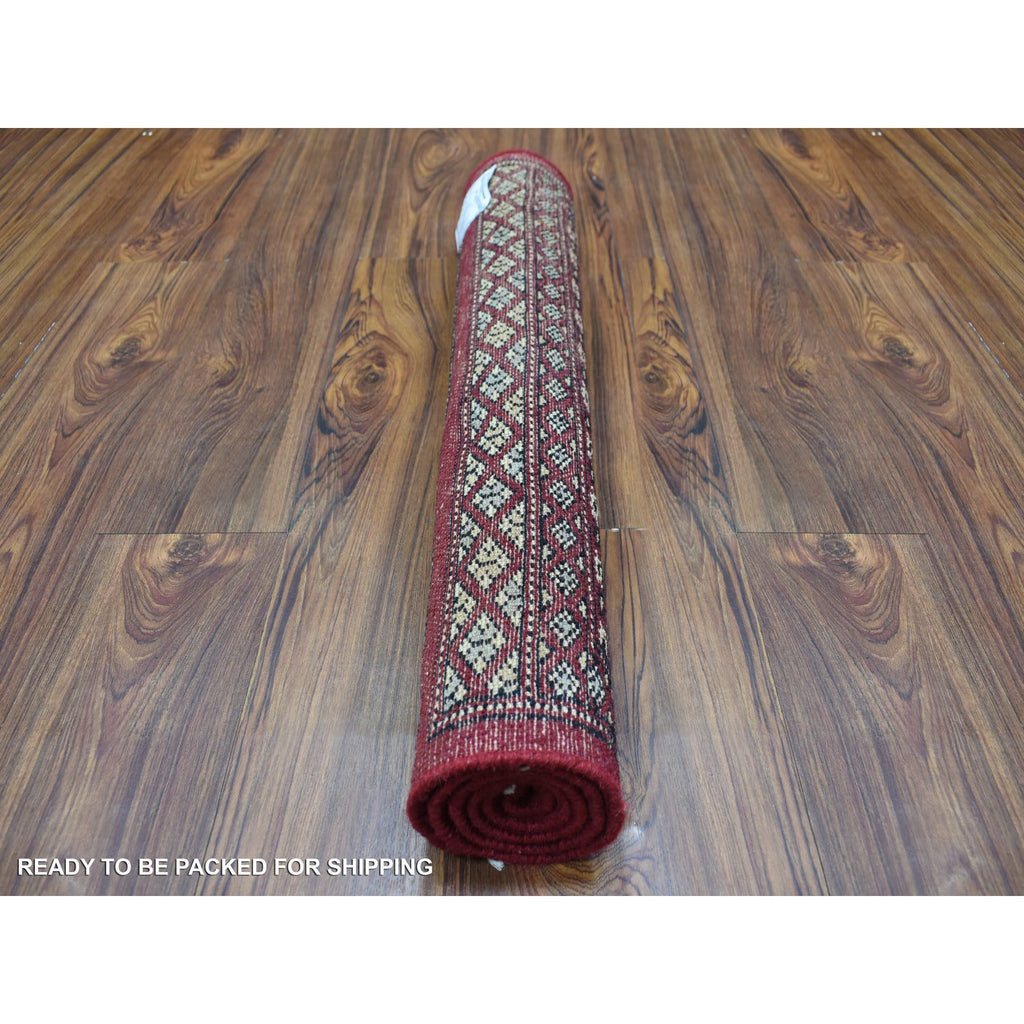 2'6"x3'9" Hand Knotted Mori Bokara With Tribal Medallions Design Deep Red Pure Wool Oriental Rug FWR415254
