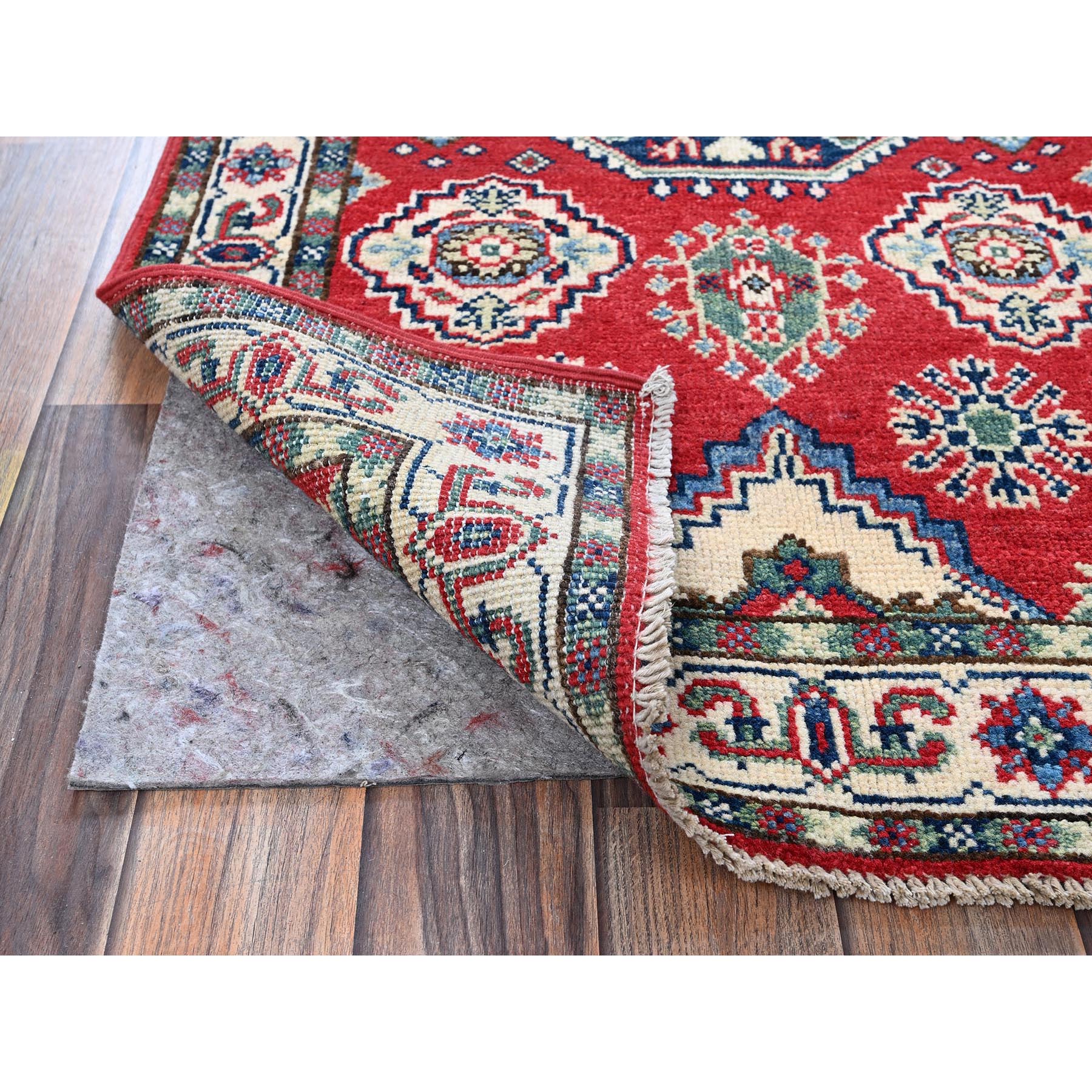 2'6"x4' Berry Red, Kazak With All Over Tribal Motifs, Hand Knotted, Soft And Shiny Wool, Vegetable Dyes, Denser Weave, Sample, Mat, Oriental Rug FWR2436