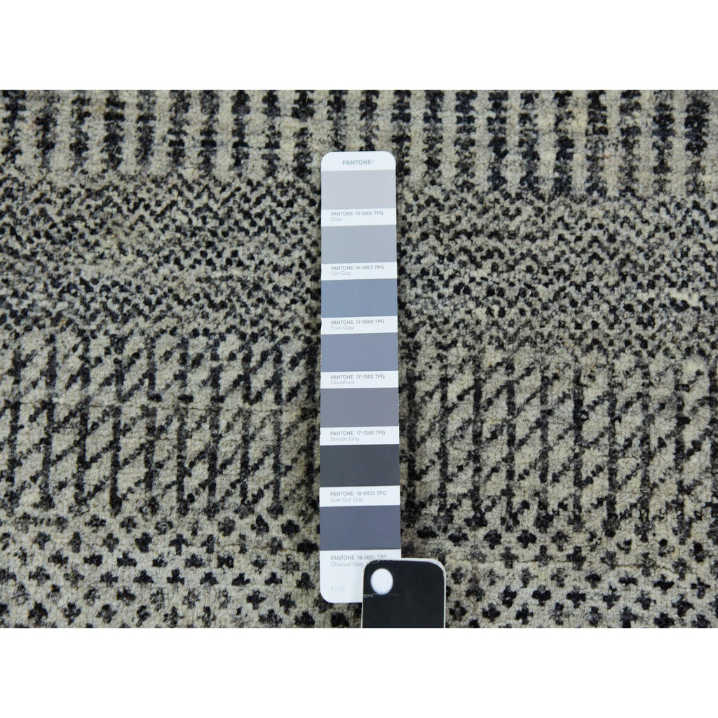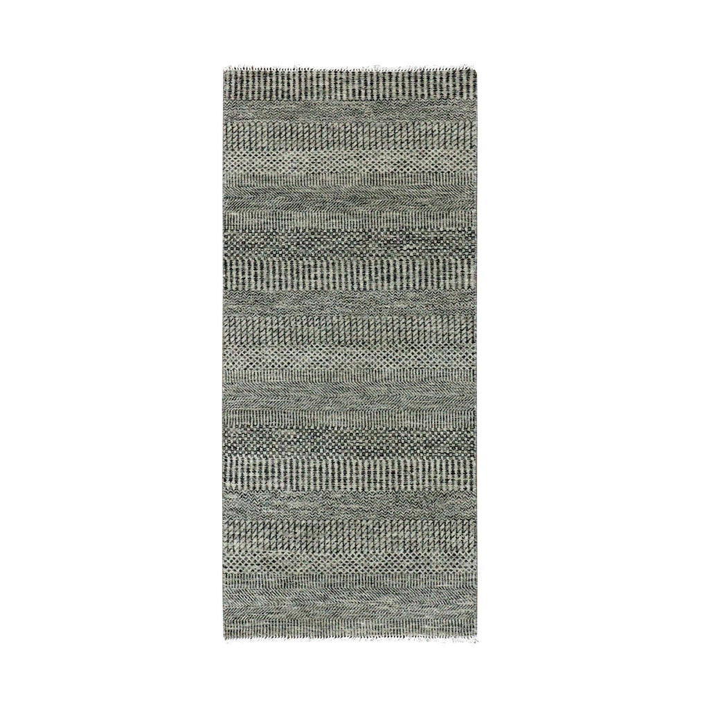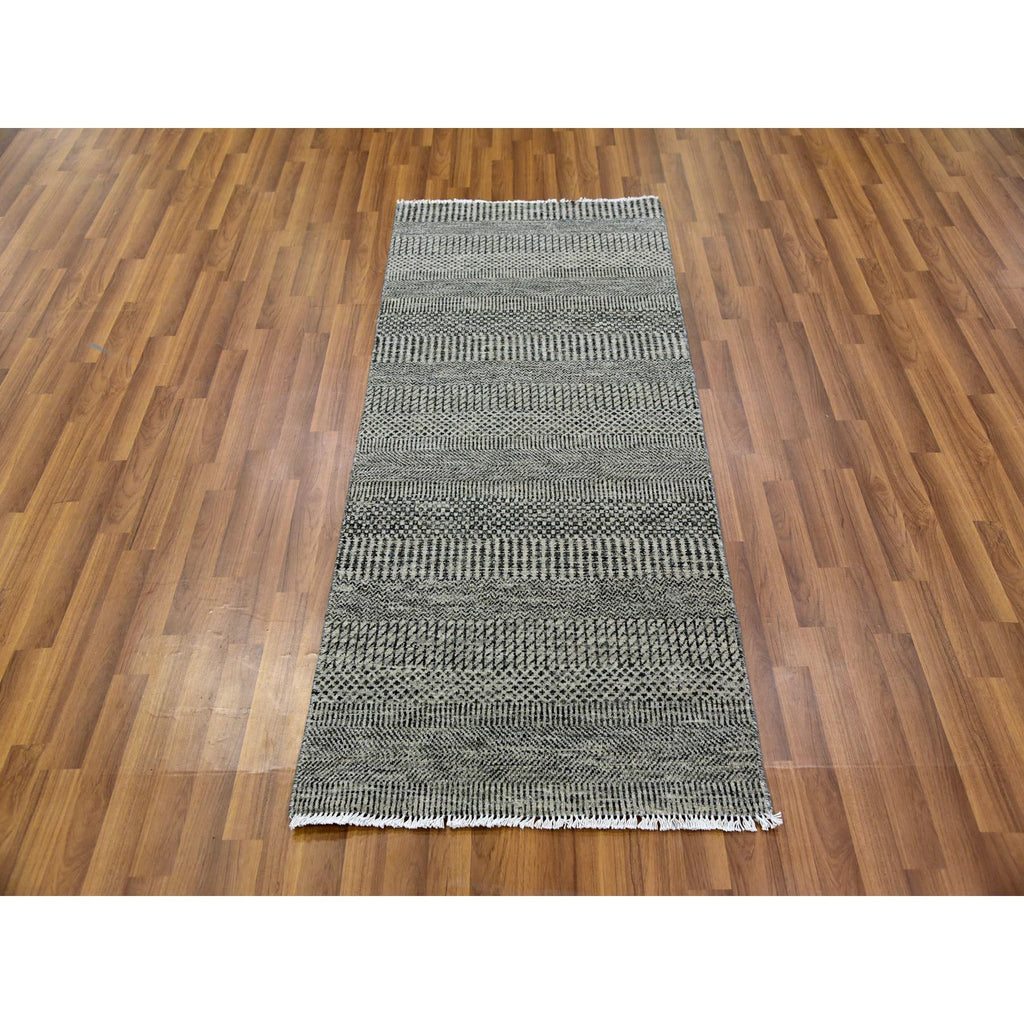 2'6"x5'10" Dove And Onyx Gray, Hand Knotted, Undyed Modern Grass 100% Wool Design, Tone On Tone, Oriental Runner Rug FWR478242