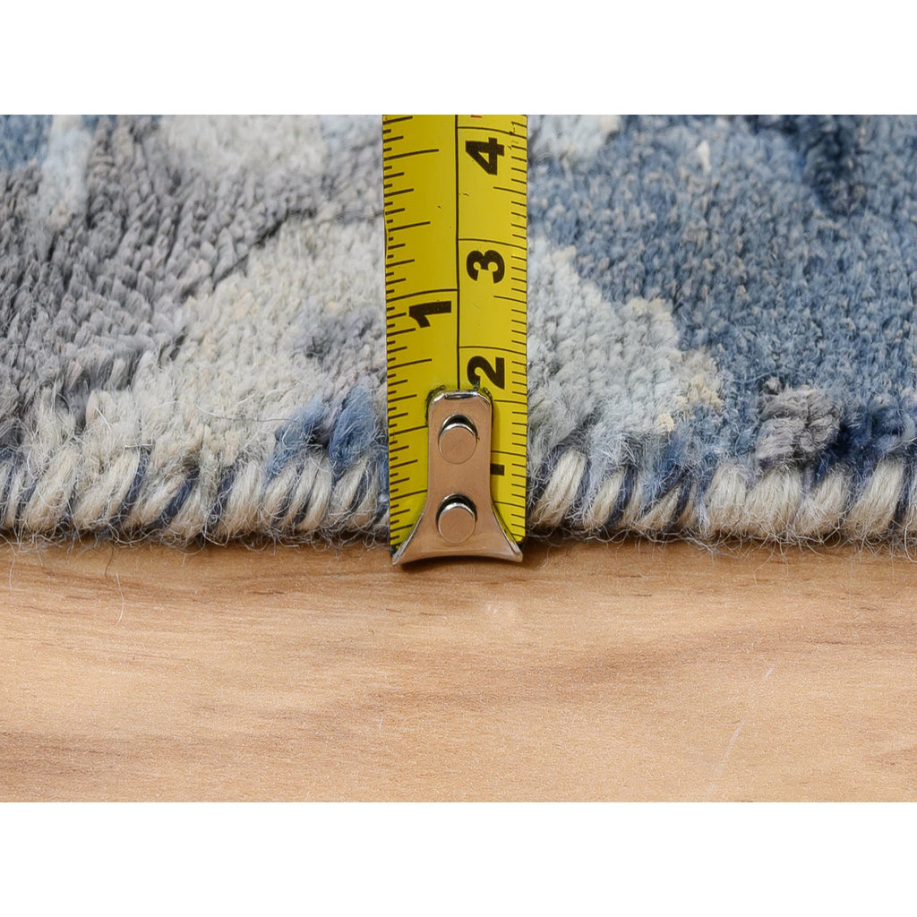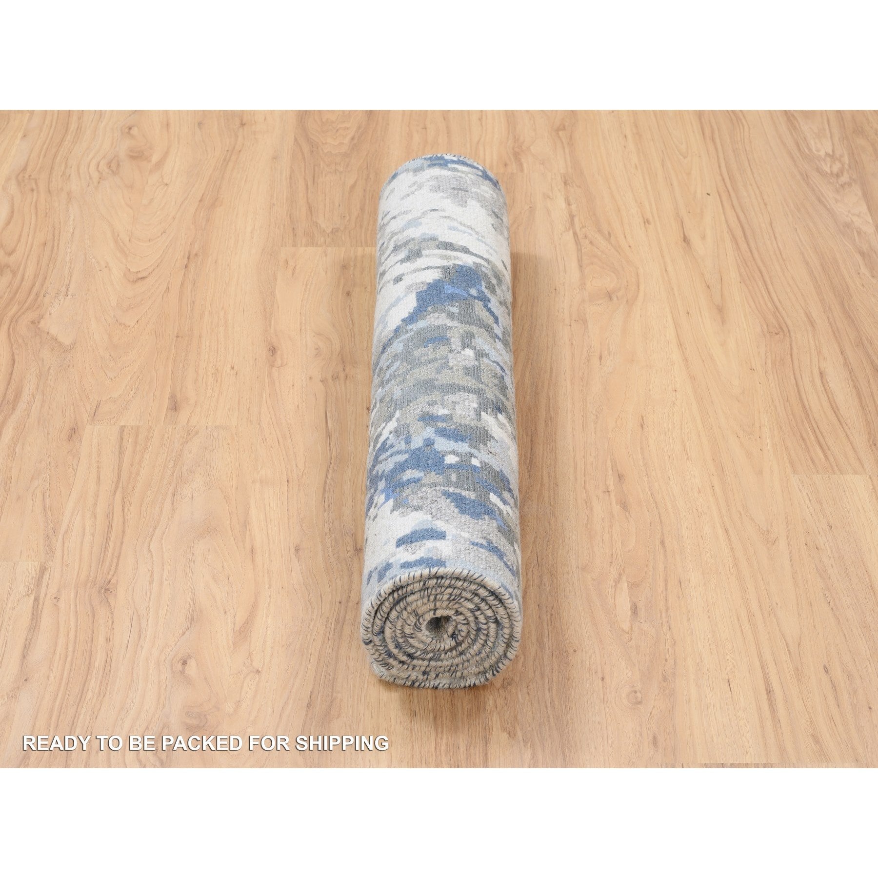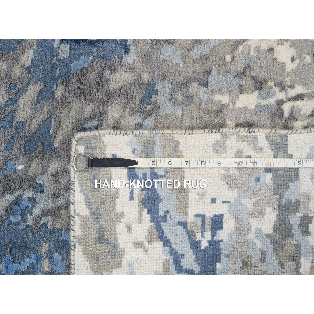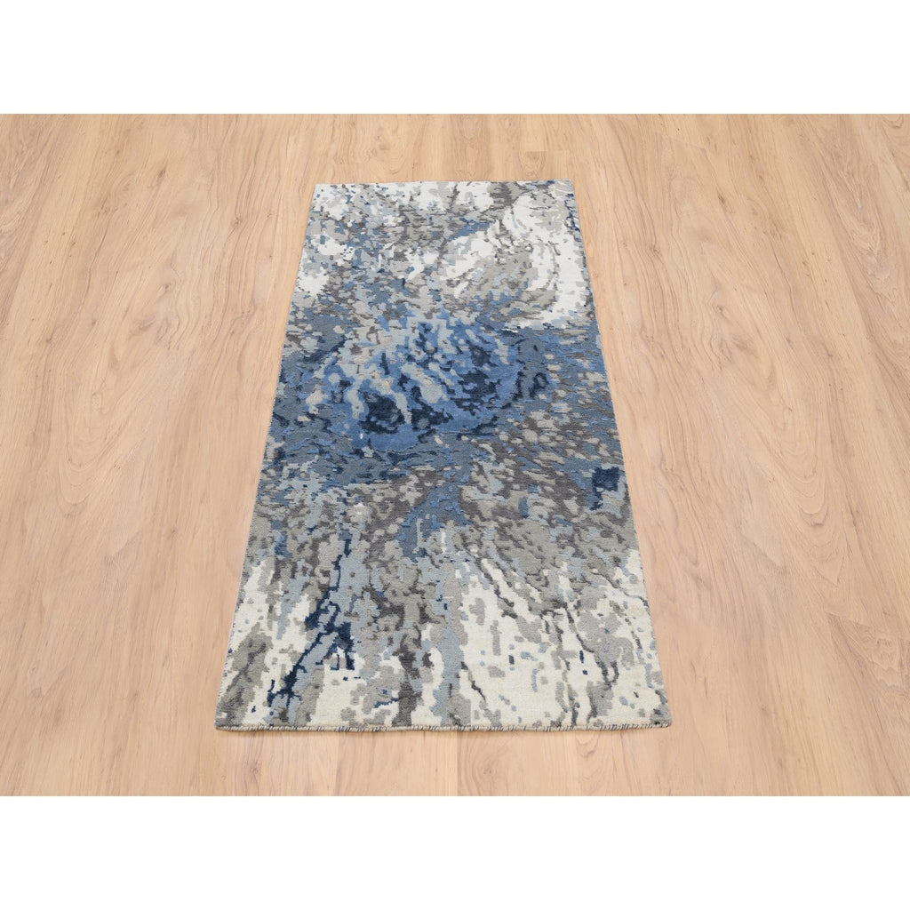 2'6"x6'2" Denim Blue, Abstract Design, Hi-low Pile, Wool And Art Silk, Hand Knotted, Oriental, Runner Rug FWR382578