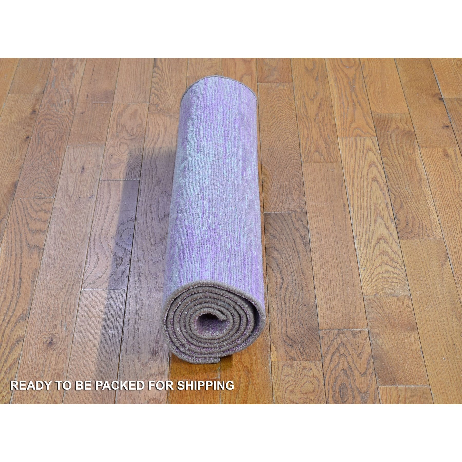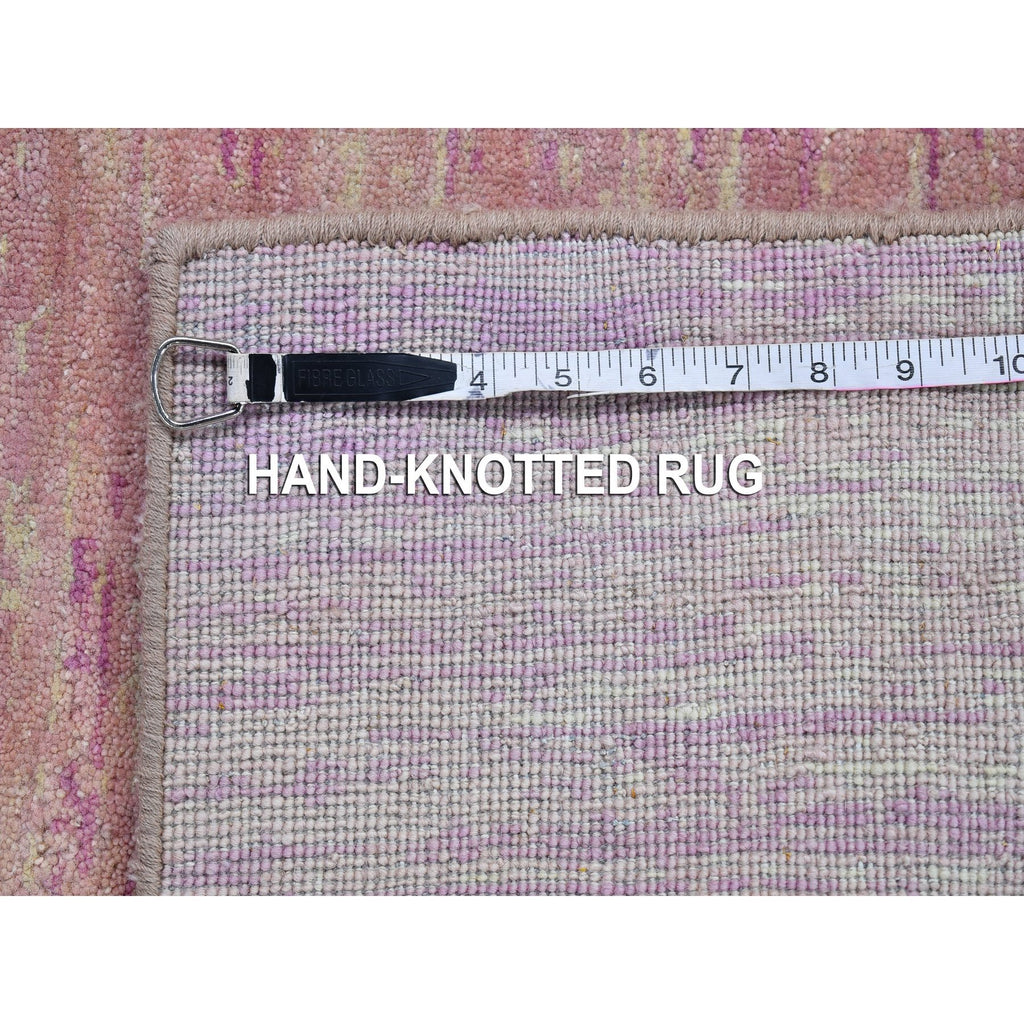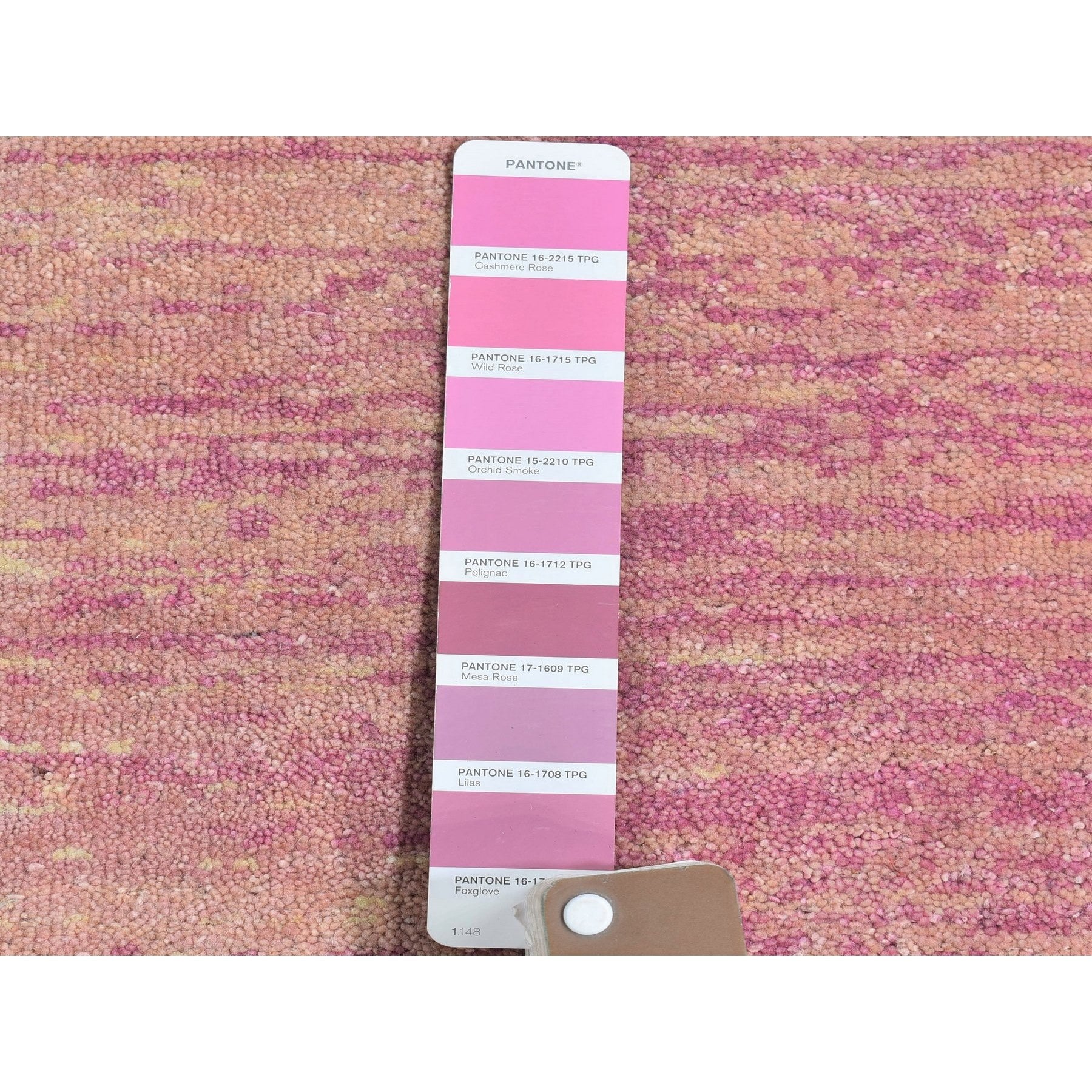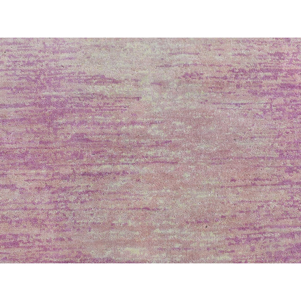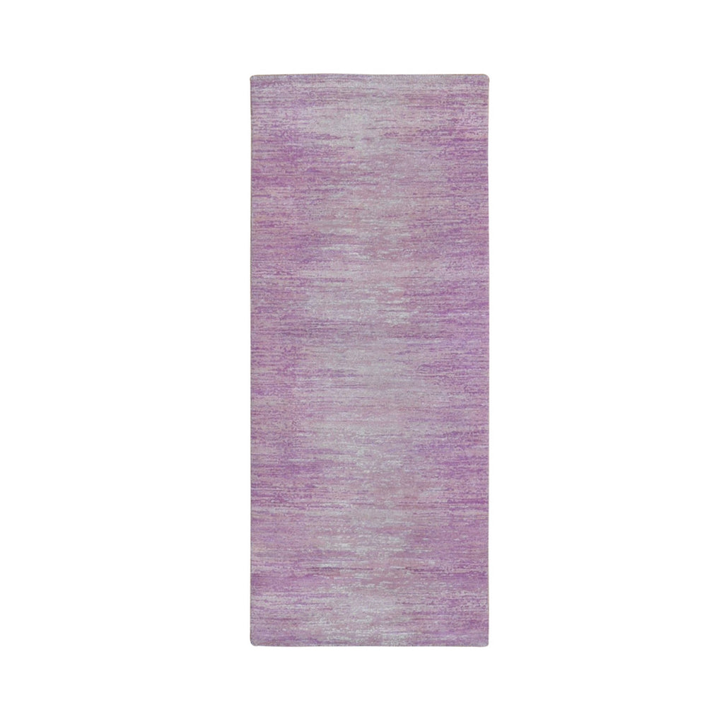2'6"x6'2" Pink With Touches Of Ivory Zero Pile Natural Wool Only Horizontal Ombre Design Runner Hand Knotted Oriental Rug FWR400518