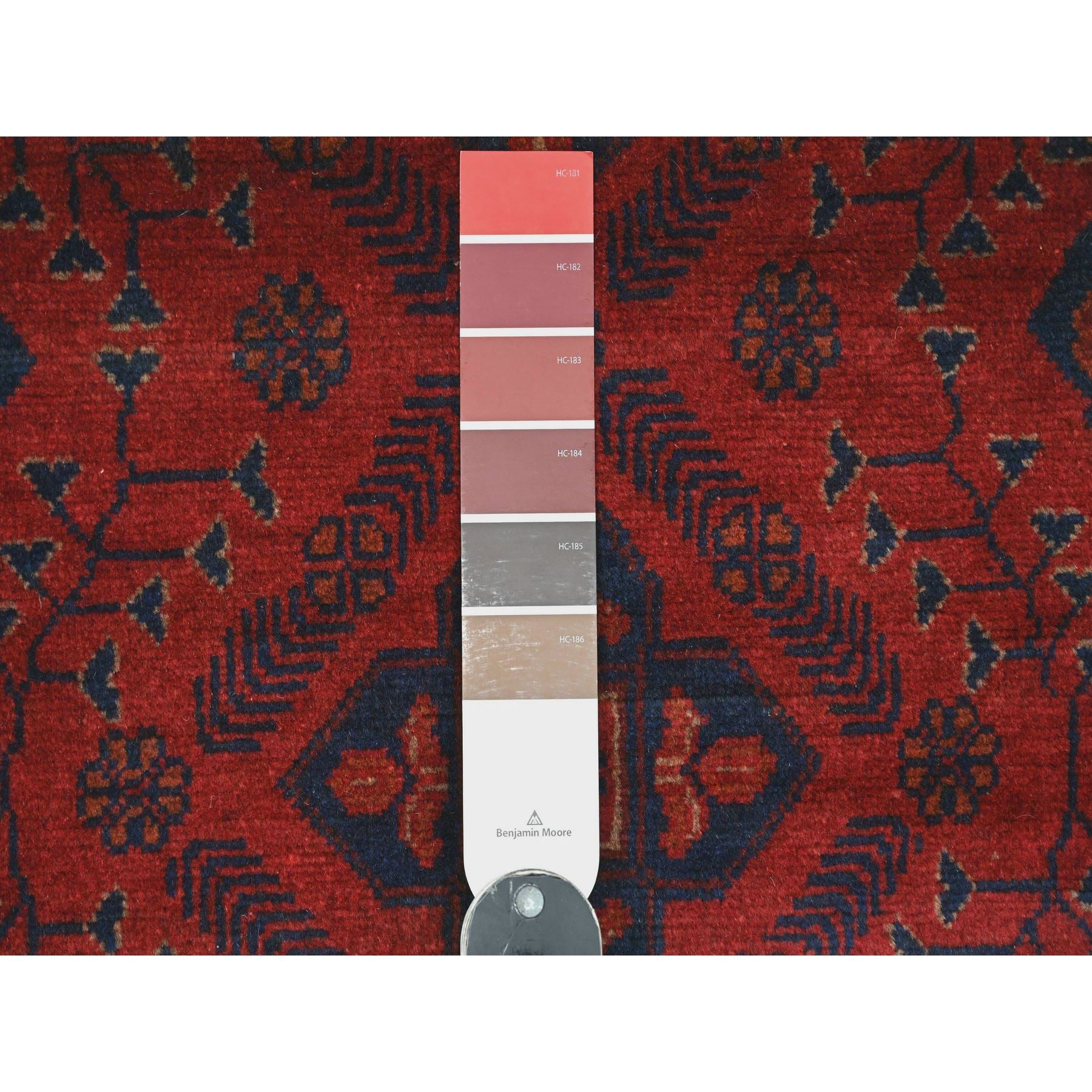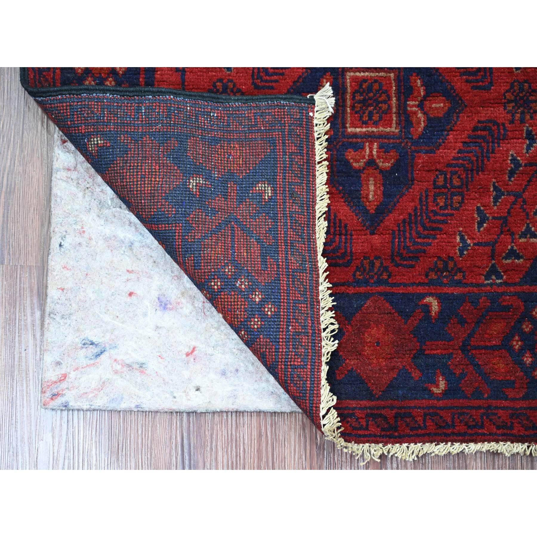 2'6"x6'2" Scarlet Red, Afghan Andkhoy With Geometric Design, Soft Pile, Pure Wool, Hand Knotted, Runner, Oriental Rug FWR124254