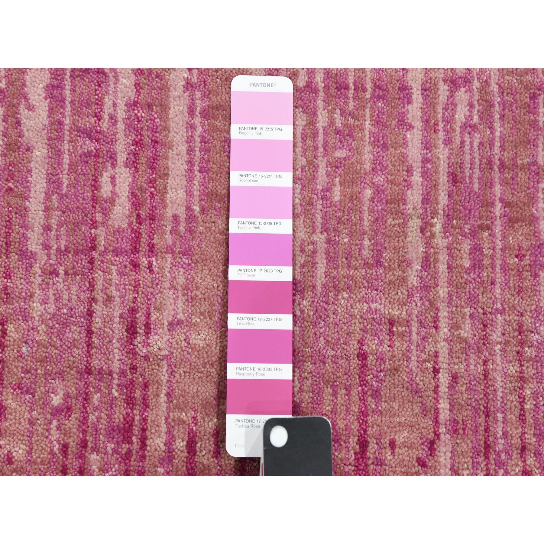 2'6"x6'4" Pink Natural Wool Hand Knotted Vertical Ombre Design Runner Oriental Rug FWR450666
