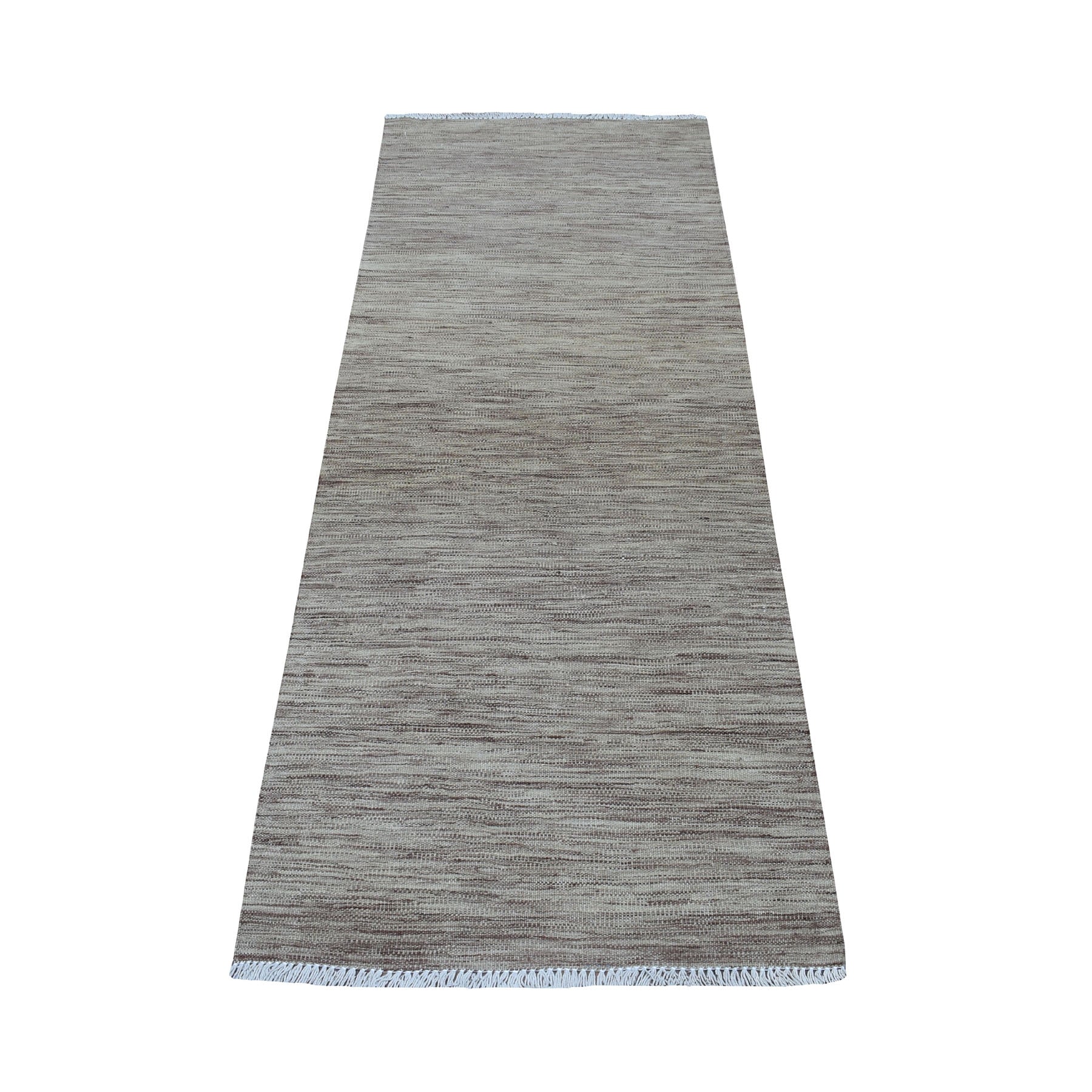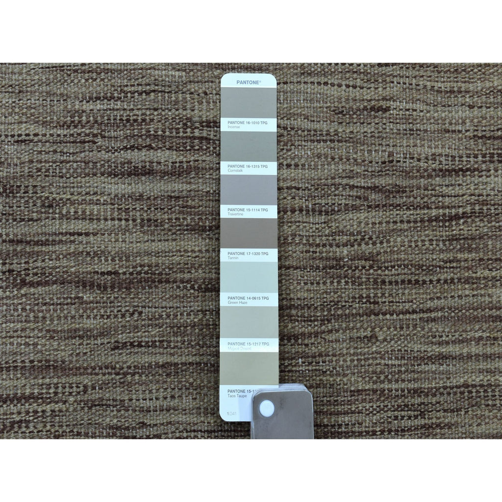 2'6"x6'5" Brown Shades Flat Weave Kilim Pure Wool Hand Woven Runner Oriental Rug FWR323196