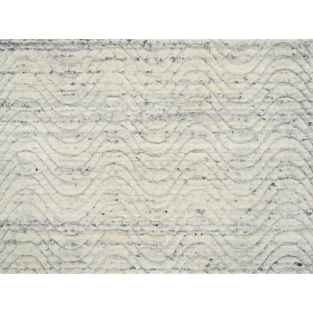 2'6"x6' Beige, Hand Loomed Variegated Textured Modern Design, Organic Wool, Runner Oriental Rug FWR389040