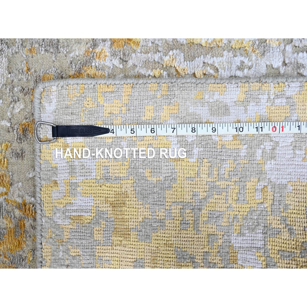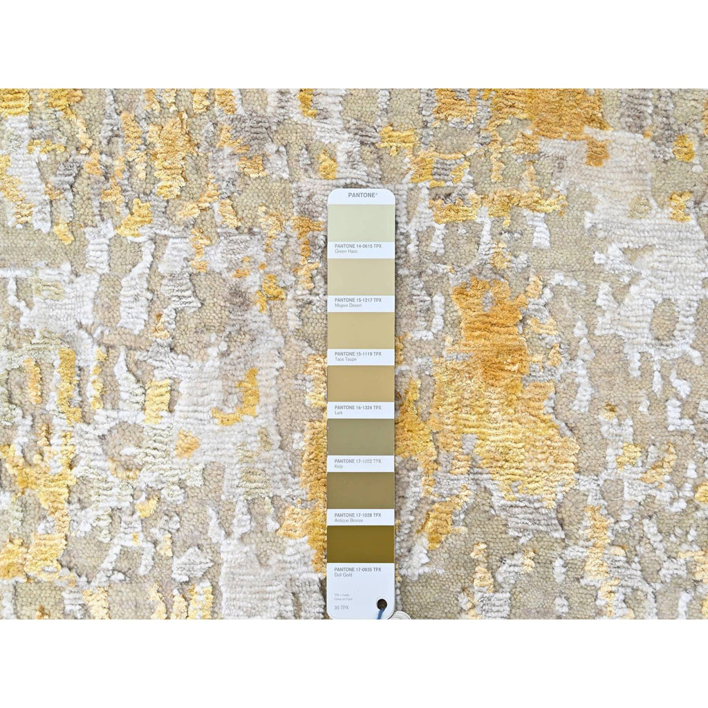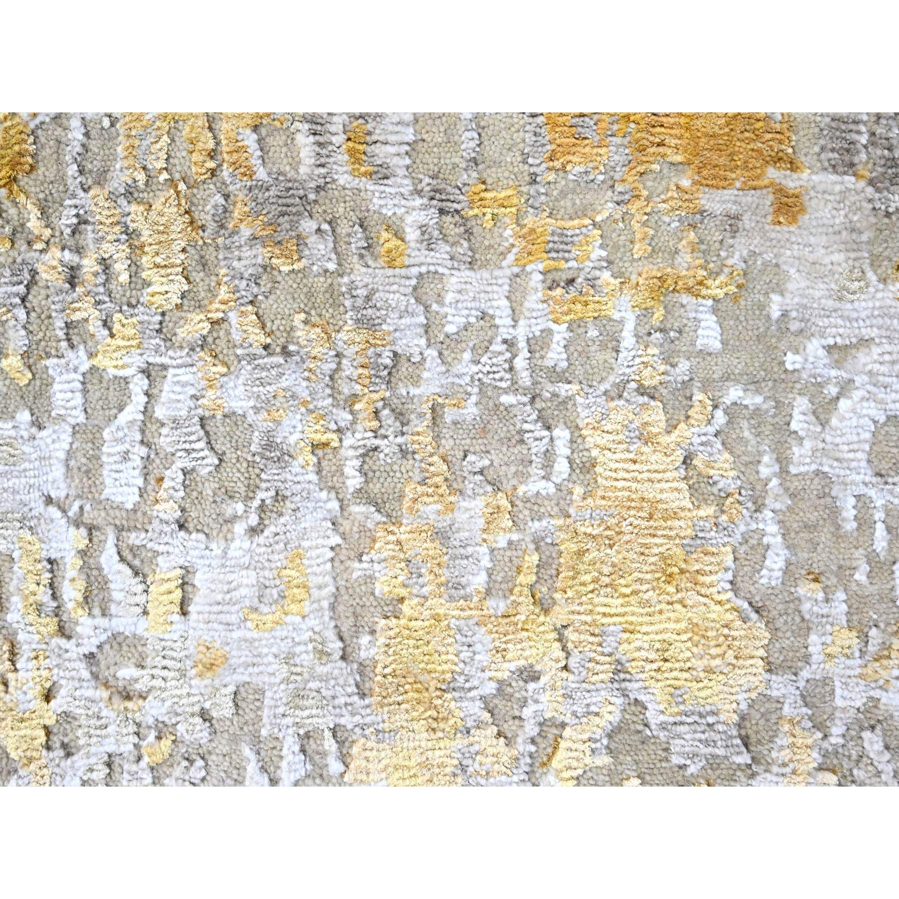 2'6"x6' Beige With Gold, Abstract Design, Wool And Silk, Hi-low Pile, Hand Knotted, Runner, Oriental Rug FWR60696