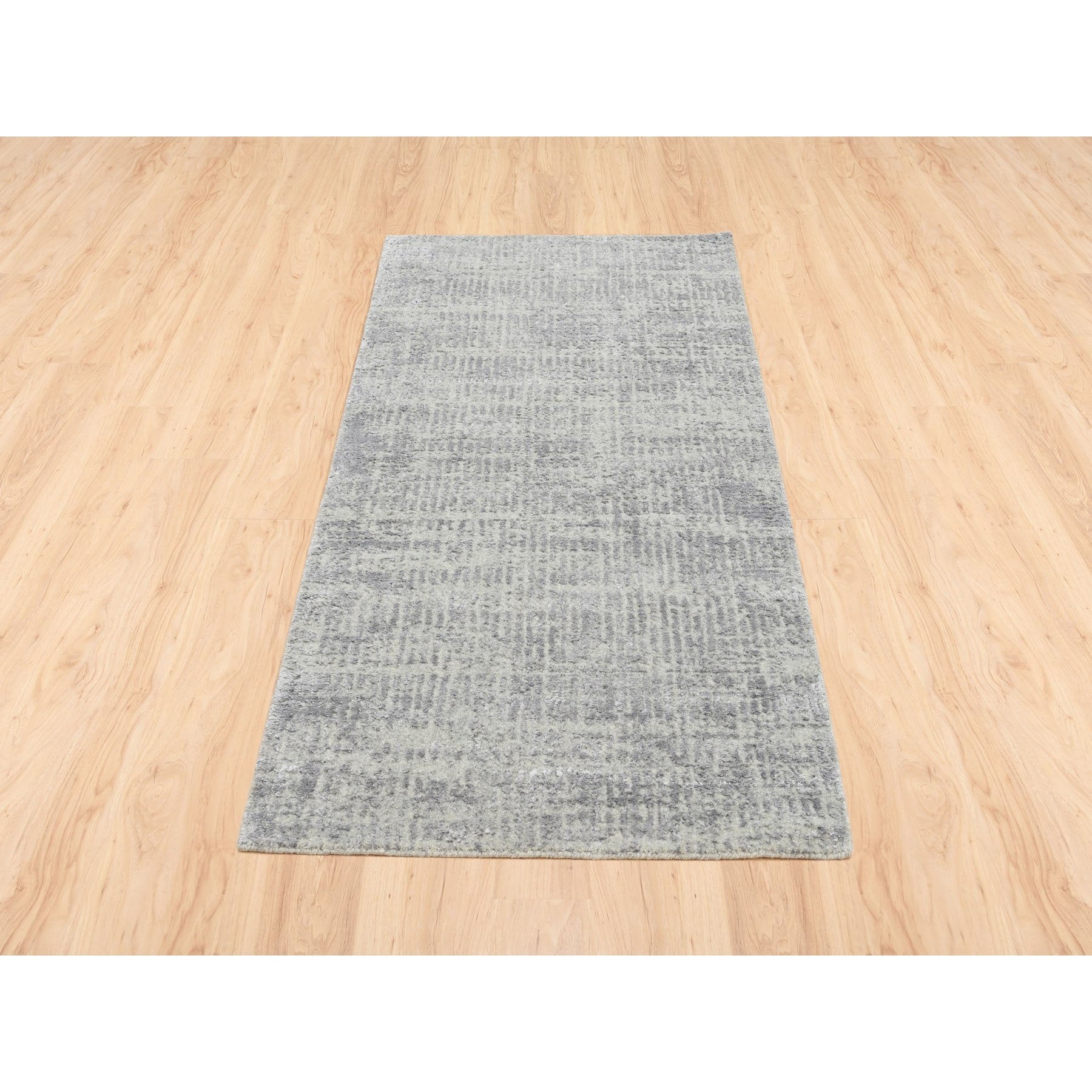 2'6"x6' Gray Fine Jacquard Hand-loomed Modern Wool And Silk Oriental Extra Soft Runner Rug FWR377106