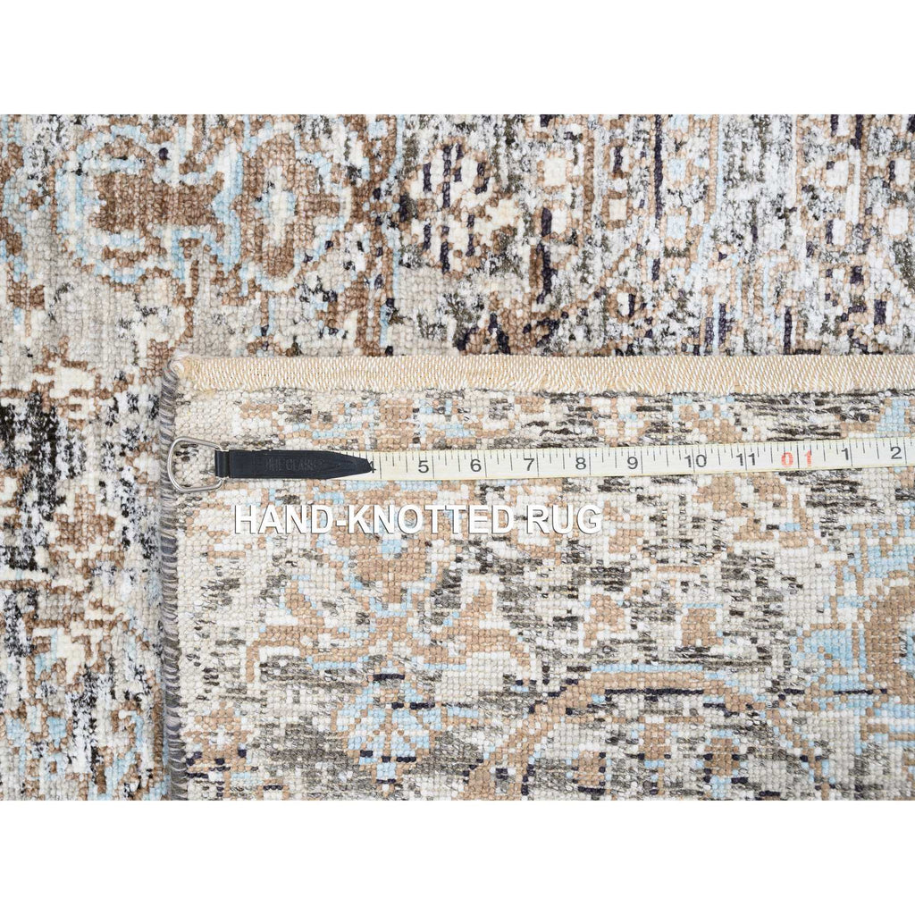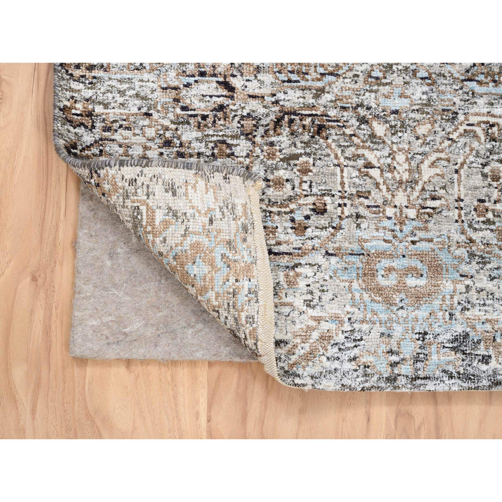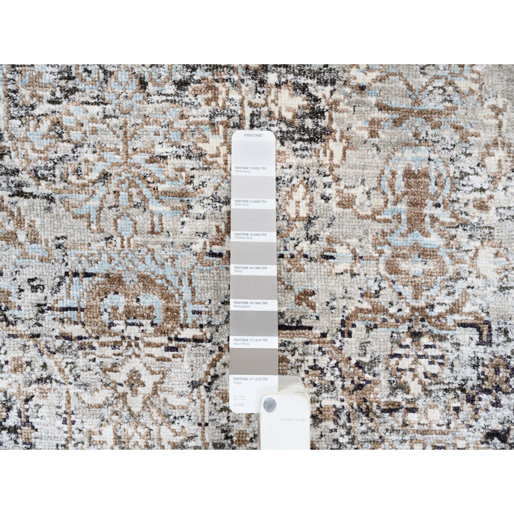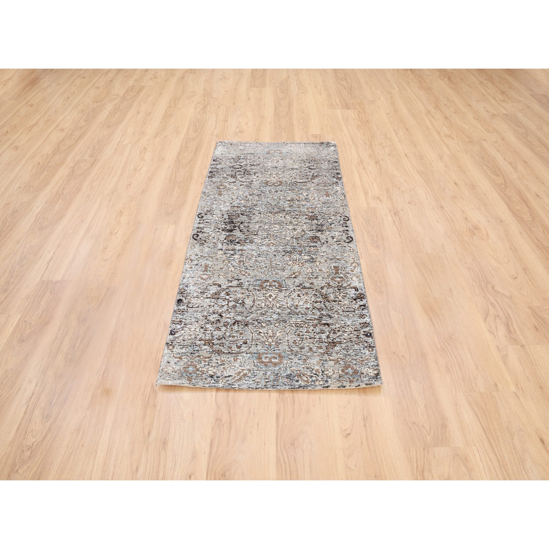 2'6"x6' Gray, Modern, Transitional Persian Influence Erased Medallion Design, Silk With Textured Wool, Hand Knotted, Oriental, Runner Rug FWR382266