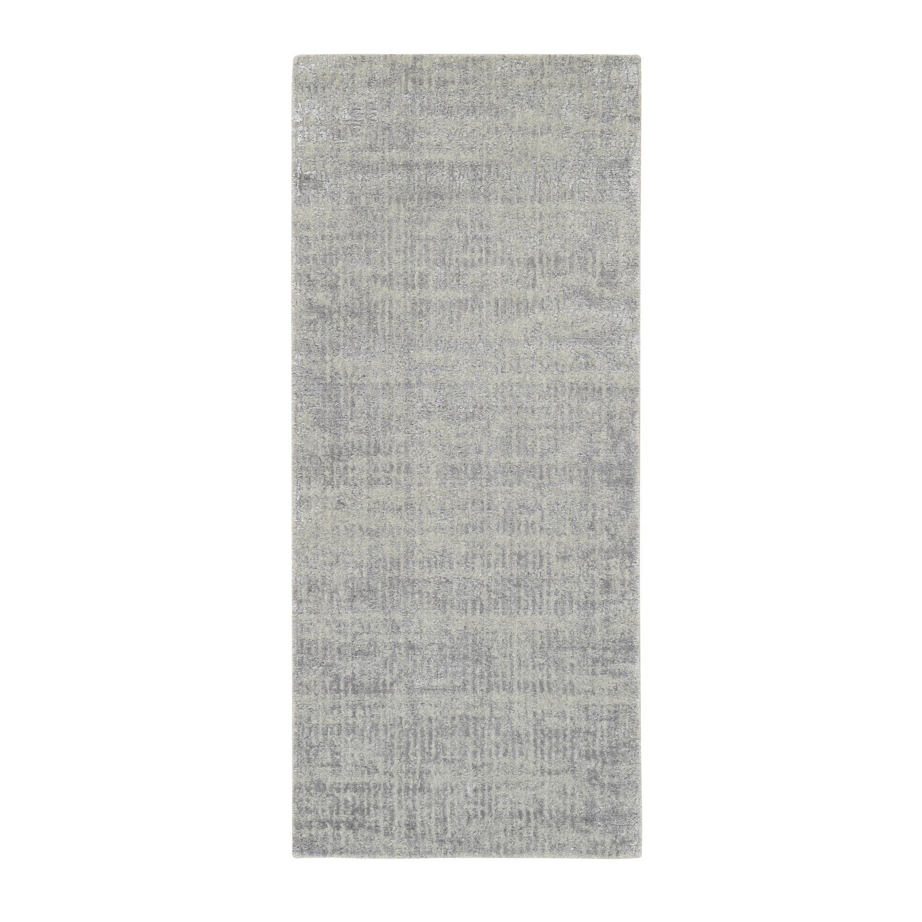 2'6"x6' Hand-loomed Gray Fine Jacquard Modern Wool And Silk Oriental Runner Rug FWR377094