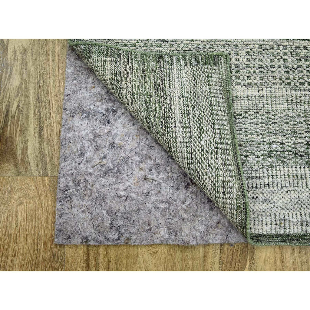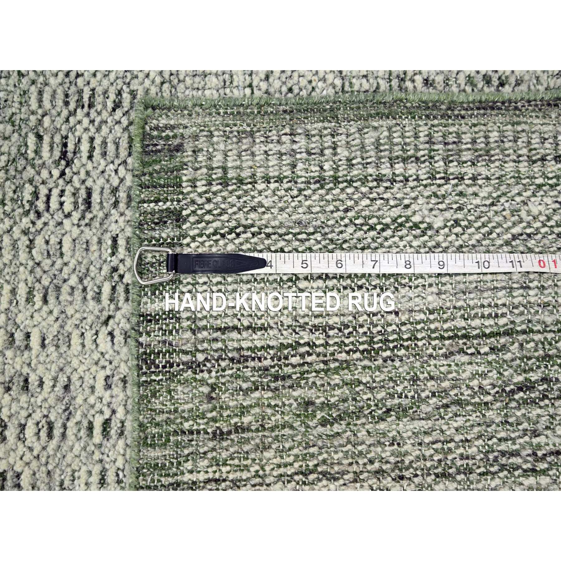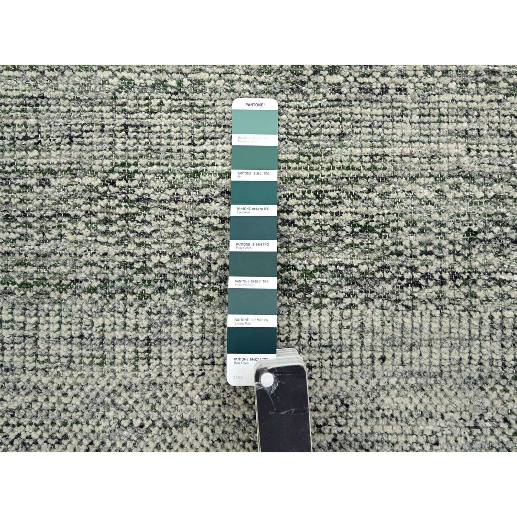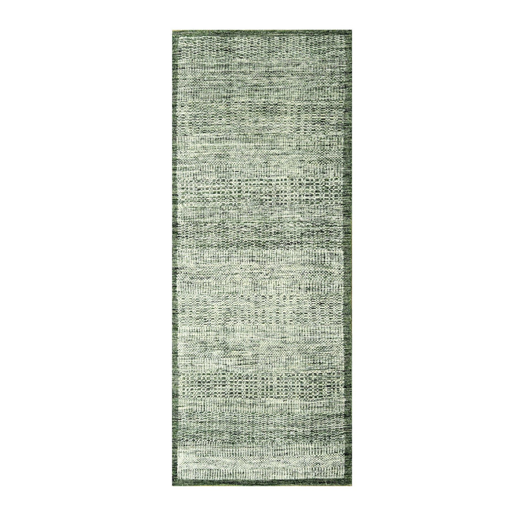 2'6"x6' Hunter Green, 100% Wool, Hand Knotted, Oxidized And Distressed Grass Design With Exposed Warps, Runner, Oriental Rug FWR460434