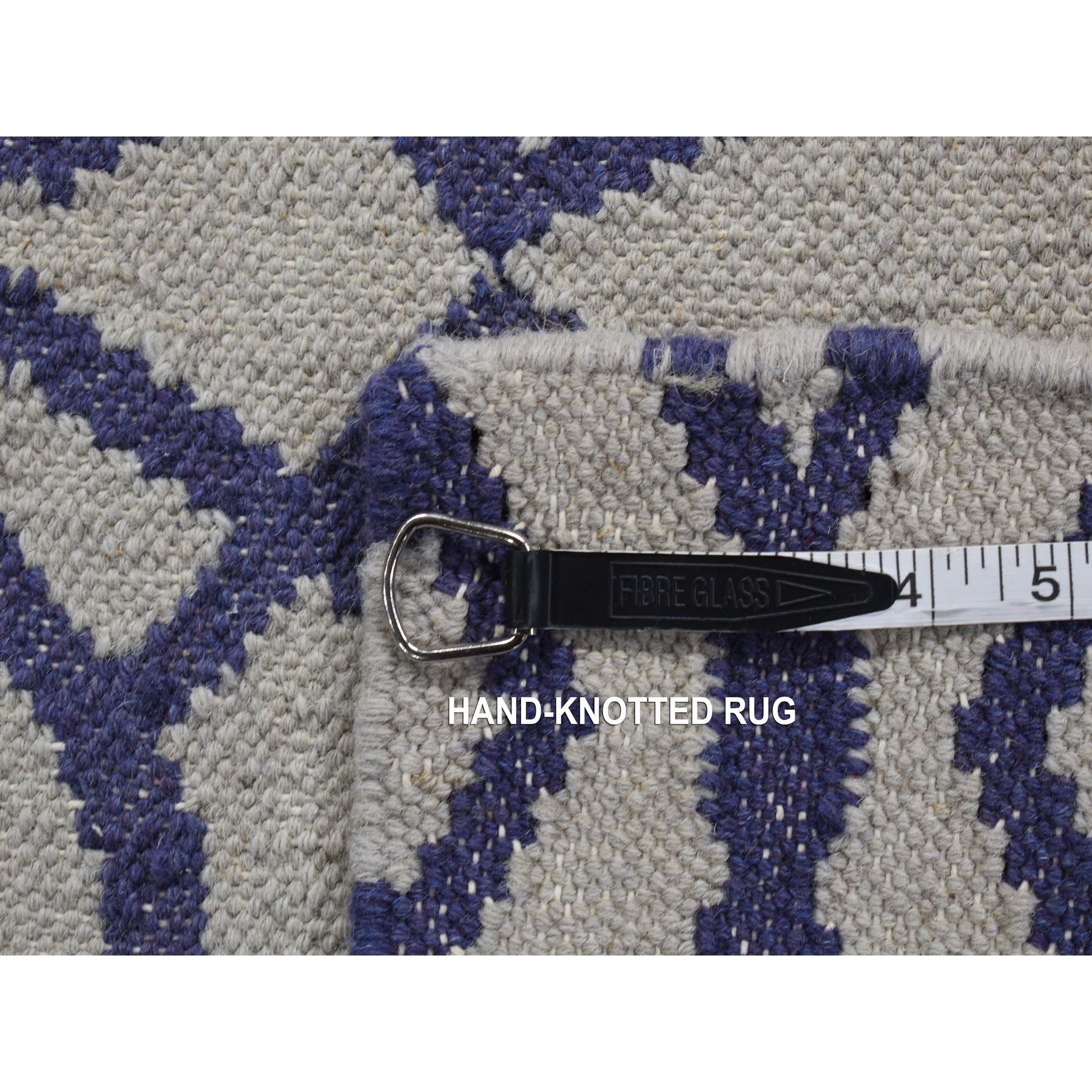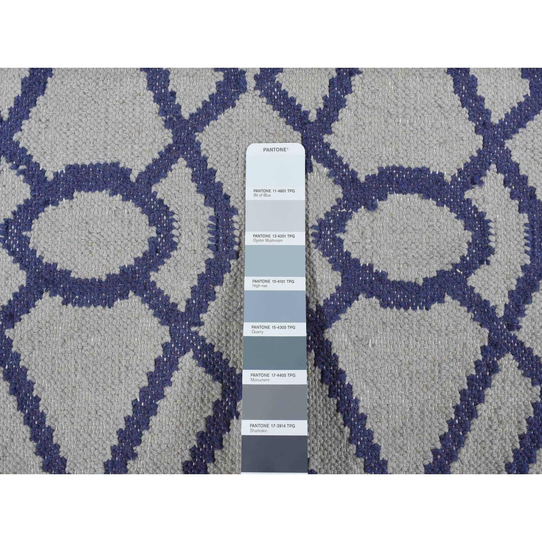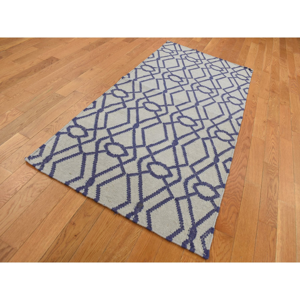 2'6''x6' Ice Blue, Hand Woven, Durie Kilim, Geometric Design, Wool, Flat Weave, Reversible, Runner Oriental Rug FWR526992