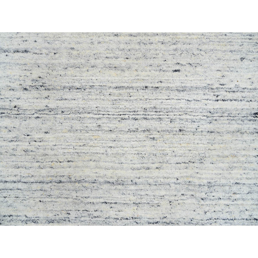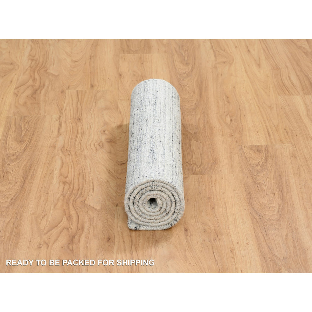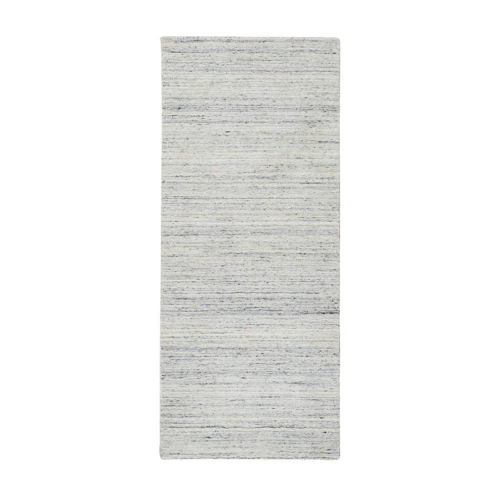 2'6"x6' Ivory, Hand Loomed Plain Modern Striped Design, Soft Pile Natural Wool, Runner Oriental Rug FWR388716