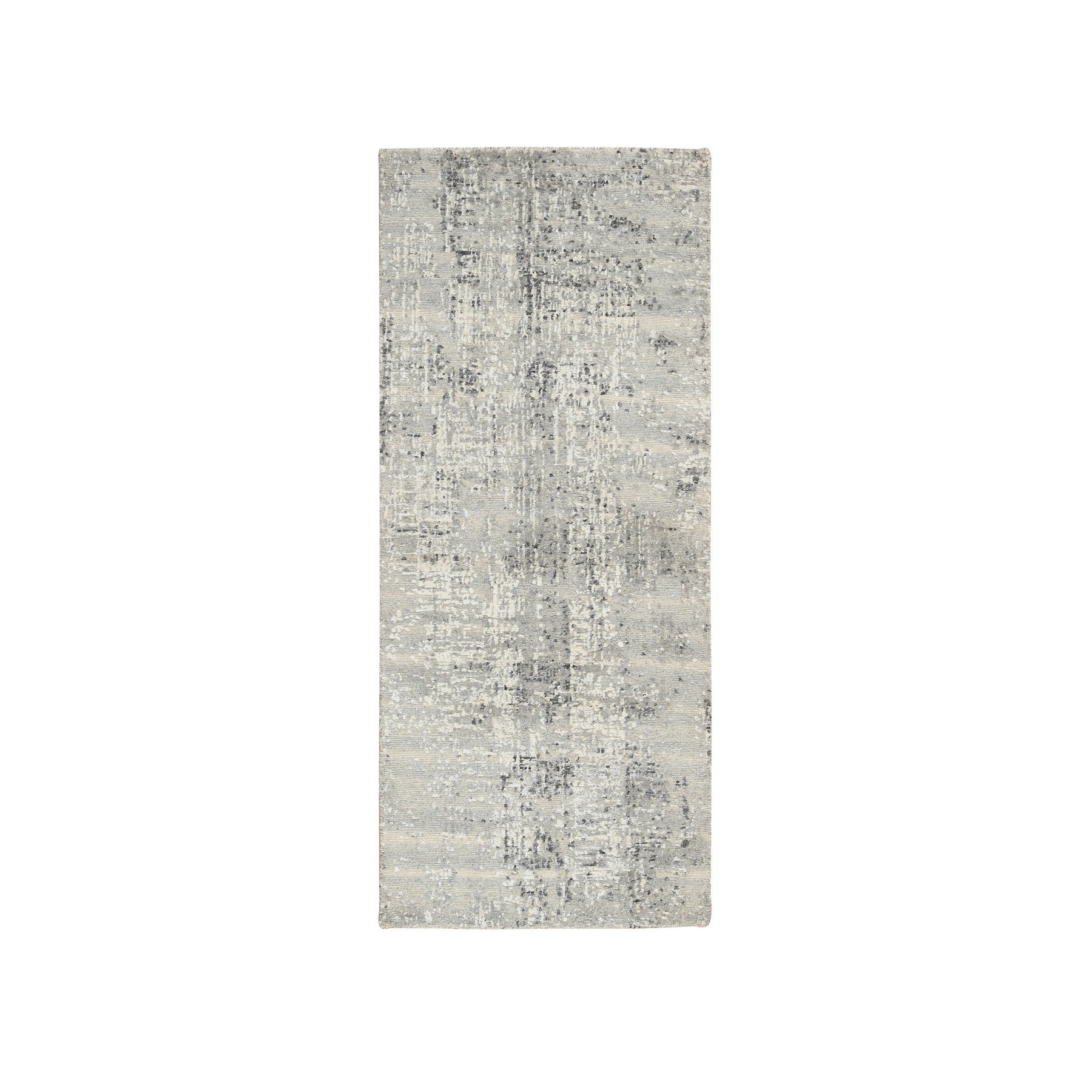 2'6"x6' Light Gray, Modern Design, Hand Spun Undyed Natural Wool, Hand Knotted, Runner Oriental Rug FWR388242