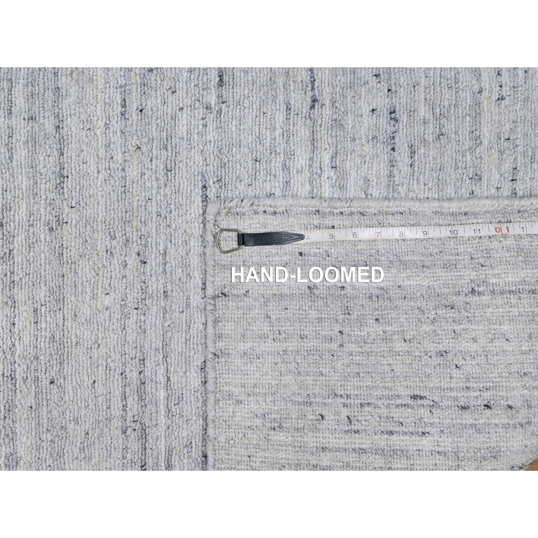 2'6"x6' Snow White, Hand Loomed, Plain Modern Striae Design, Soft To The Touch, Natural Wool, Runner, Oriental Rug FWR547116