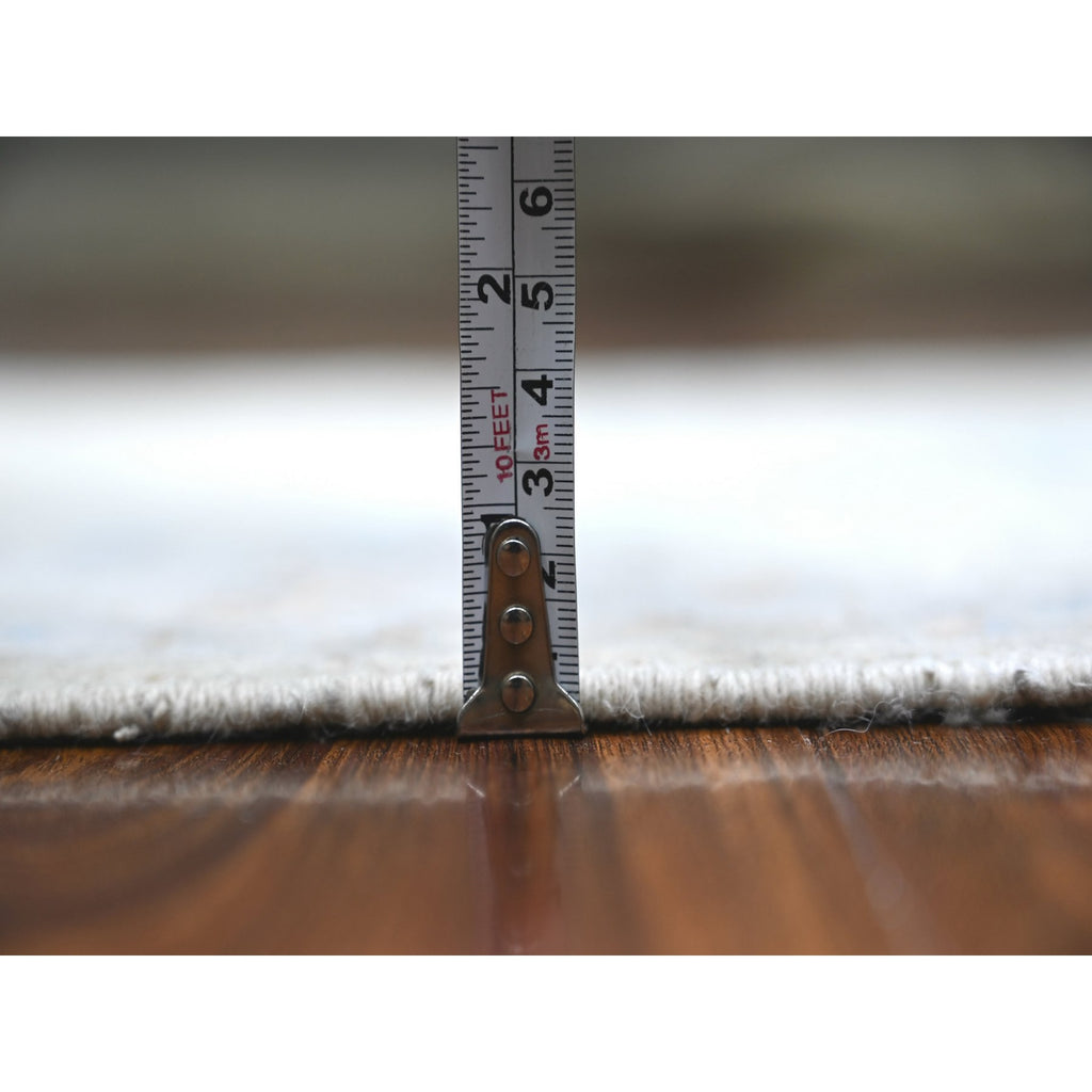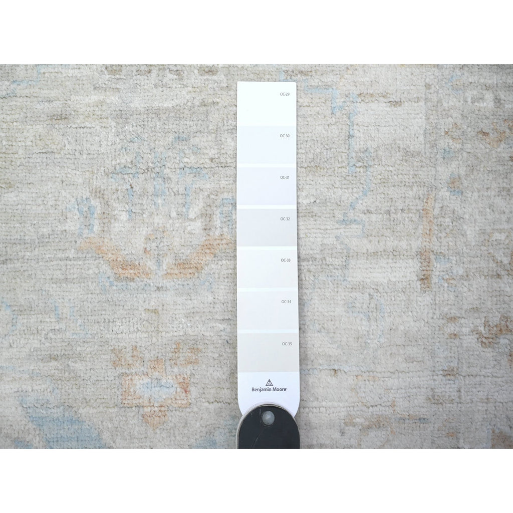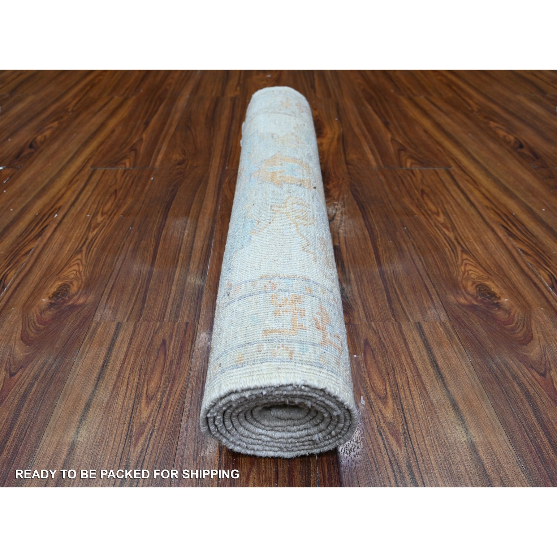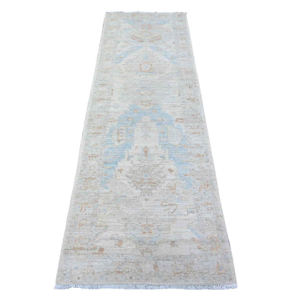 2'6"x7'10" Goose Gray, White Wash Peshawar, Hand Knotted, Vegetable Dyes, Pure Wool, Runner Oriental Rug FWR531288