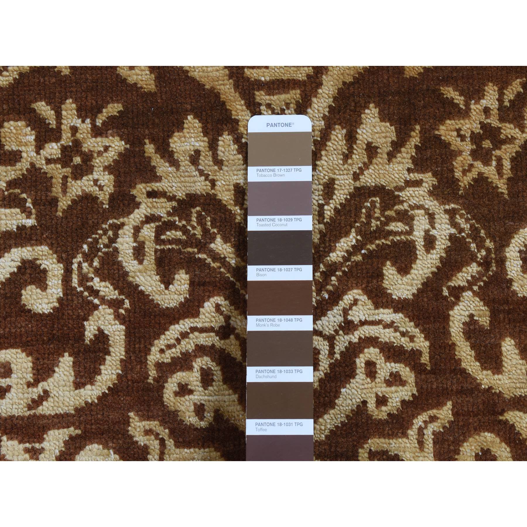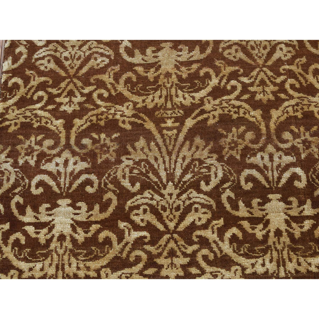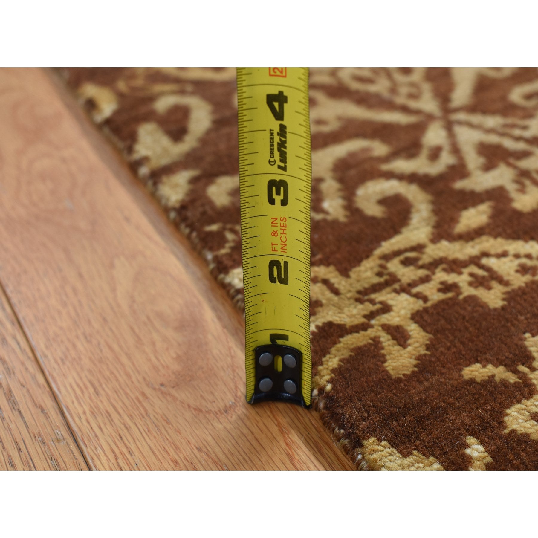 2'6"x7'9" Cafe Noir Brown, Abarasque Design Tone On Tone, Wool And Silk, Handmade, Runner Oriental Rug FWR523260
