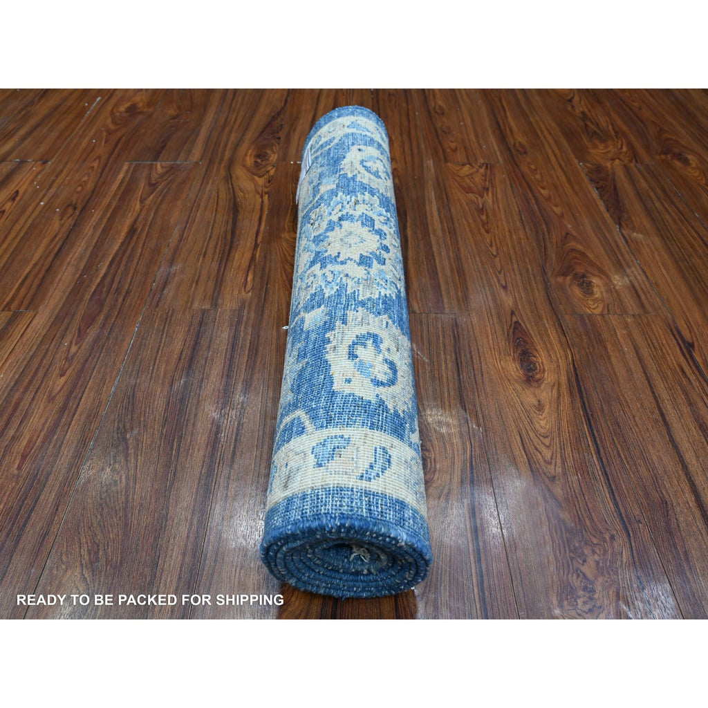 2'6"x7'9" Jeans Blue, Densely Woven Vegetable Dyes, Finer Peshawar With All Over Ziegler Mahal Design, Shiny Wool Hand Knotted Runner Oriental Rug FWR533358