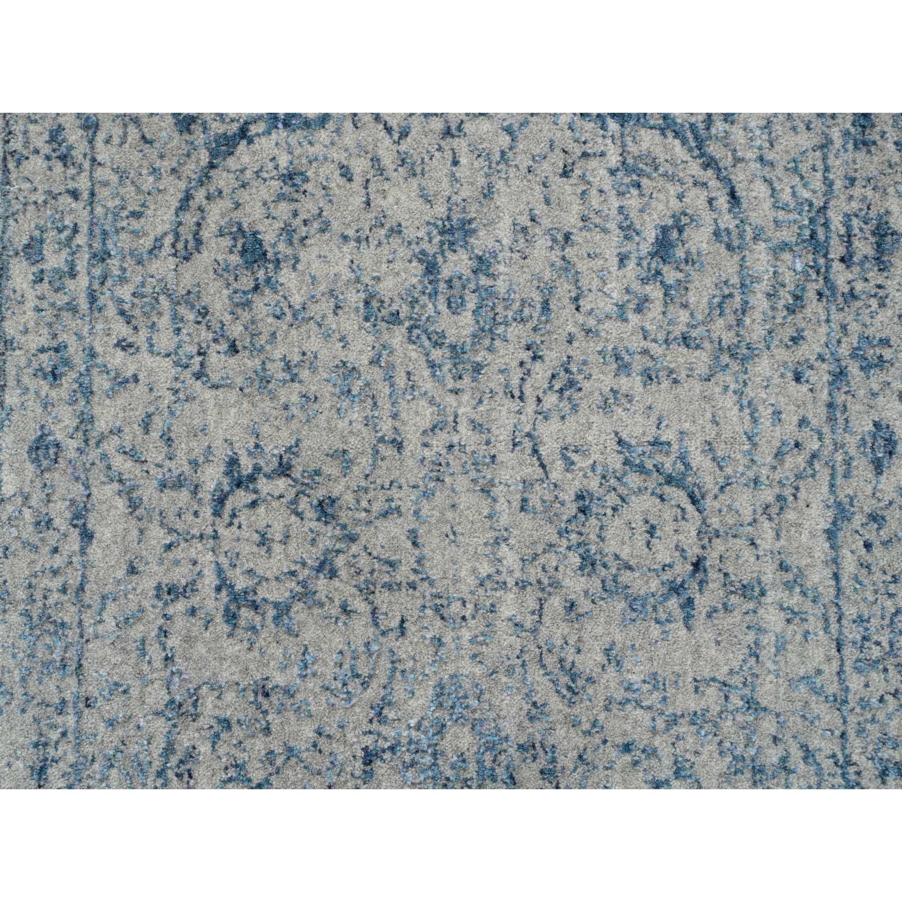 2'6"x8'1" Hand Loomed Gray Fine Jacquard With Sickle Leaf Design Wool And Plant Based Silk Oriental Runner Rug FWR381084
