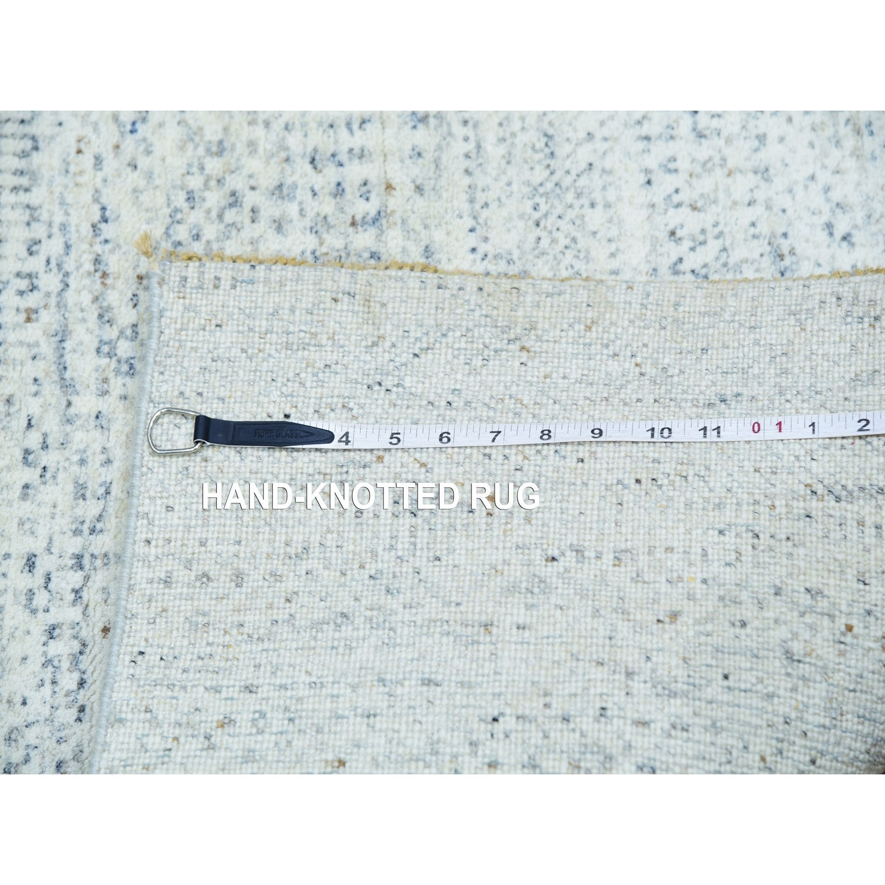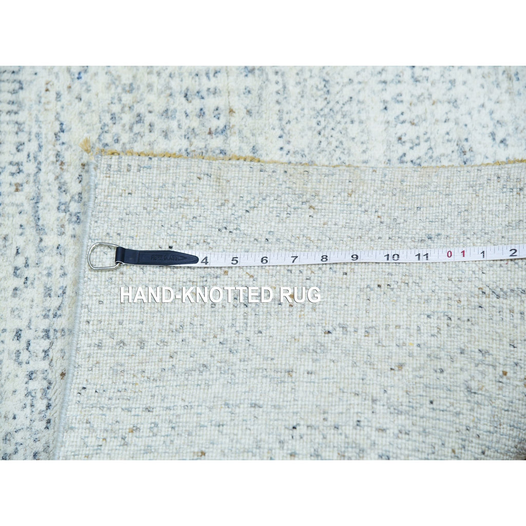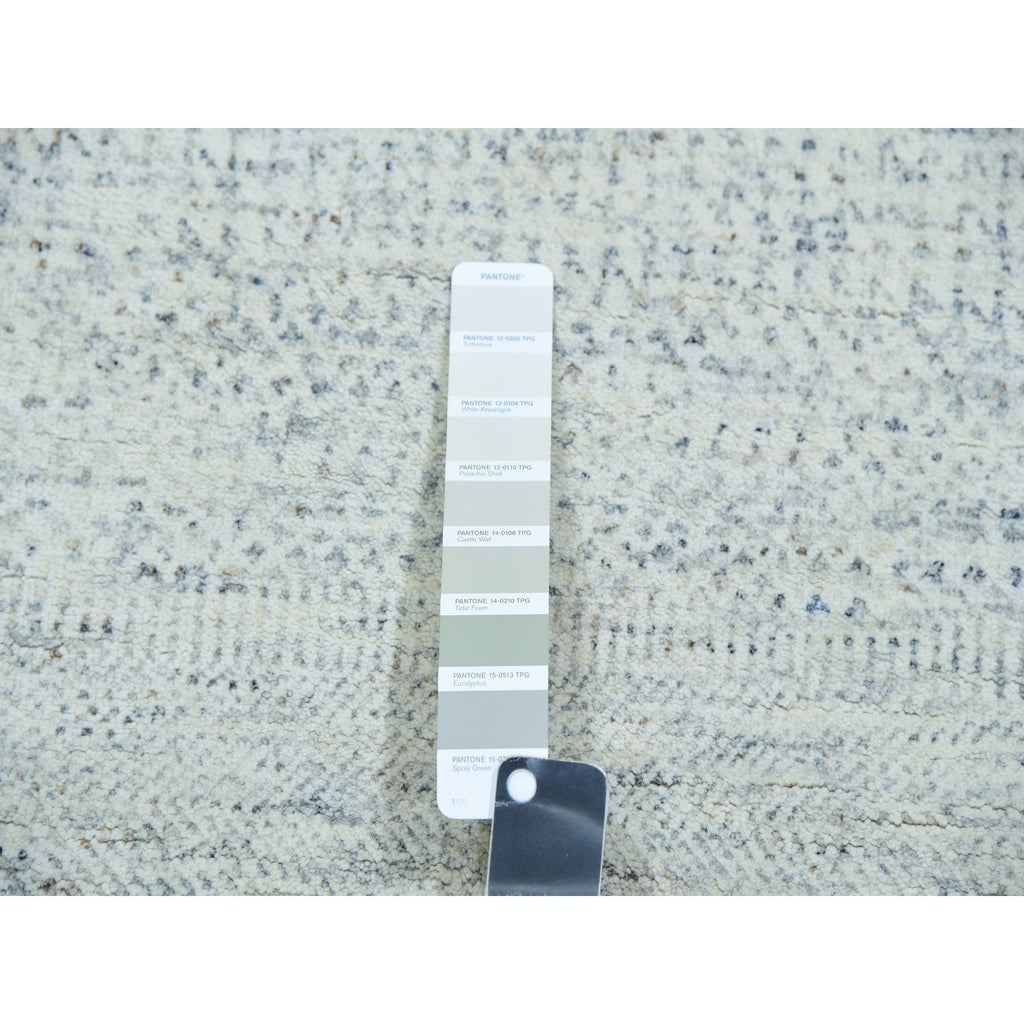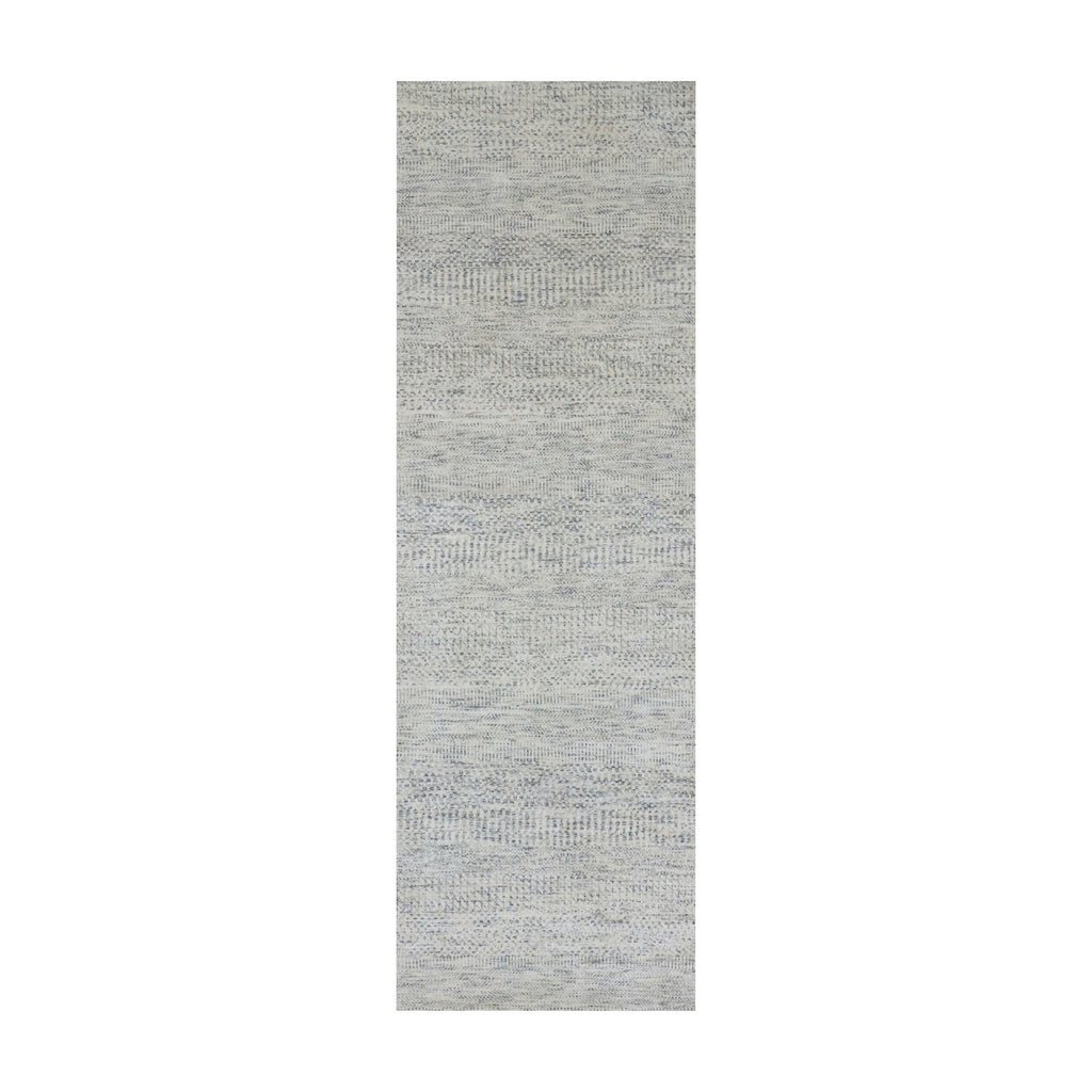 2'6"x8'1" Knitting Needles Gray, Borderless, Shabby Chic, Modern Pure Undyed Wool Hand Knotted With Grass Design, Tone On Tone, Oriental Runner Rug FWR478914