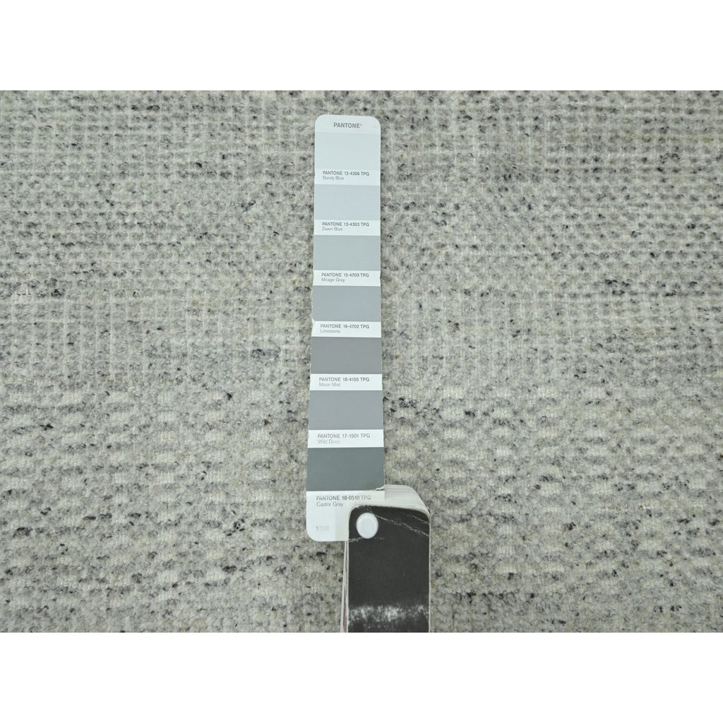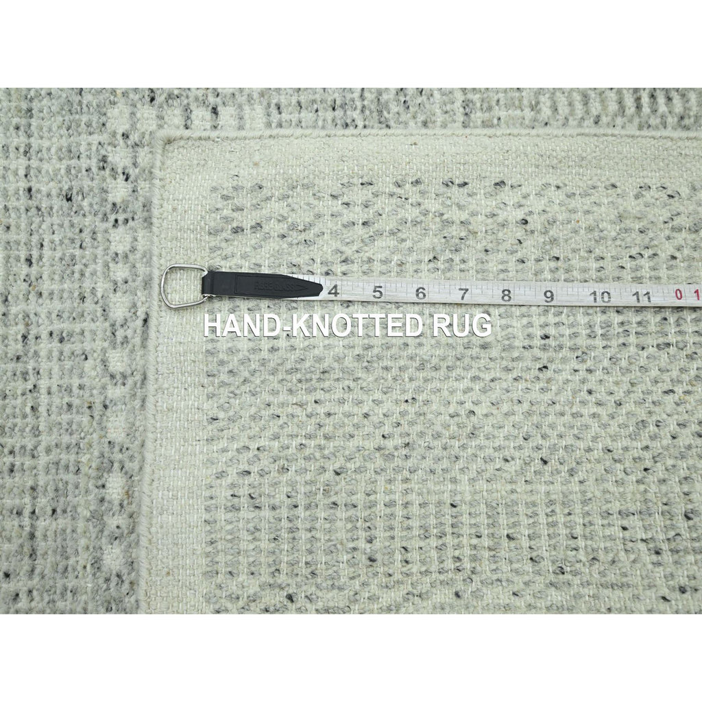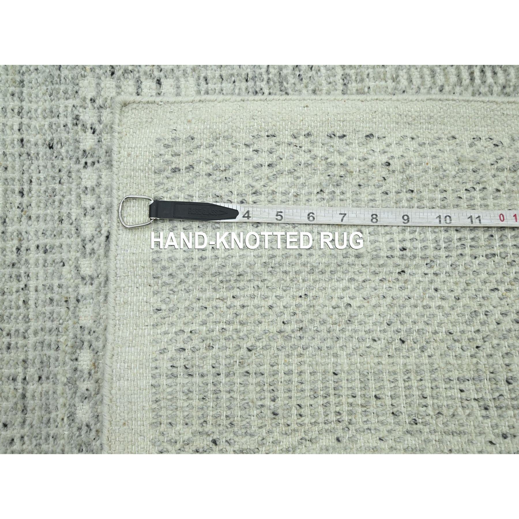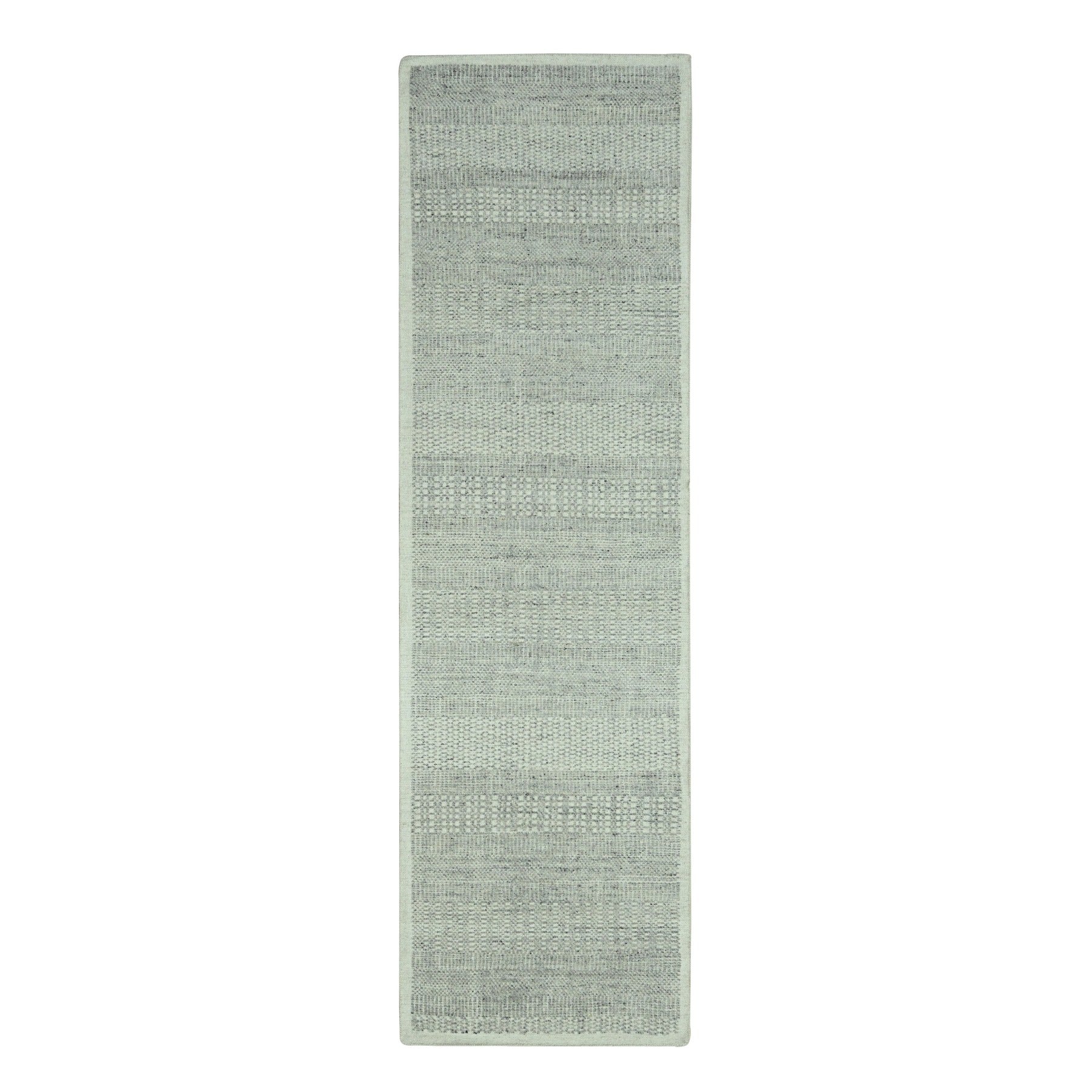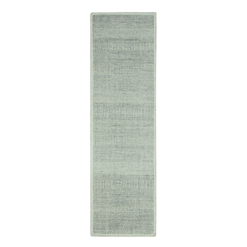 2'6"x8'1" Misty Gray, Hand Knotted, 100% Wool, Oxidized And Distressed Grass Design With Exposed Warps, Runner, Oriental Rug FWR460542