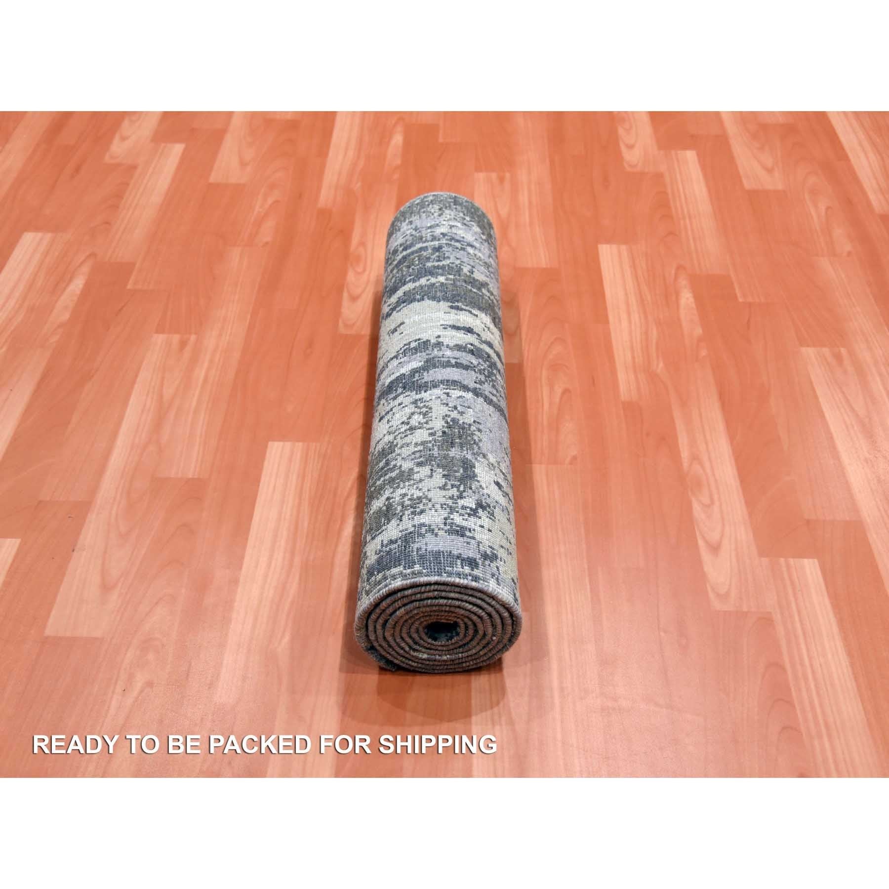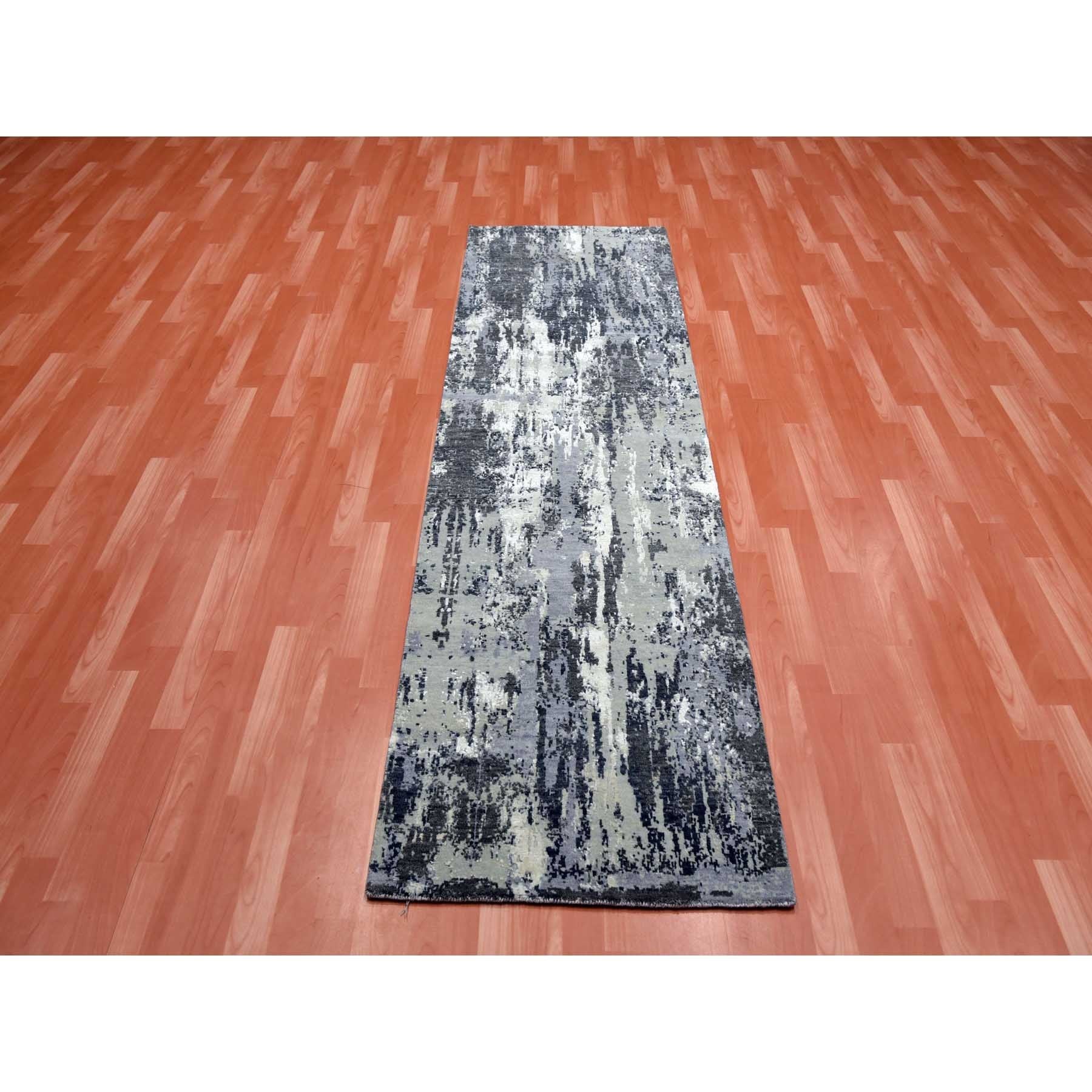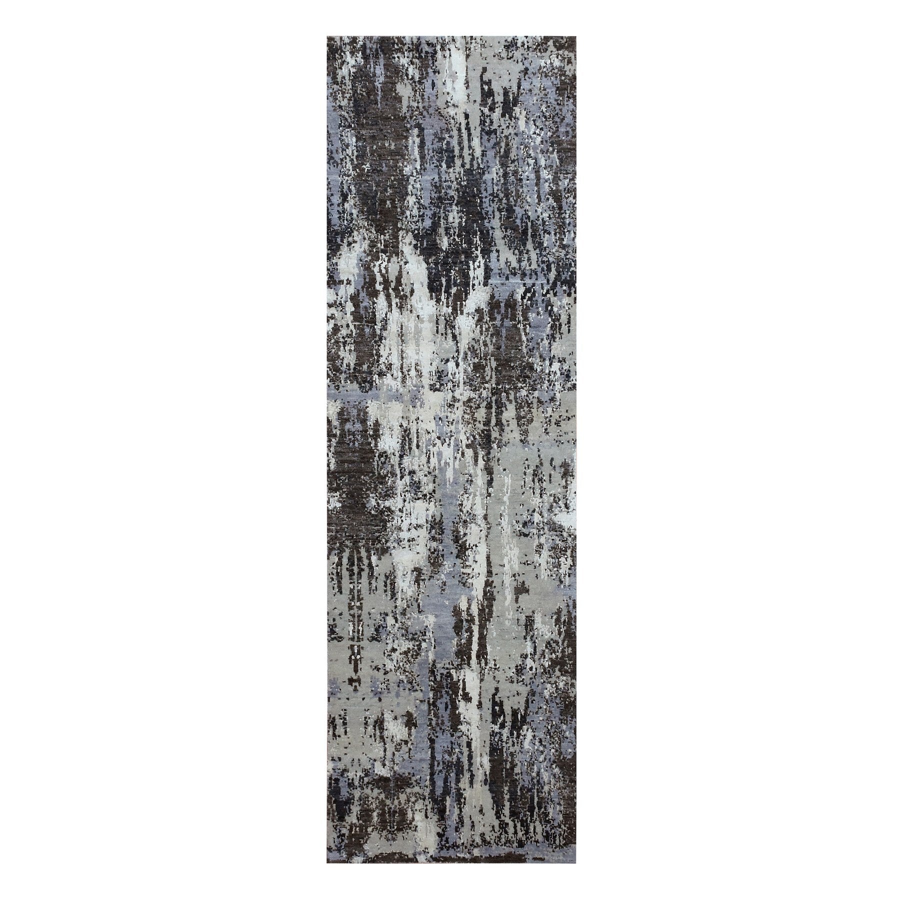 2'6"x8'3" Charcoal Gray Abstract Design Wool And Silk Denser Weave Persian Knot Hand Knotted Oriental Runner Rug FWR450474