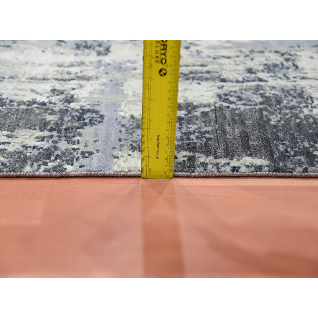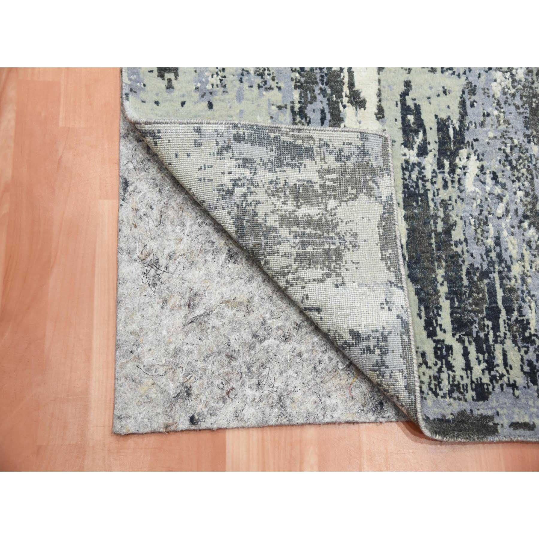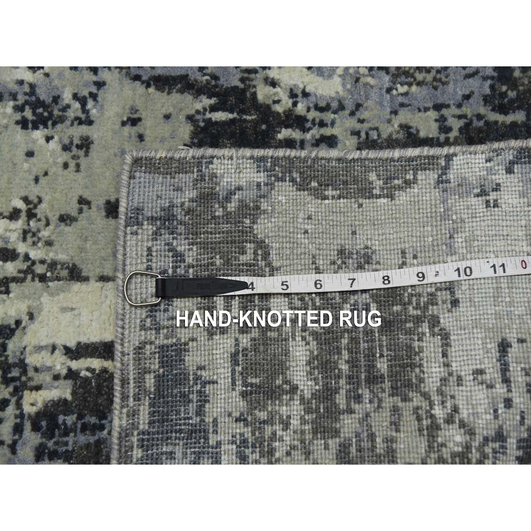 2'6"x8'3" Charcoal Gray Abstract Design Wool And Silk Denser Weave Persian Knot Hand Knotted Oriental Runner Rug FWR450474