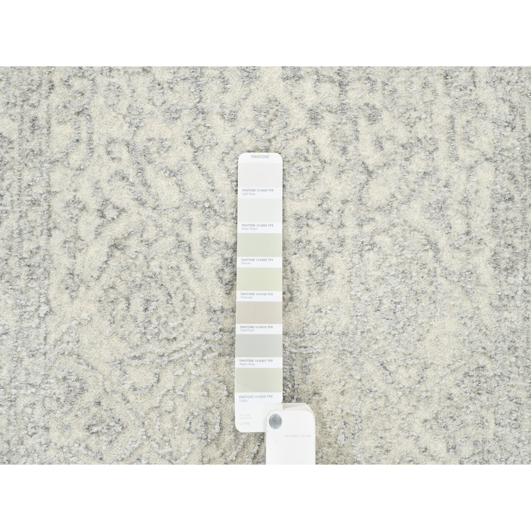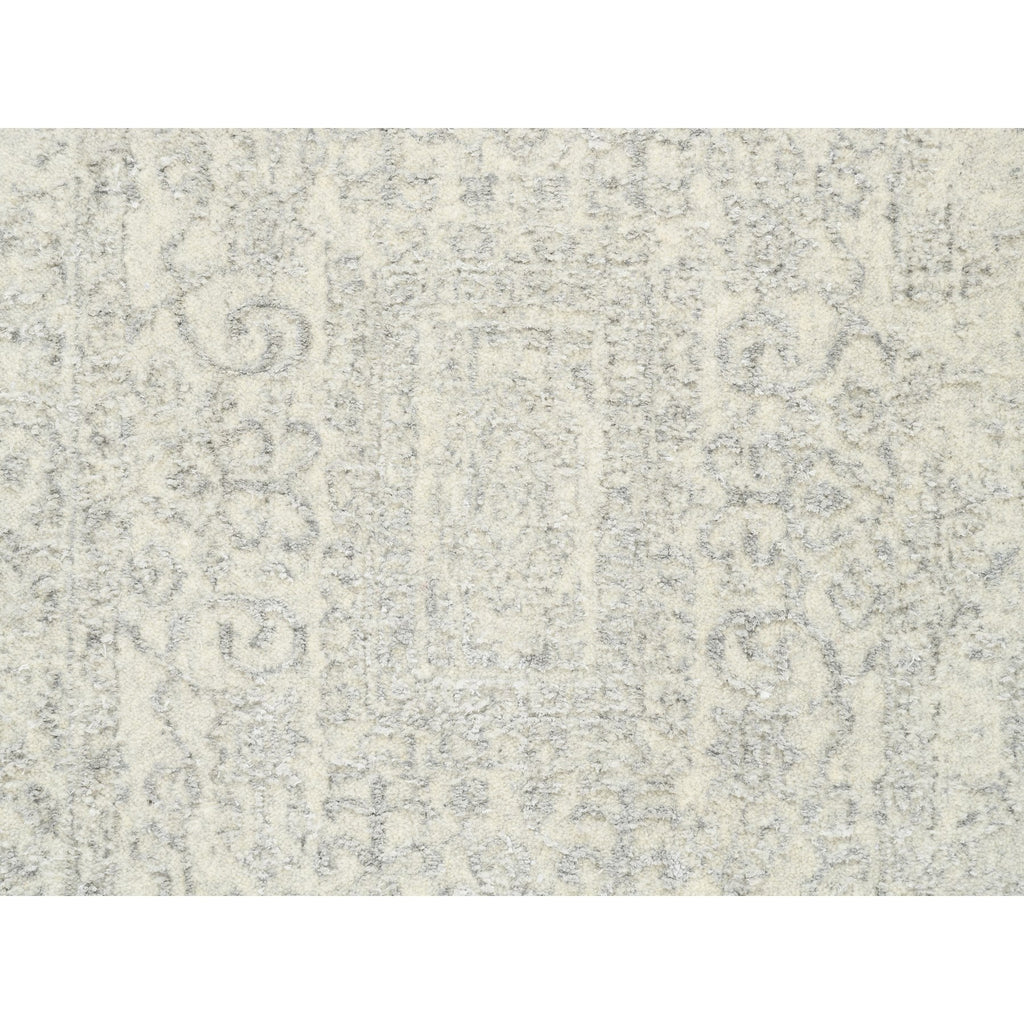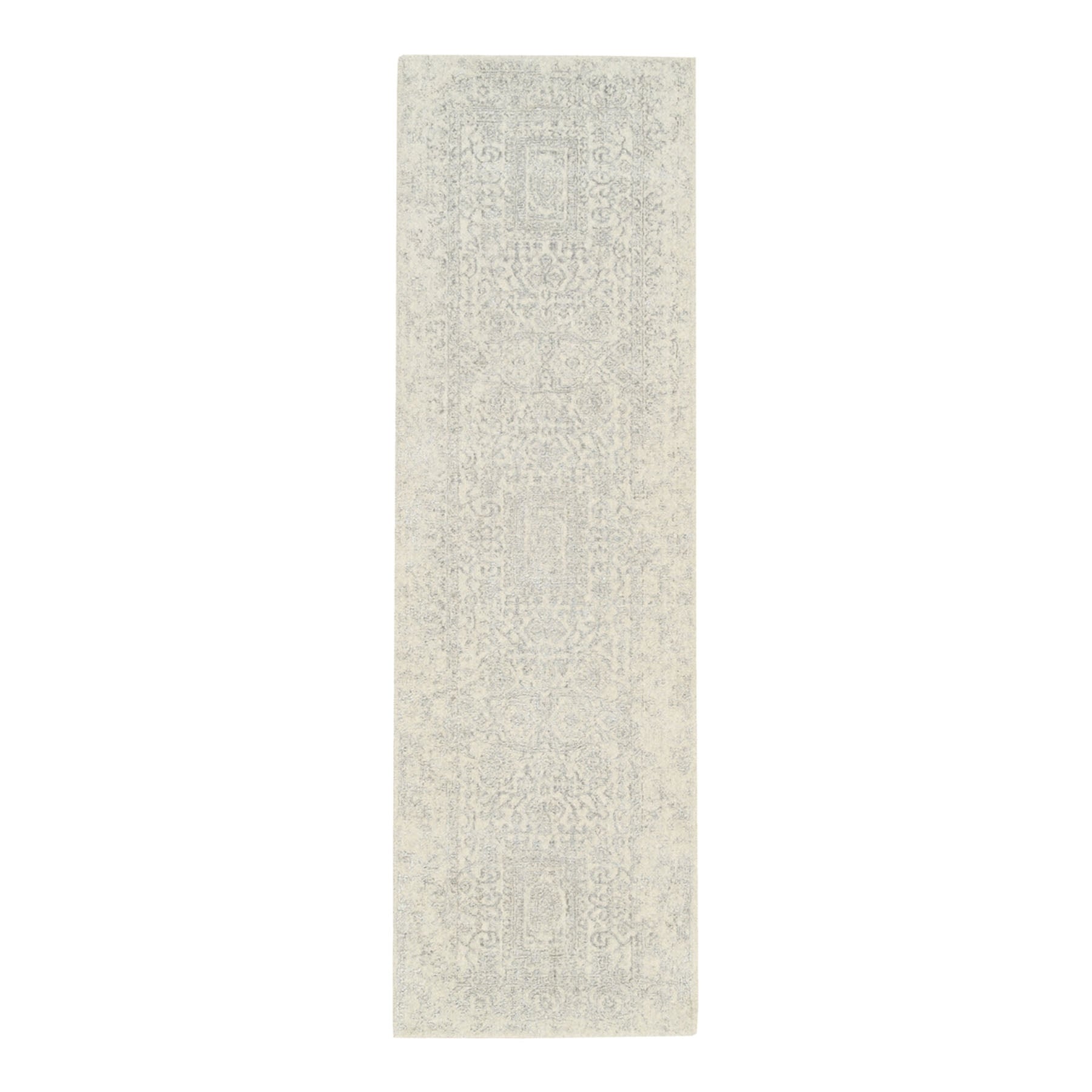 2'6"x8' Beige Wool And Plant Based Silk Hand Loomed Fine Jacquard With Erased Design Oriental Runner Rug FWR377076