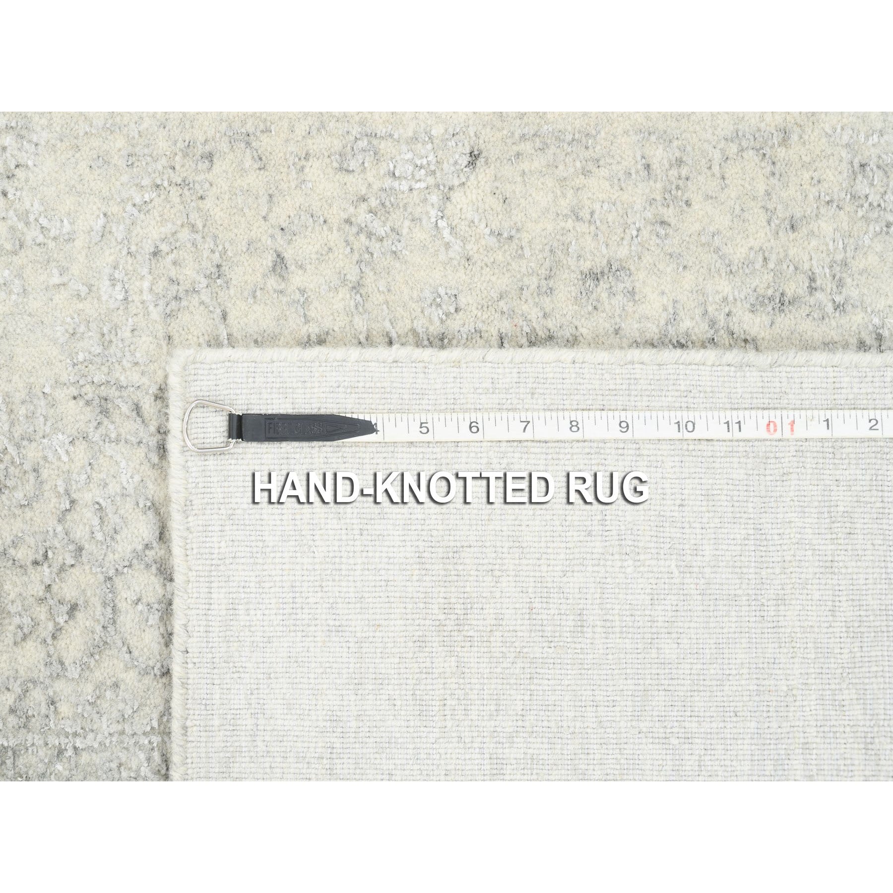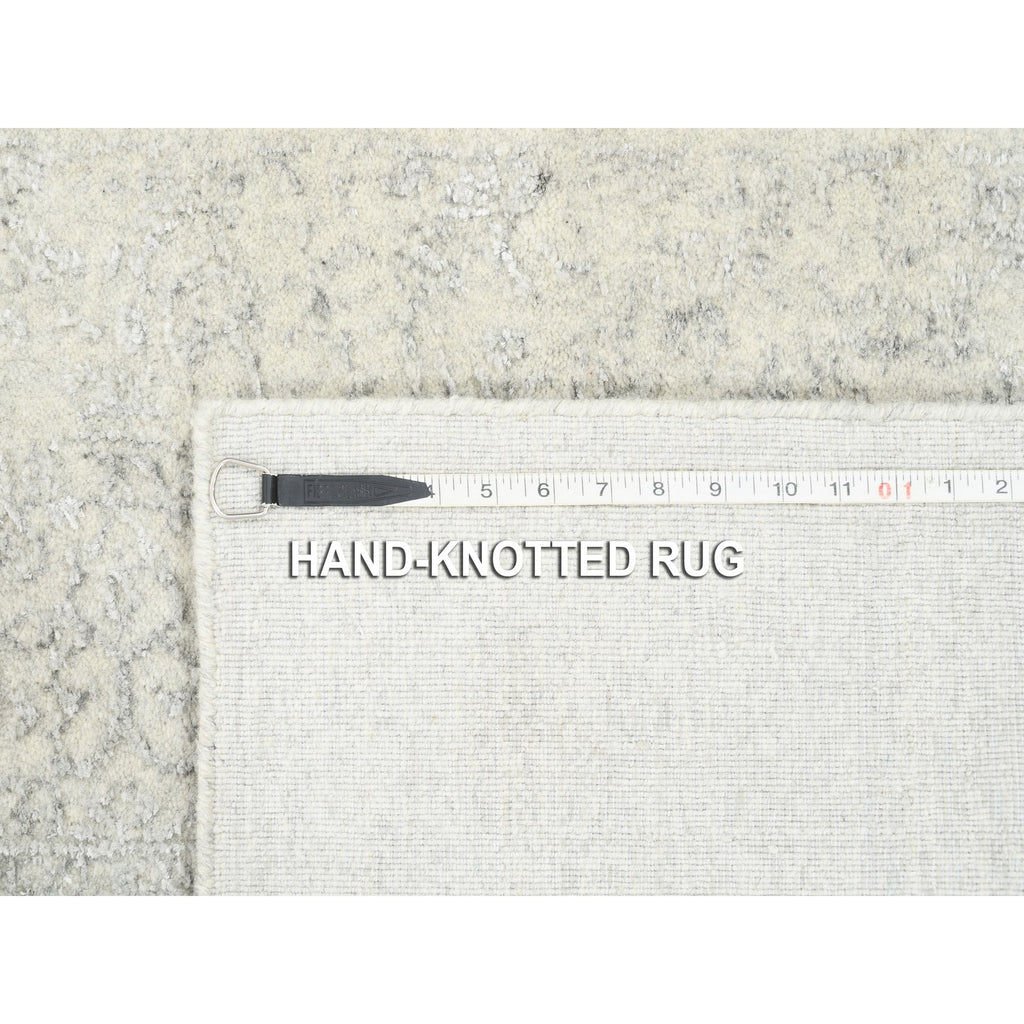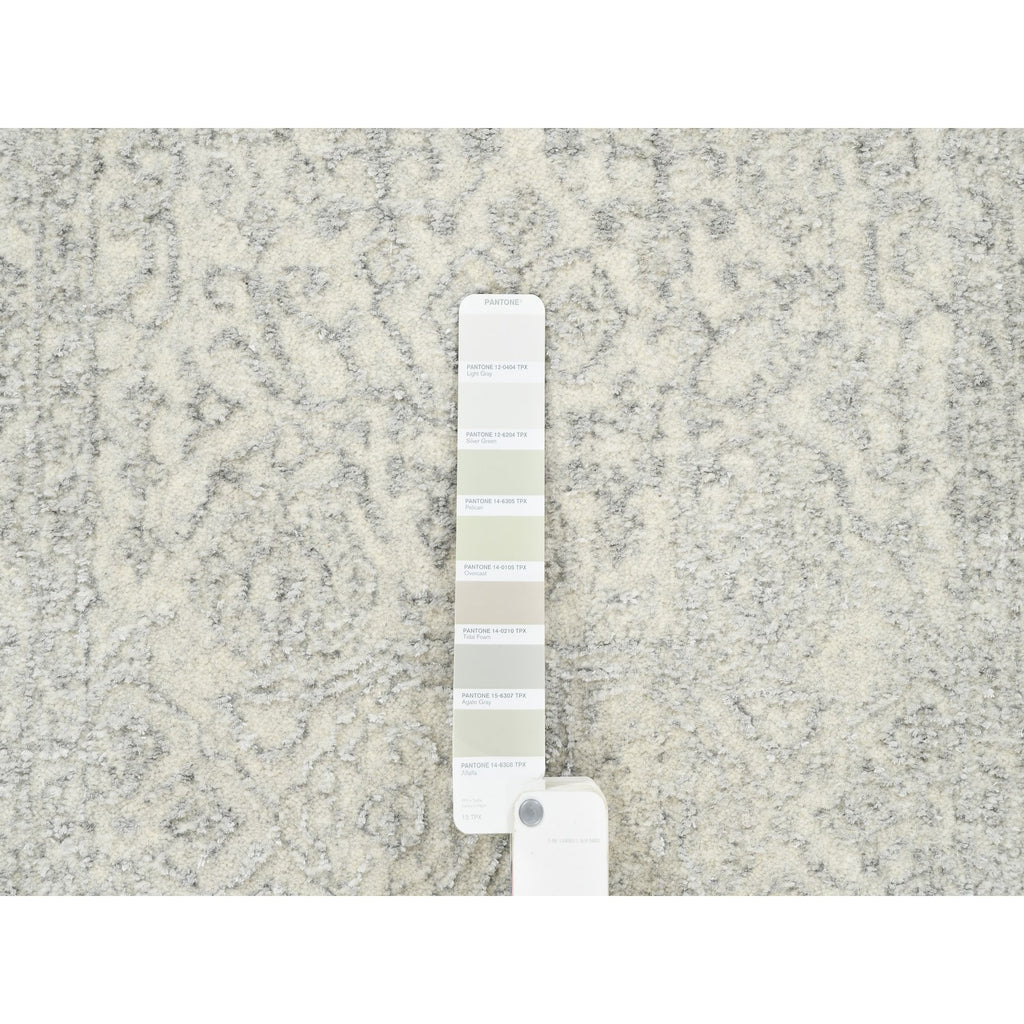 2'6"x8' Beige Wool And Plant Based Silk Hand Loomed Fine Jacquard With Erased Design Oriental Runner Rug FWR377076