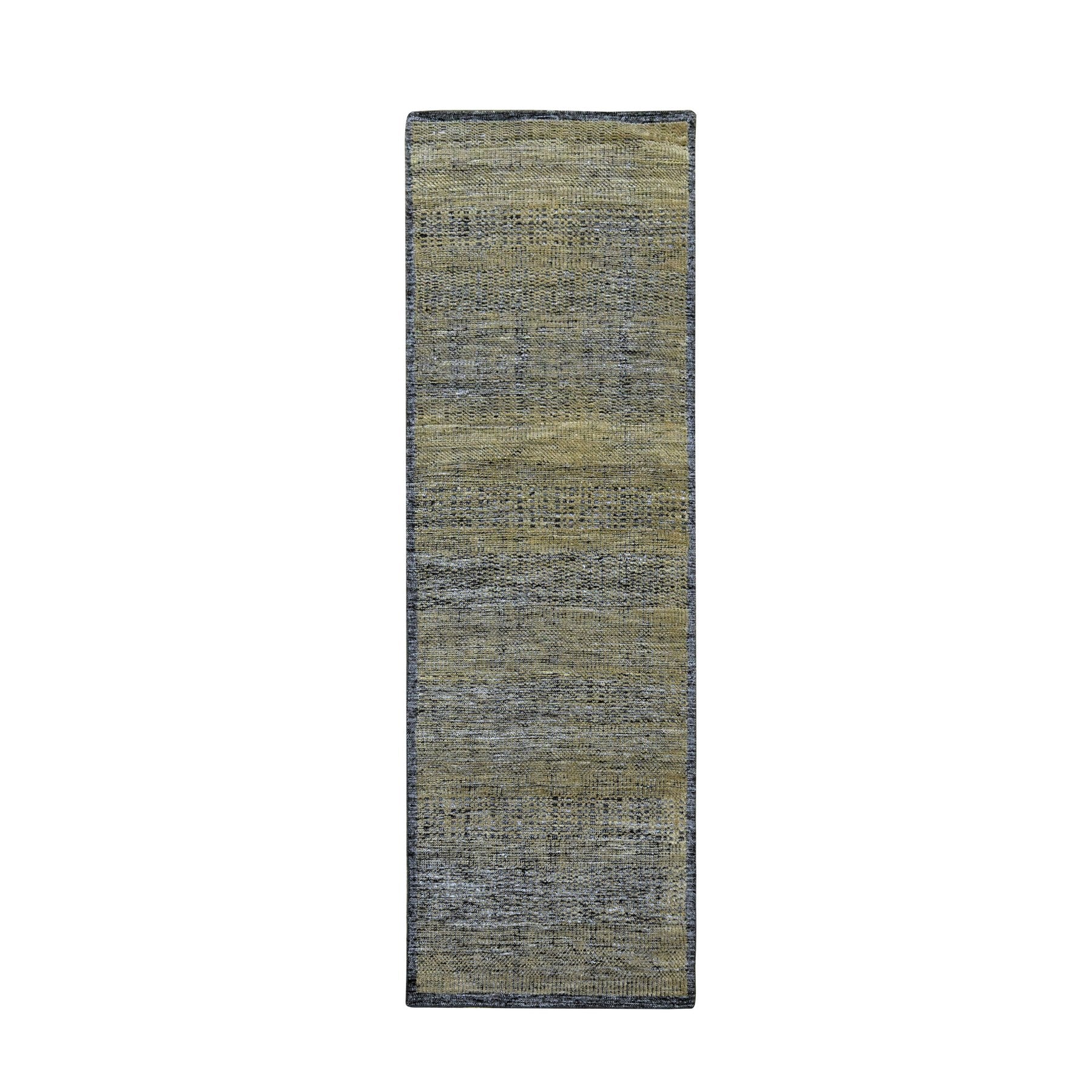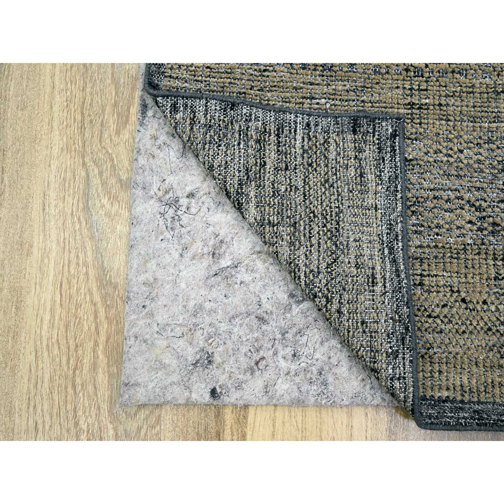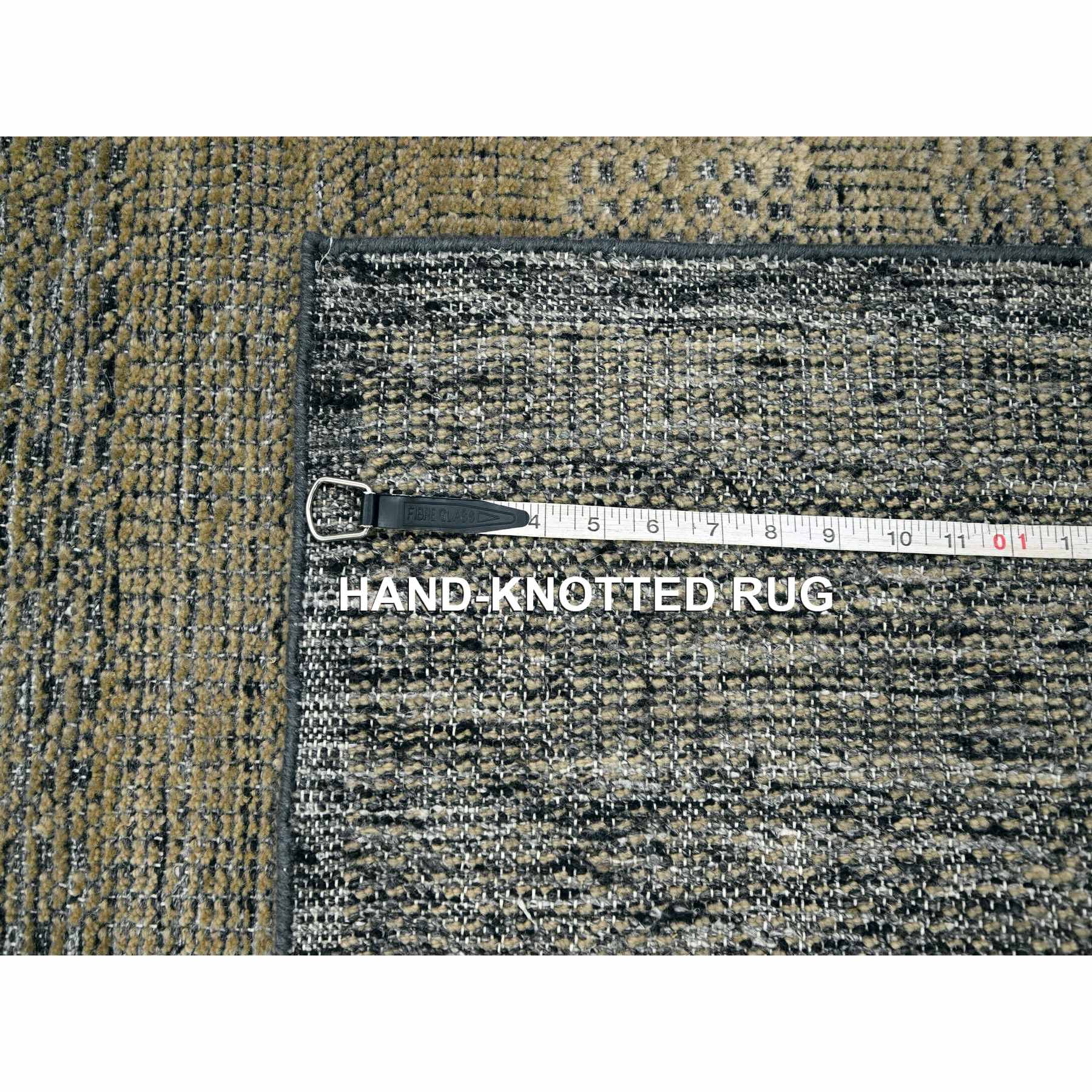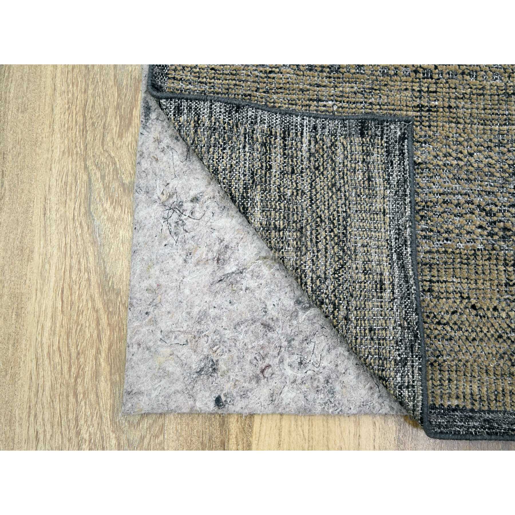2'6"x8' Charcoal Black With Bone Brown, Oxidized And Distressed Grass Design With Exposed Warps, 100% Wool, Hand Knotted, Runner, Oriental Rug FWR457584