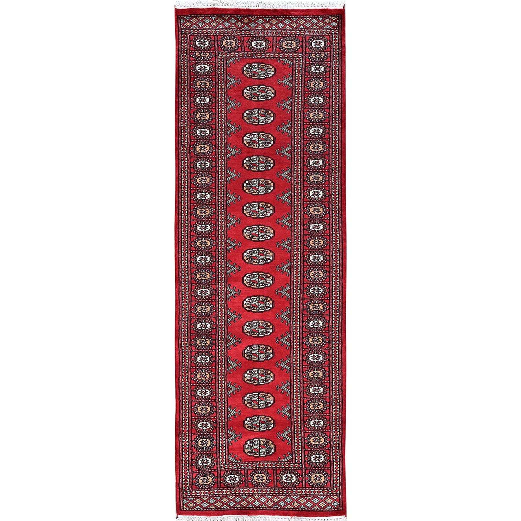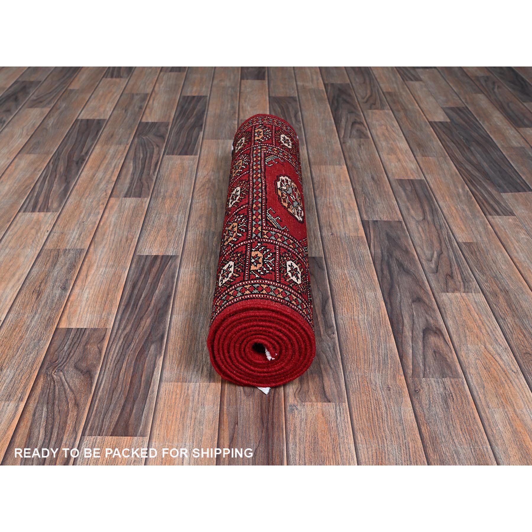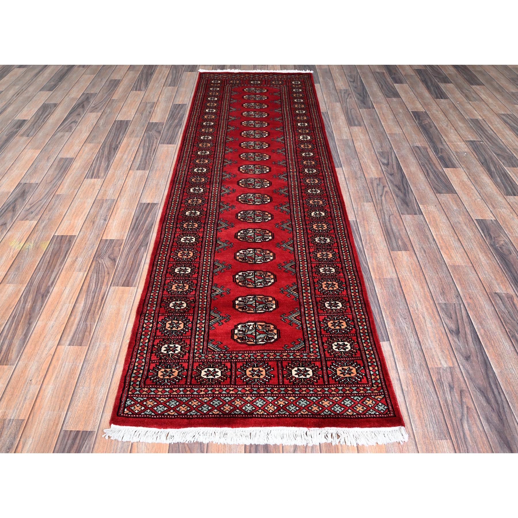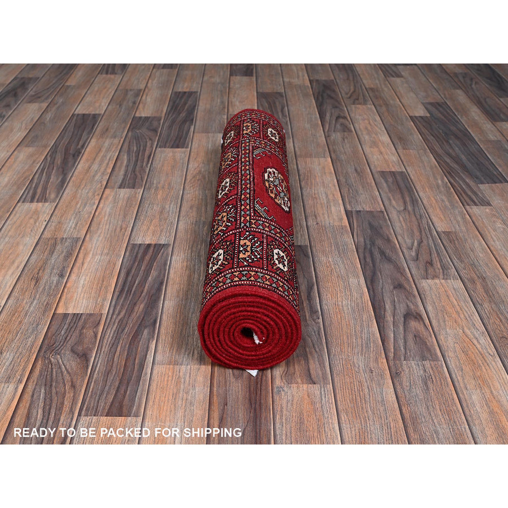 2'6"x8' Crimson Red, Princess Bokara With Geometric Medallions, Vegetable Dyes, Soft Wool, Hand Knotted, Runner, Oriental Rug FWR7830