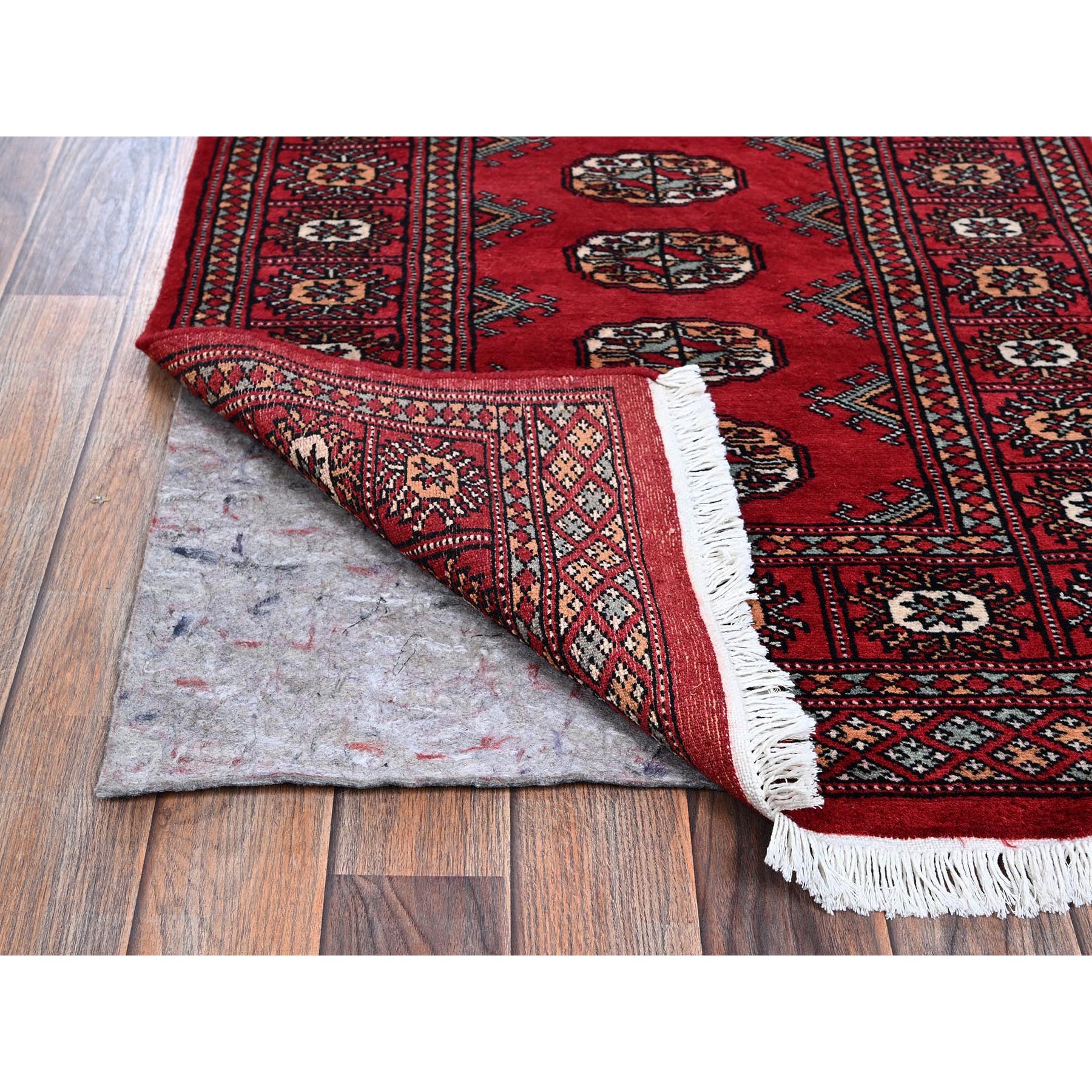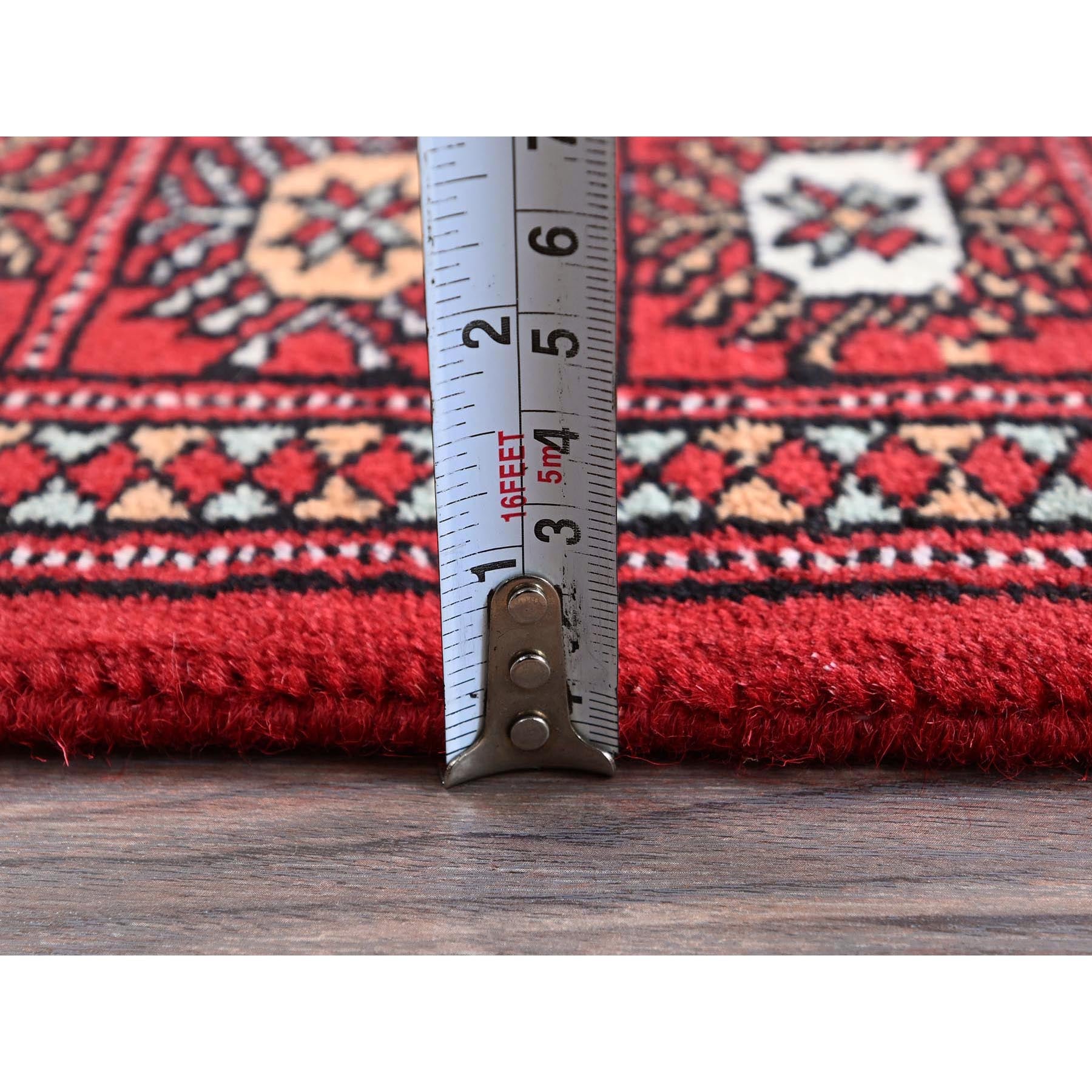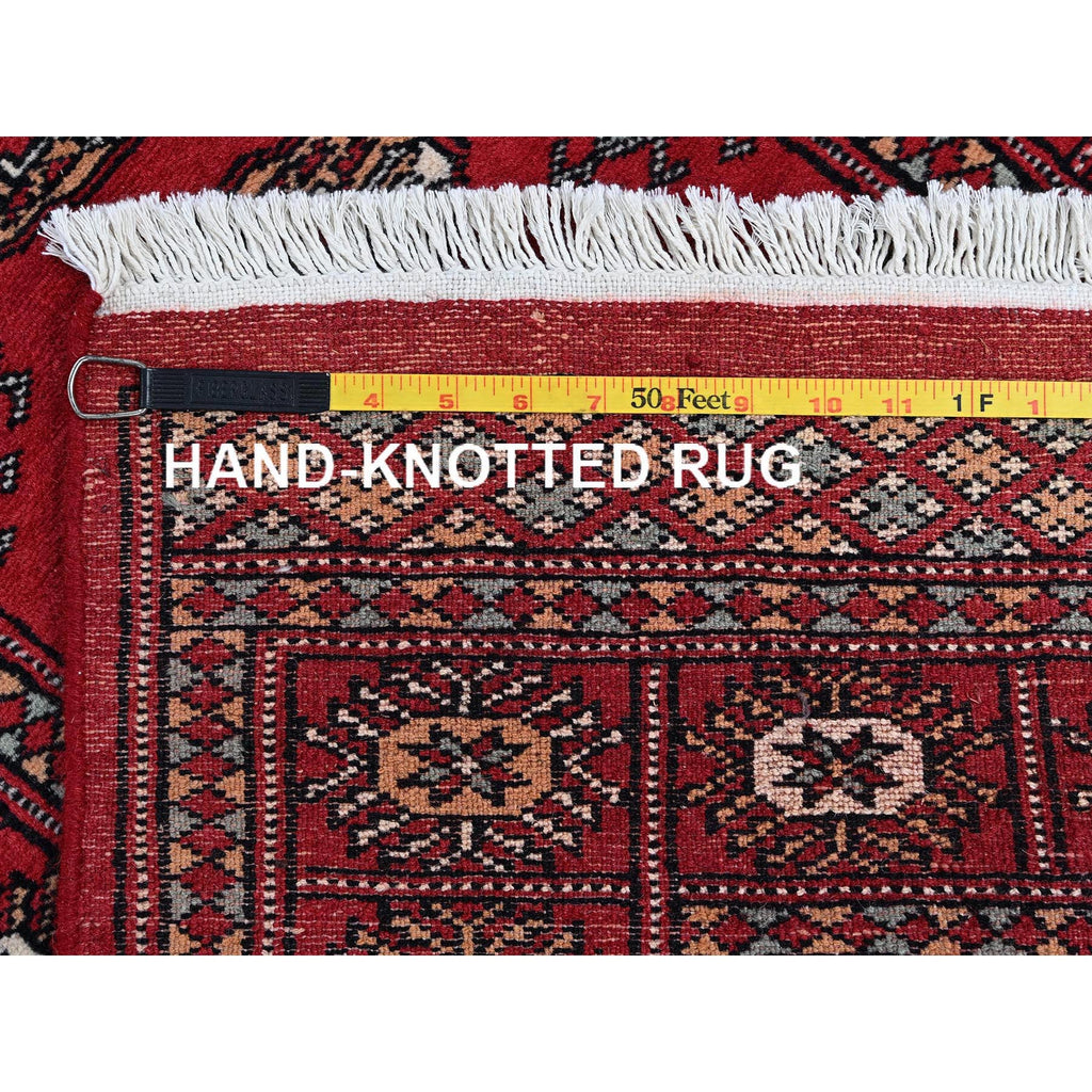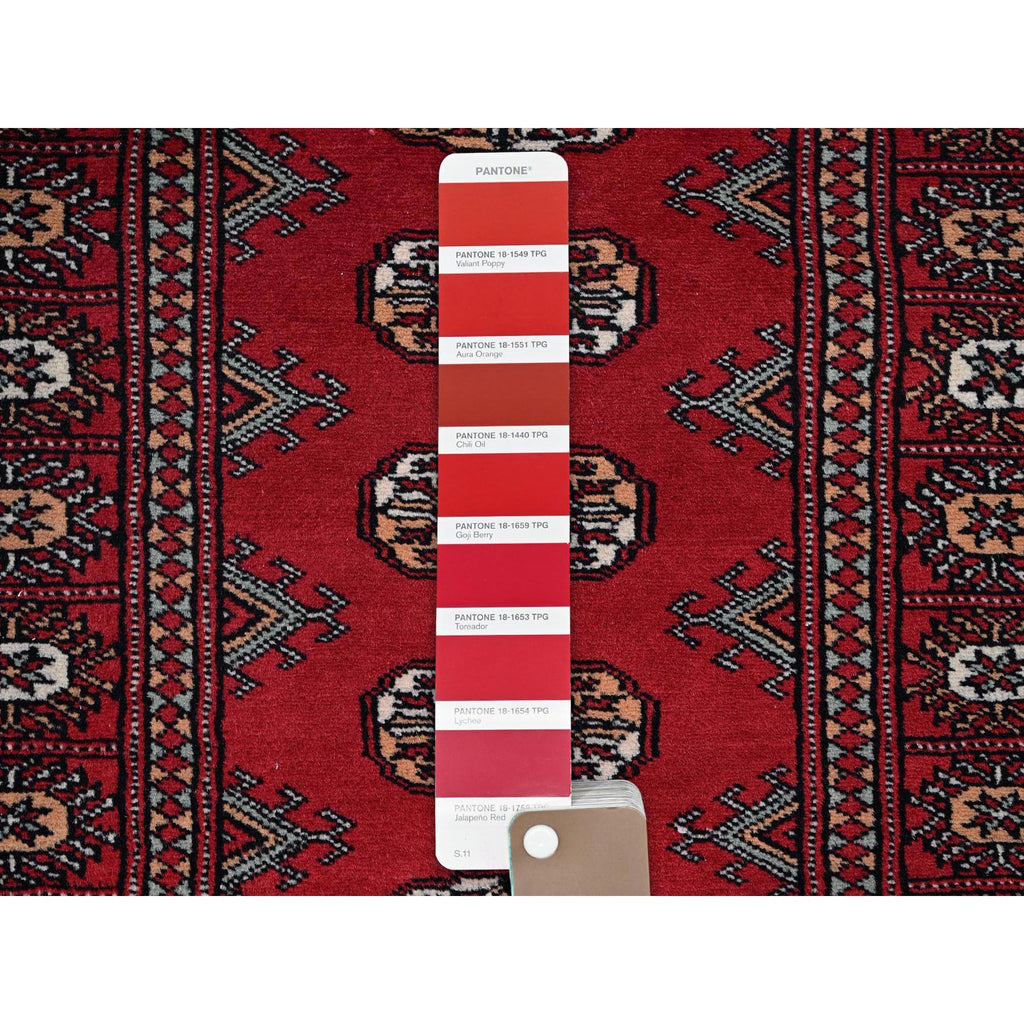 2'6"x8' Crimson Red, Princess Bokara With Geometric Medallions, Vegetable Dyes, Soft Wool, Hand Knotted, Runner, Oriental Rug FWR7830