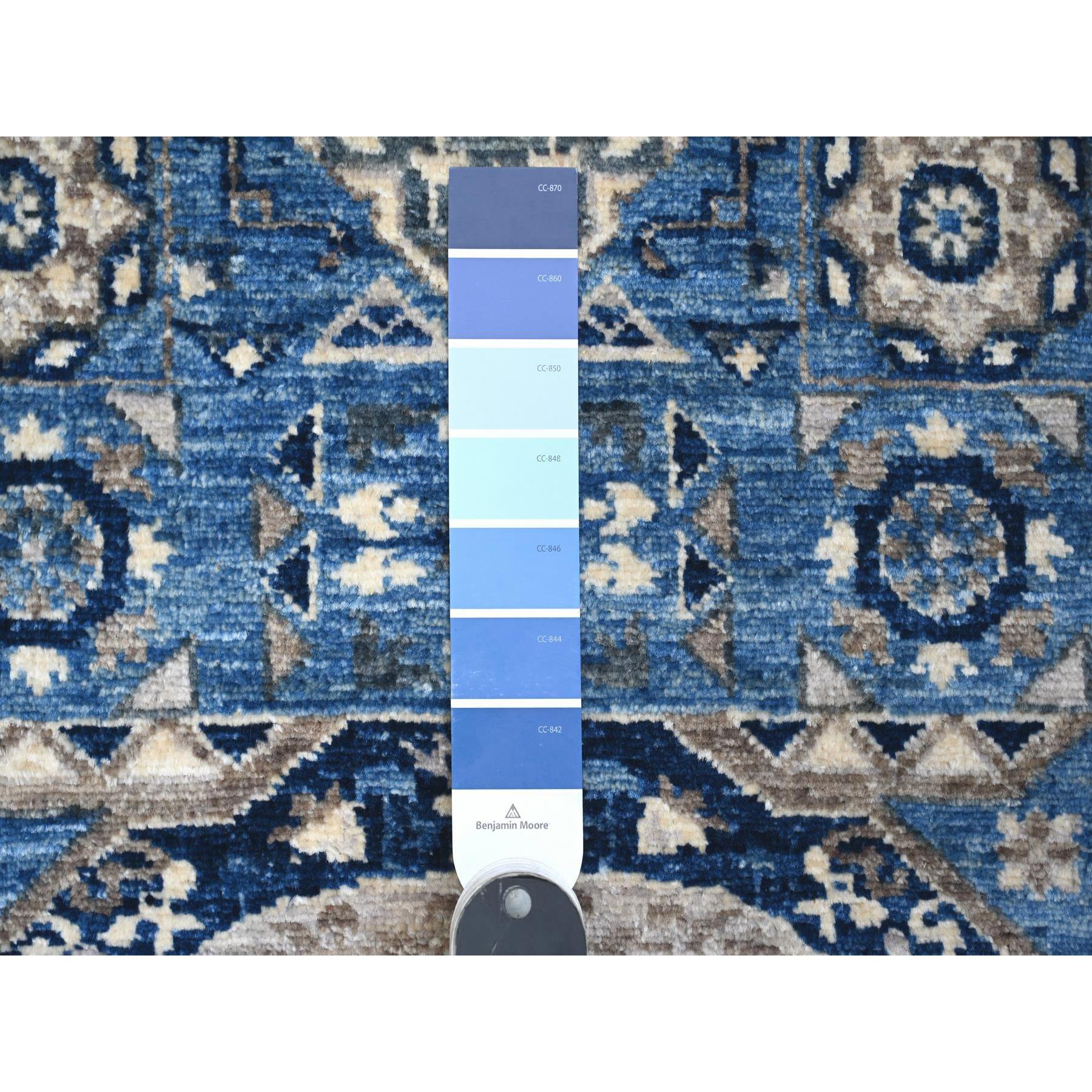 2'6"x8' Duke Blue, Extra Soft Wool Hand Knotted Aryana Collection, Mamluk Design With Large Geometric Medallions, Natural Dyes, Runner Oriental Rug FWR533442