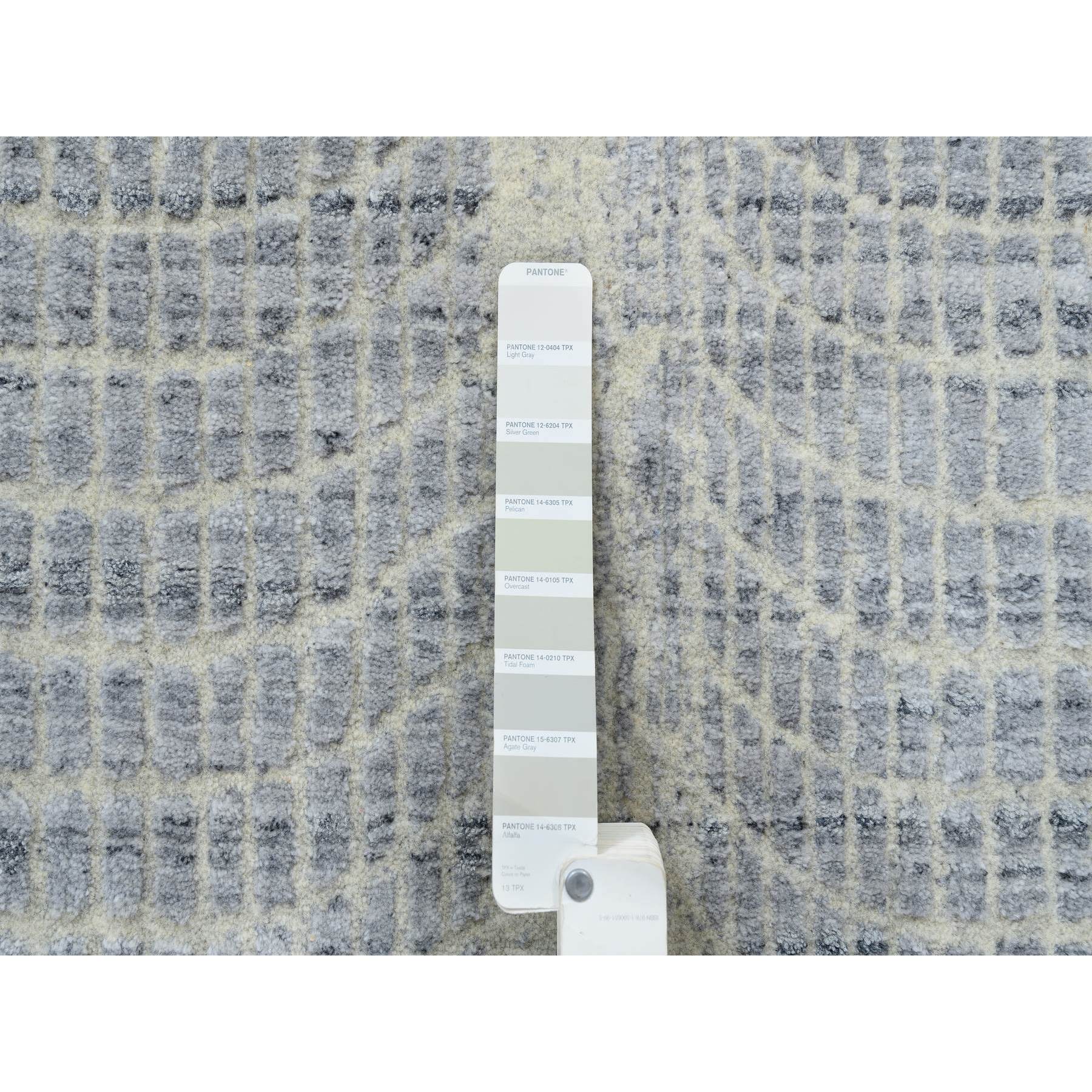 2'6"x8' Gray, Tone On Tone Transitional Erased Design, Jacquard Hand Loomed, Wool And Plant Based Silk, Oriental, Runner Rug FWR382572