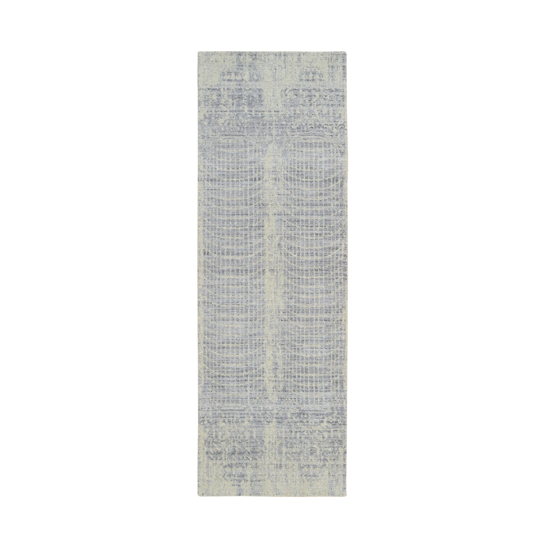 2'6"x8' Gray, Tone On Tone Transitional Erased Design, Jacquard Wool And Plant Based Silk, Hand Loomed, Oriental, Runner Rug FWR382566