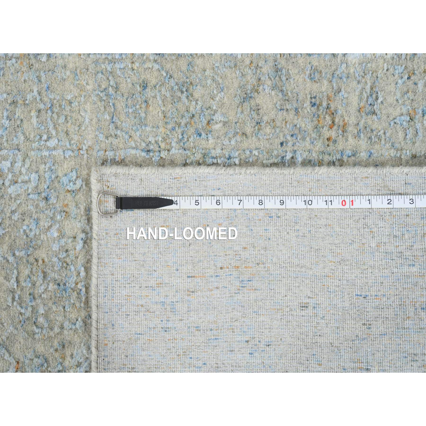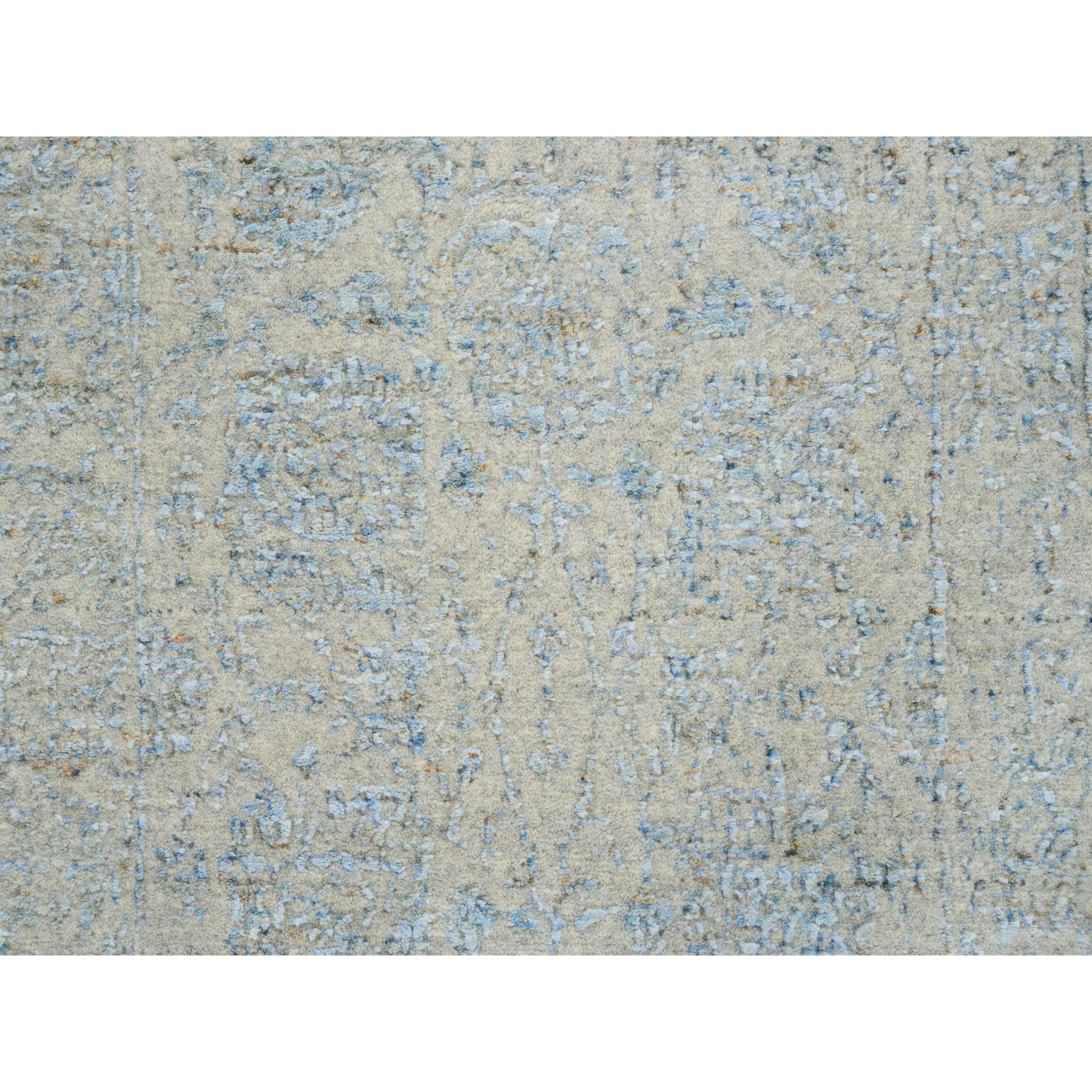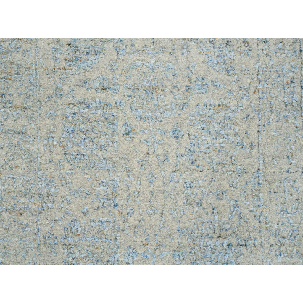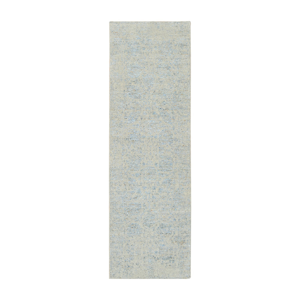 2'6"x8' Gray With Touches Of Blue, Jacquard Hand Loomed, Tabriz Design Wool And Plant Based Silk, Runner Oriental Rug FWR387348