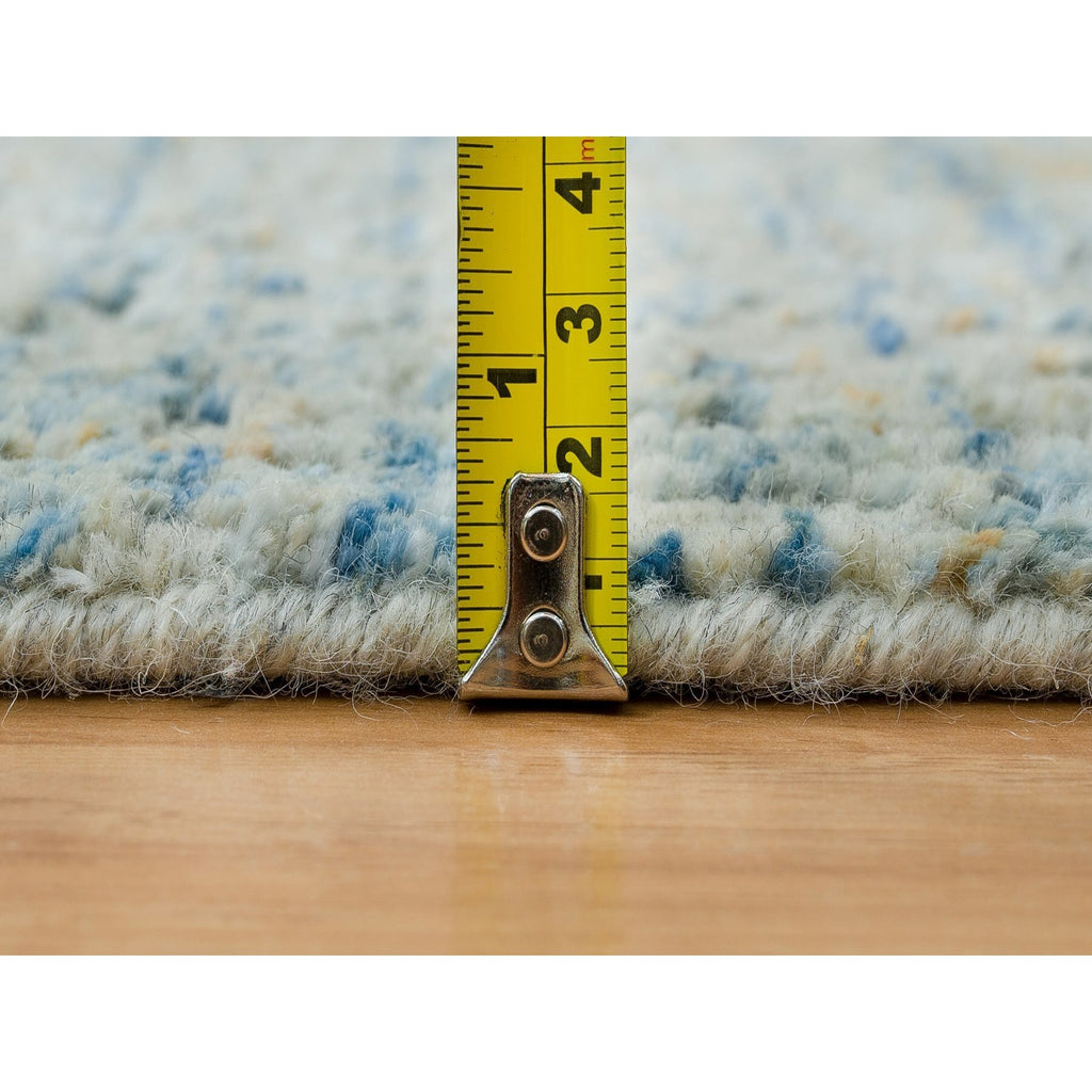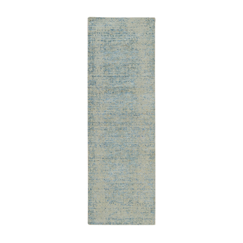 2'6"x8 Gray With Touches Of Blue, Modern Jacquard Hand Loomed, Soft To The Touch Wool And Plant Based Silk, Runner Oriental Rug FWR391164