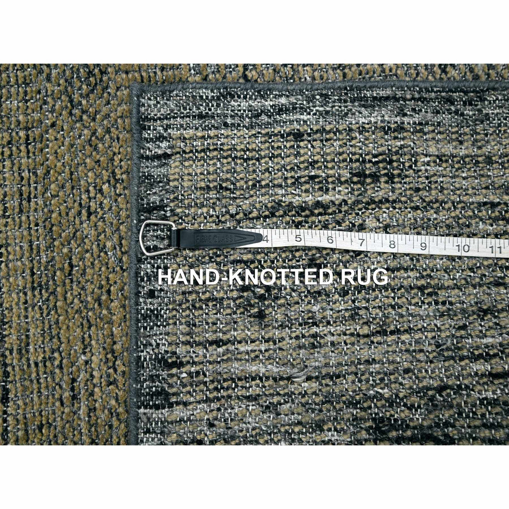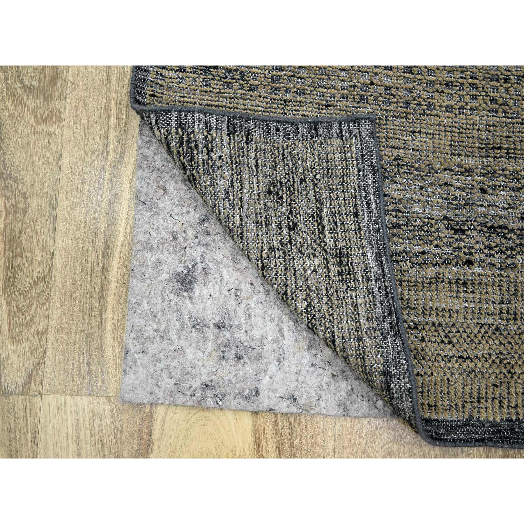 2'6"x8' Latte Brown With Charcoal Black, Oxidized And Distressed Grass Design With Exposed Warps, Pure Wool, Hand Knotted, Runner, Oriental Rug FWR457596