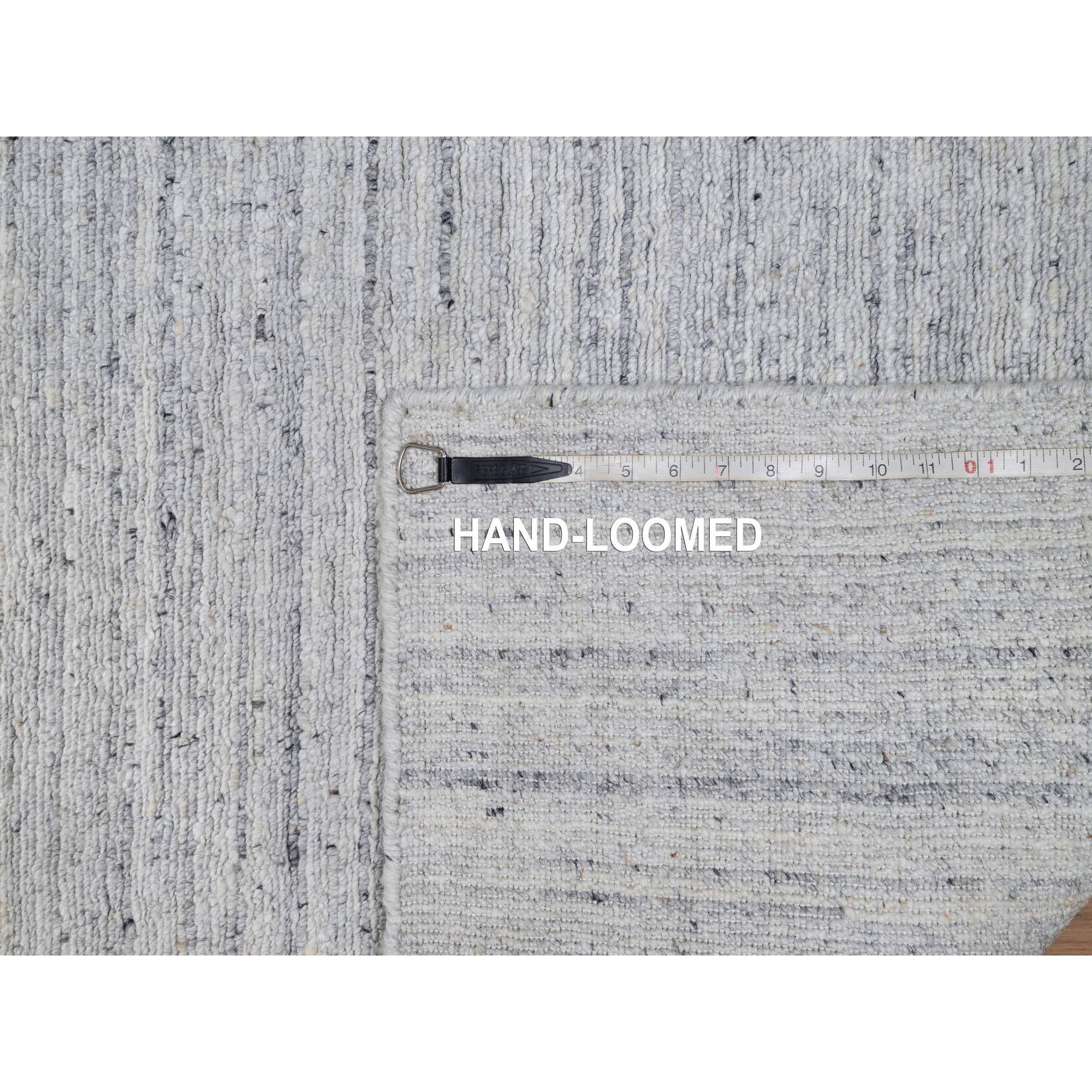 2'6"x8' Lily White, Soft Pile, Plain Modern Striae Design, Hand Loomed, Pure Wool, Runner, Oriental Rug FWR547086