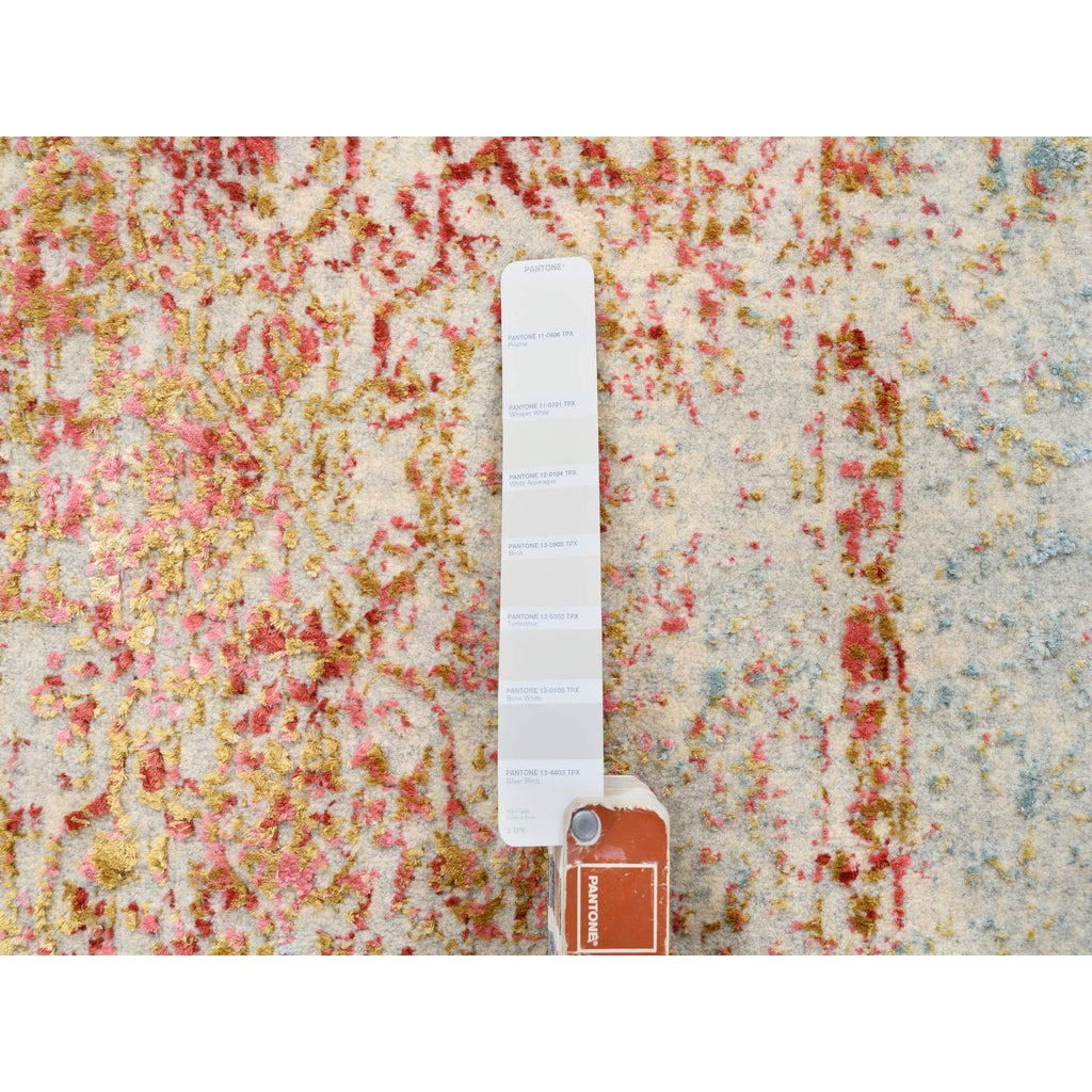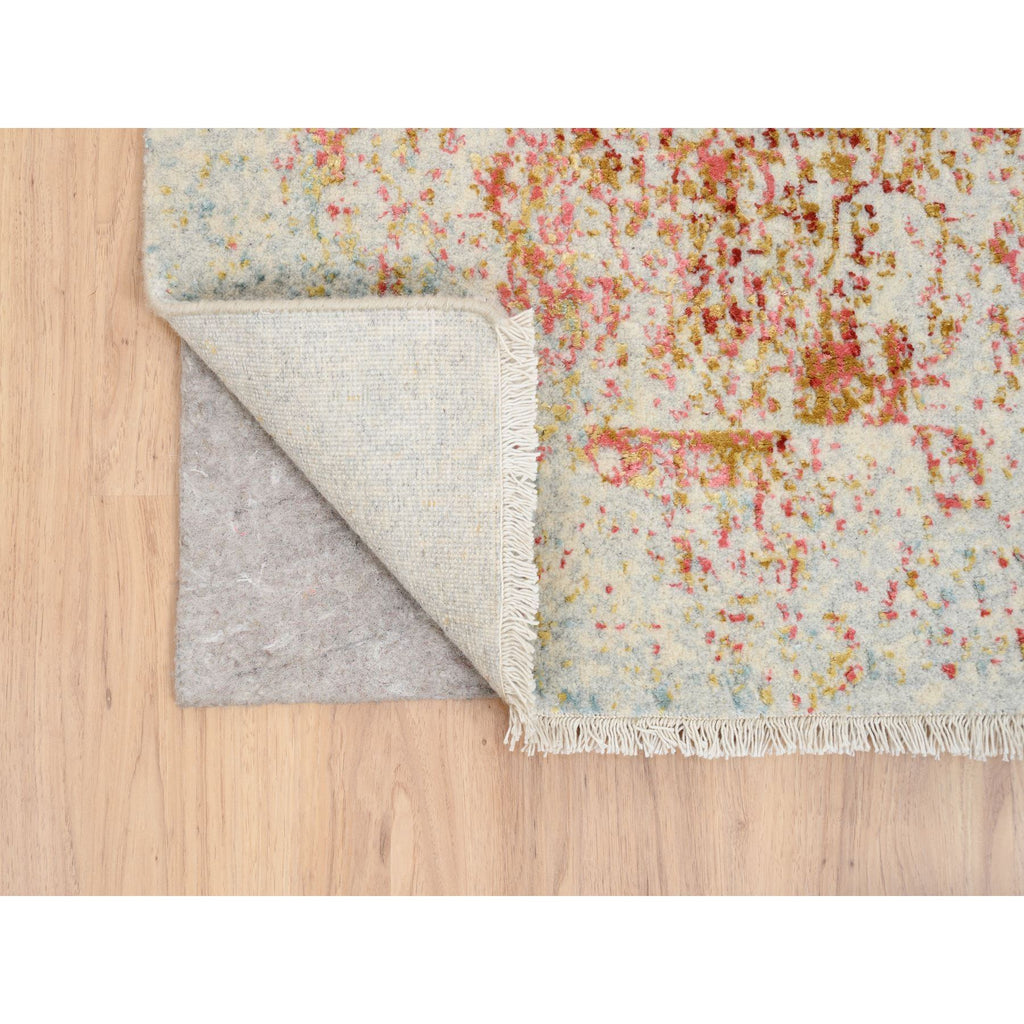 2'6"x8' Pink Persian Erased Medallion Design Wool And Pure Silk Hand Knotted Oriental Runner Rug FWR380778