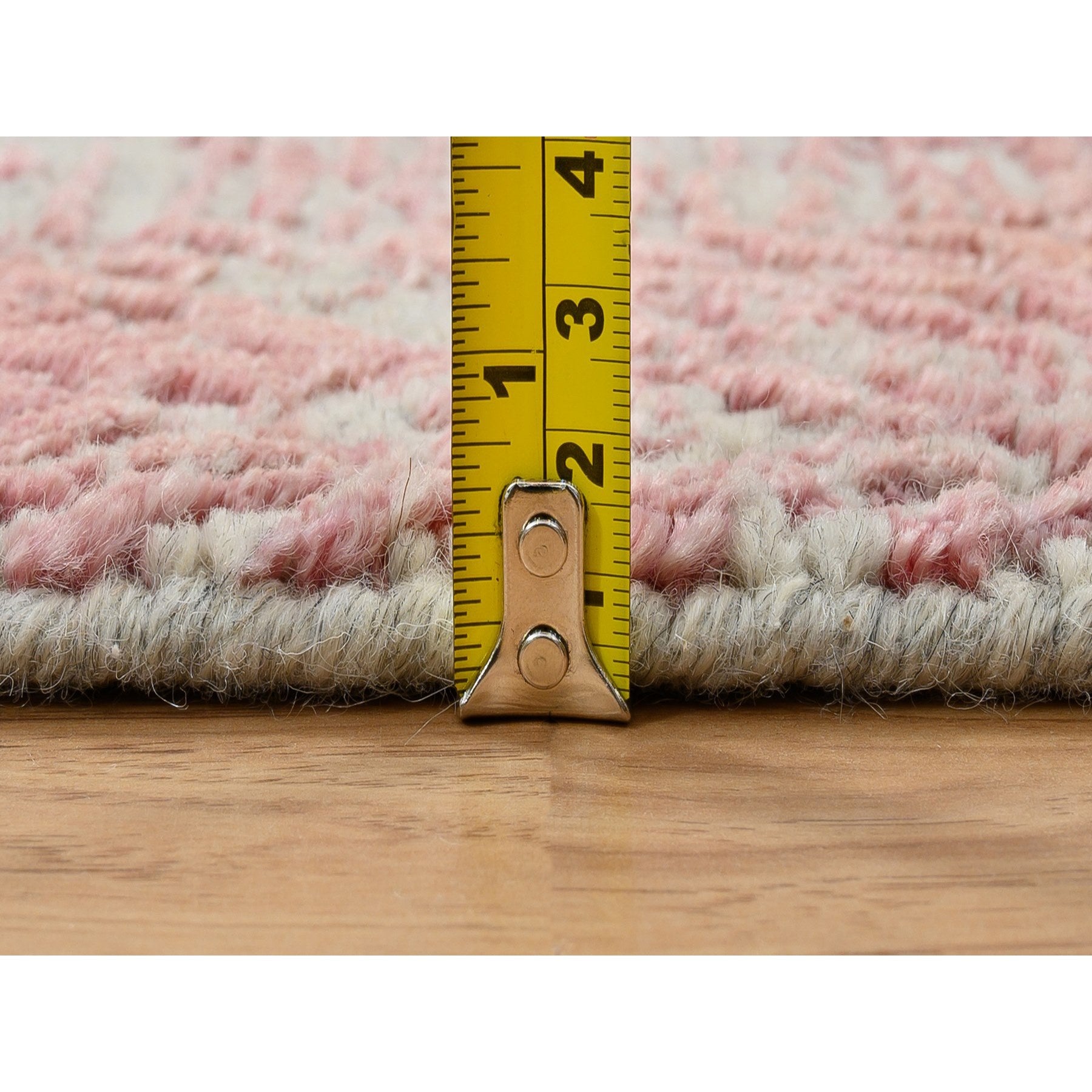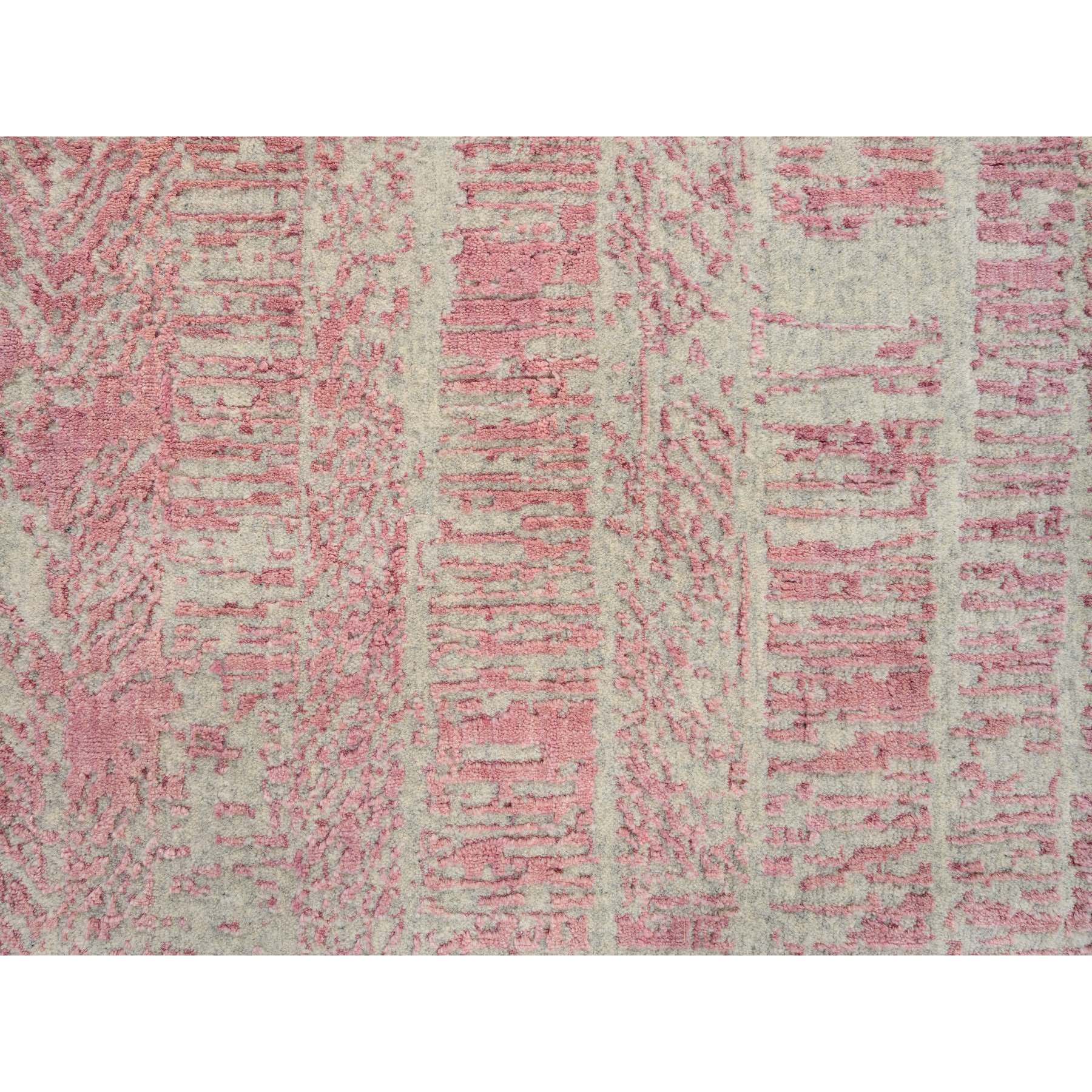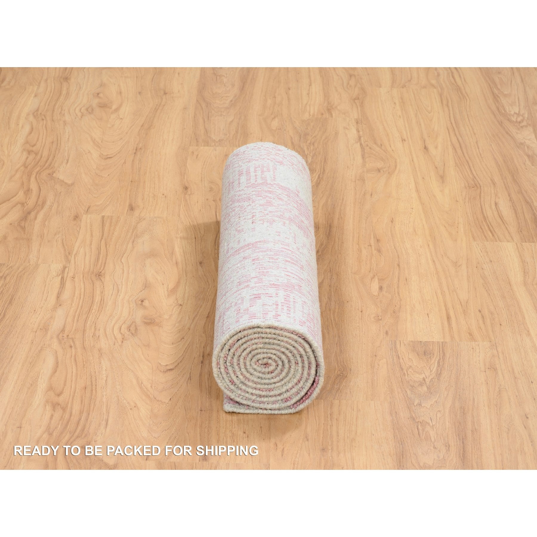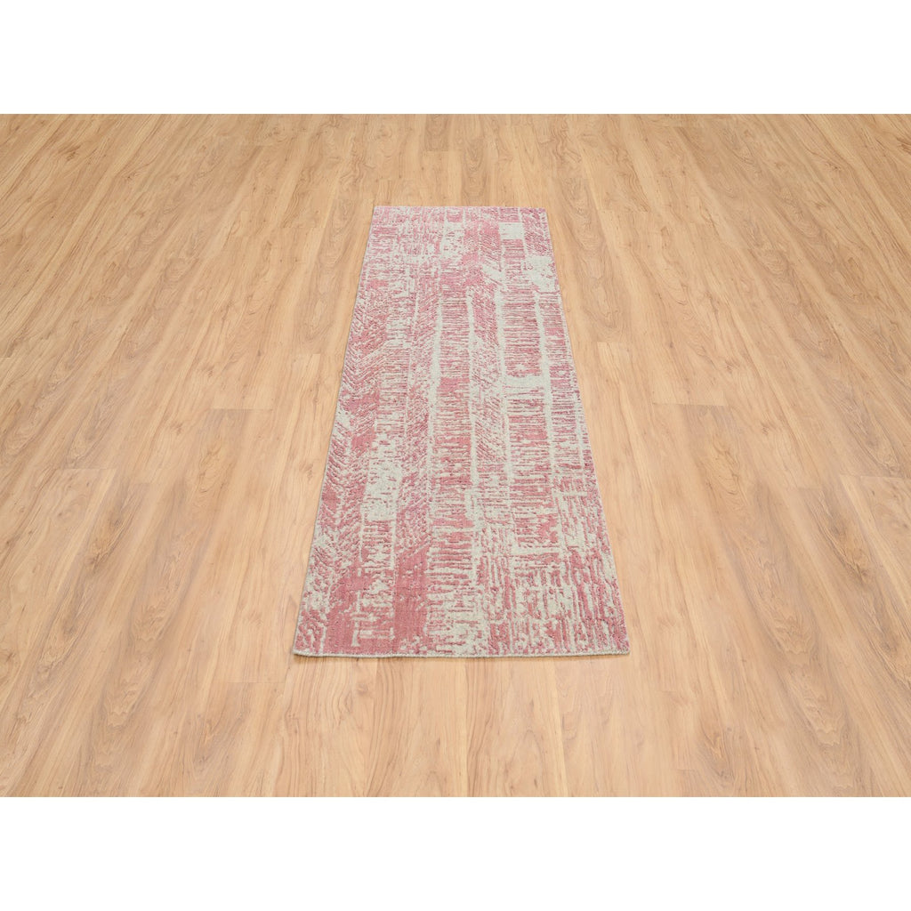 2'6"x8' Rose Pink, Jacquard Hand Loomed, All Over Design Wool And Art Silk, Runner Oriental Rug FWR388872
