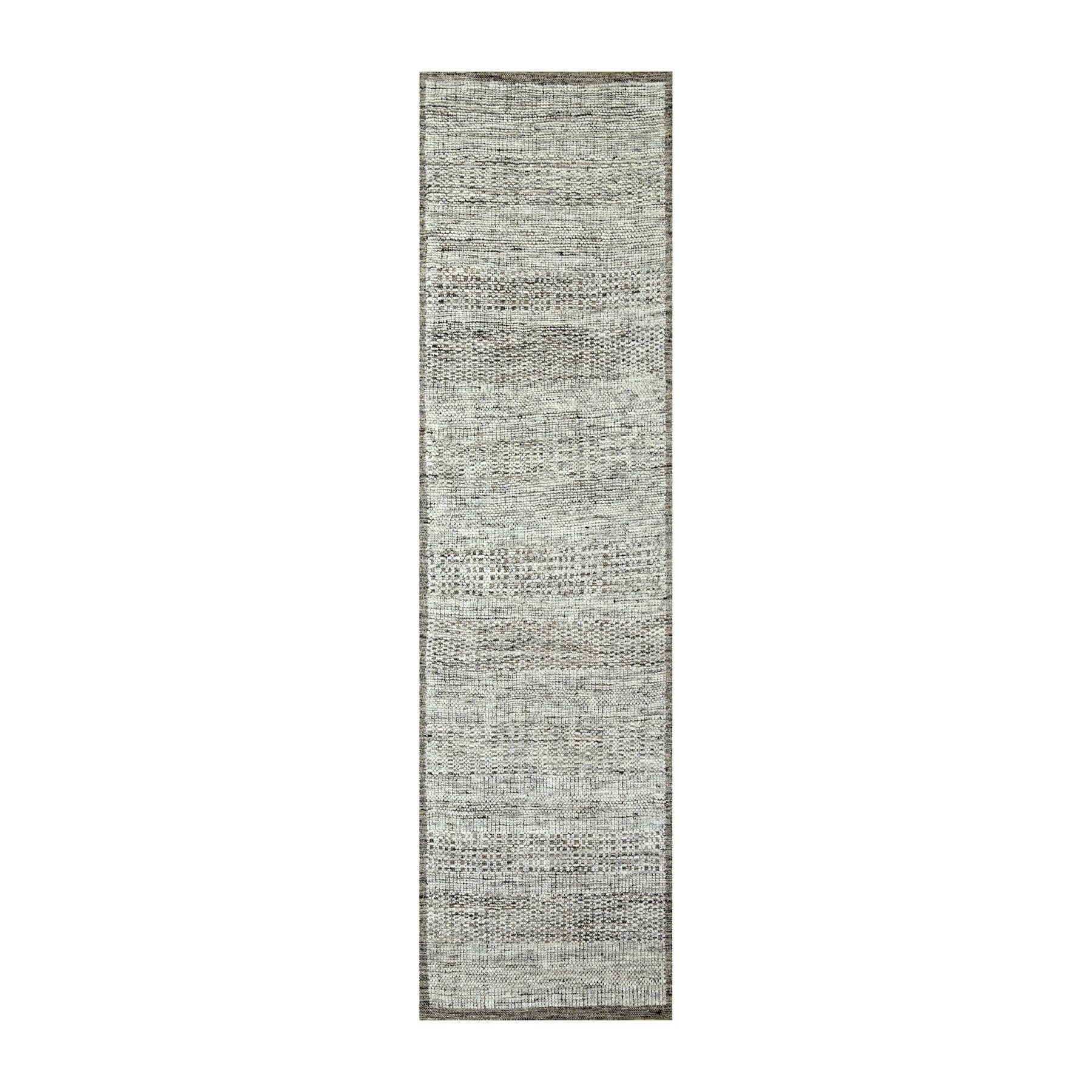 2'6"x8' Walnut Brown, Hand Knotted, Organic Wool, Oxidized And Distressed Grass Design With Exposed Warps, Runner, Oriental Rug FWR460482