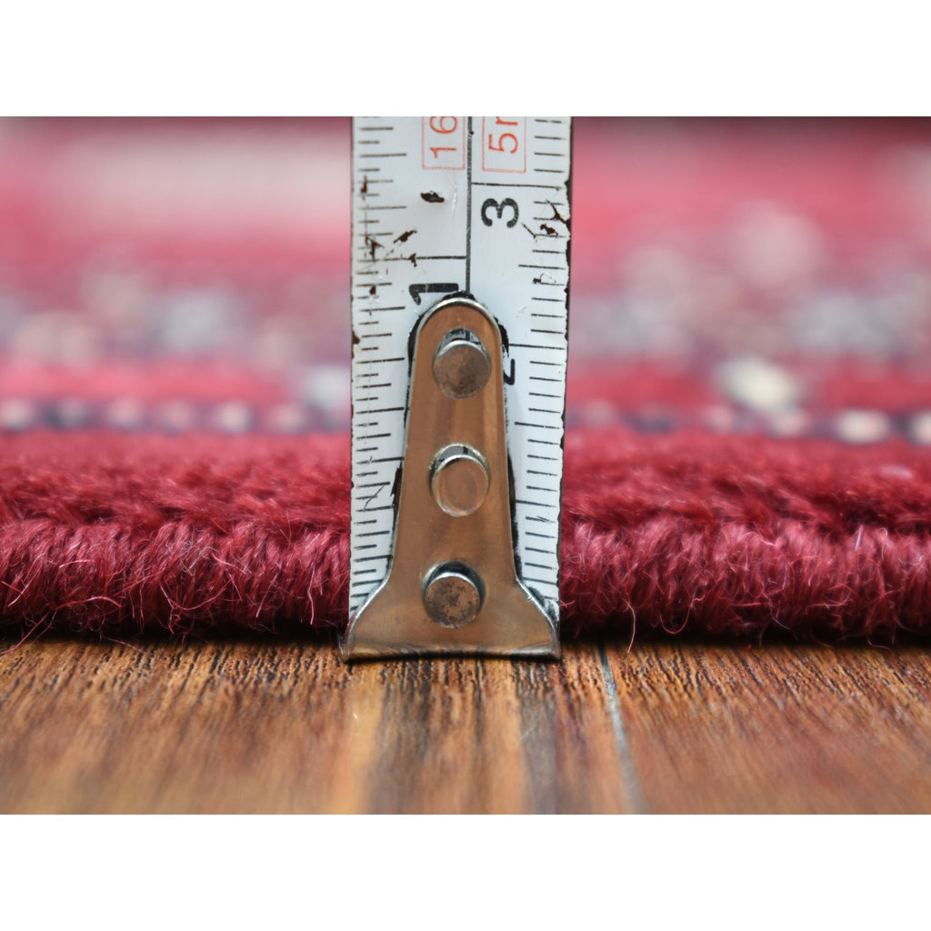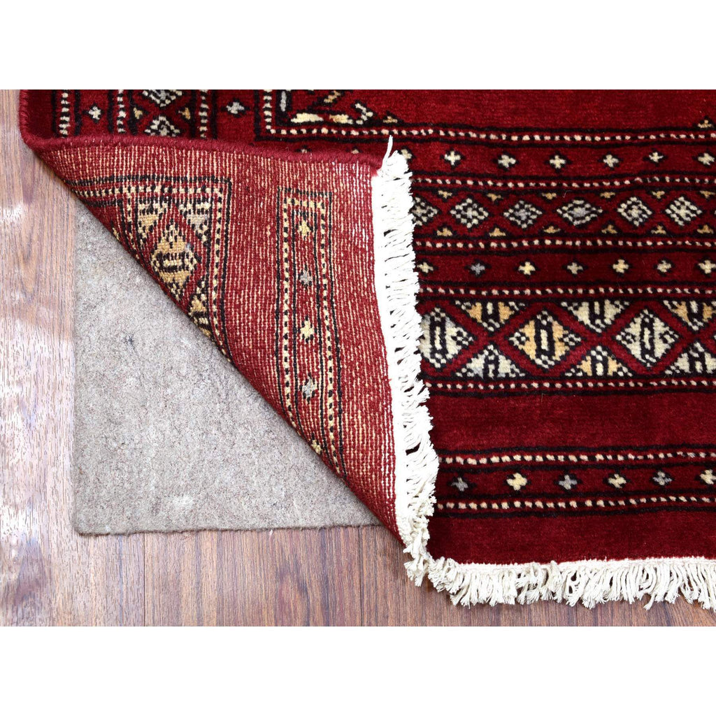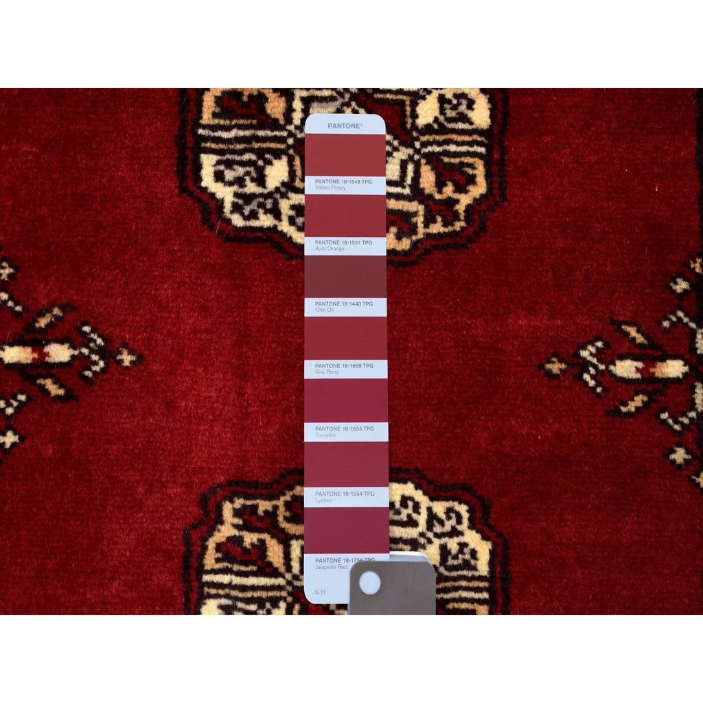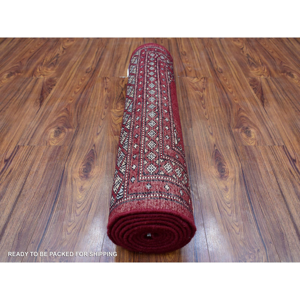 2'6"x9'1" Mori Bokara With Tribal Medallions Design Deep And Rich Red Extra Soft Wool Hand Knotted Oriental Runner Rug FWR415212