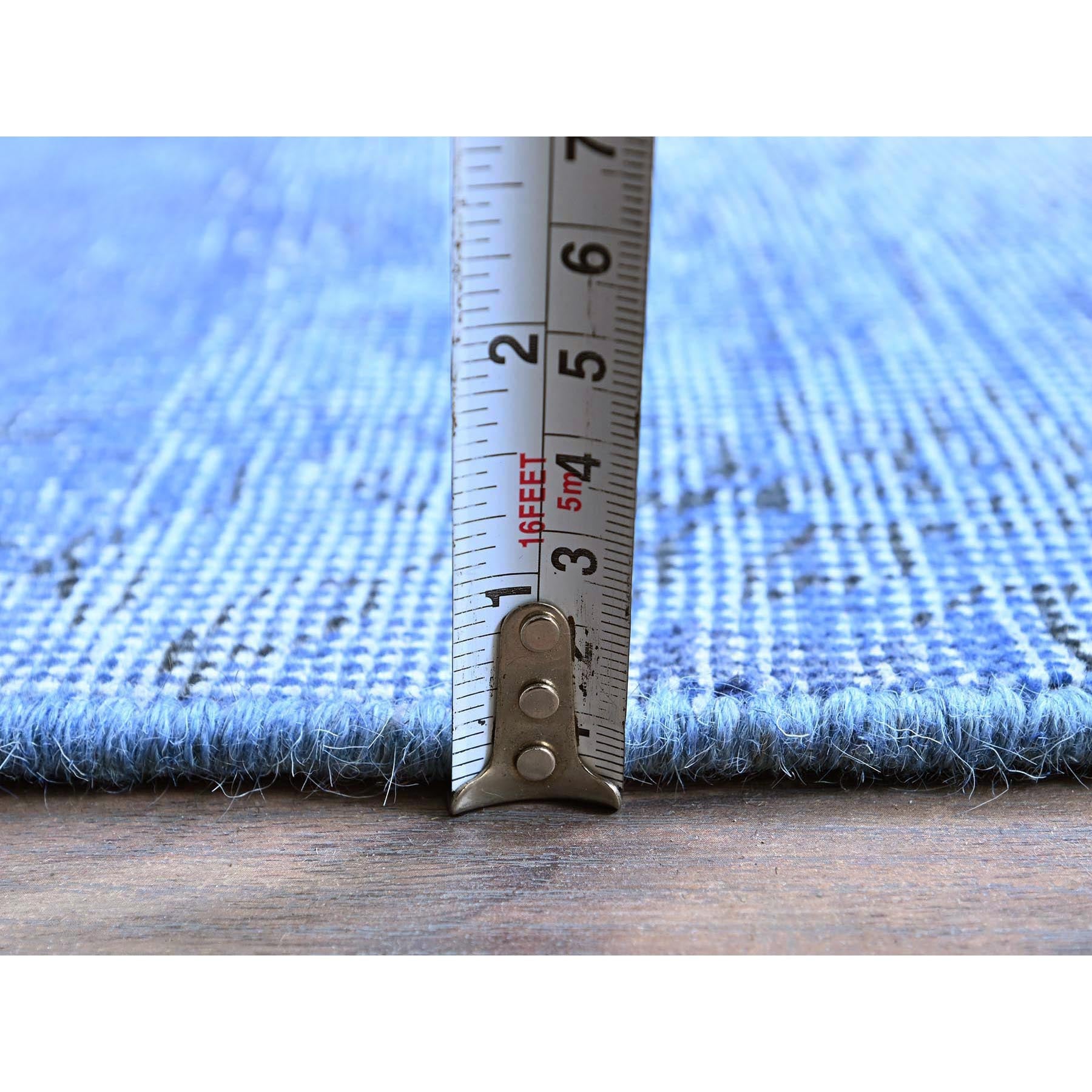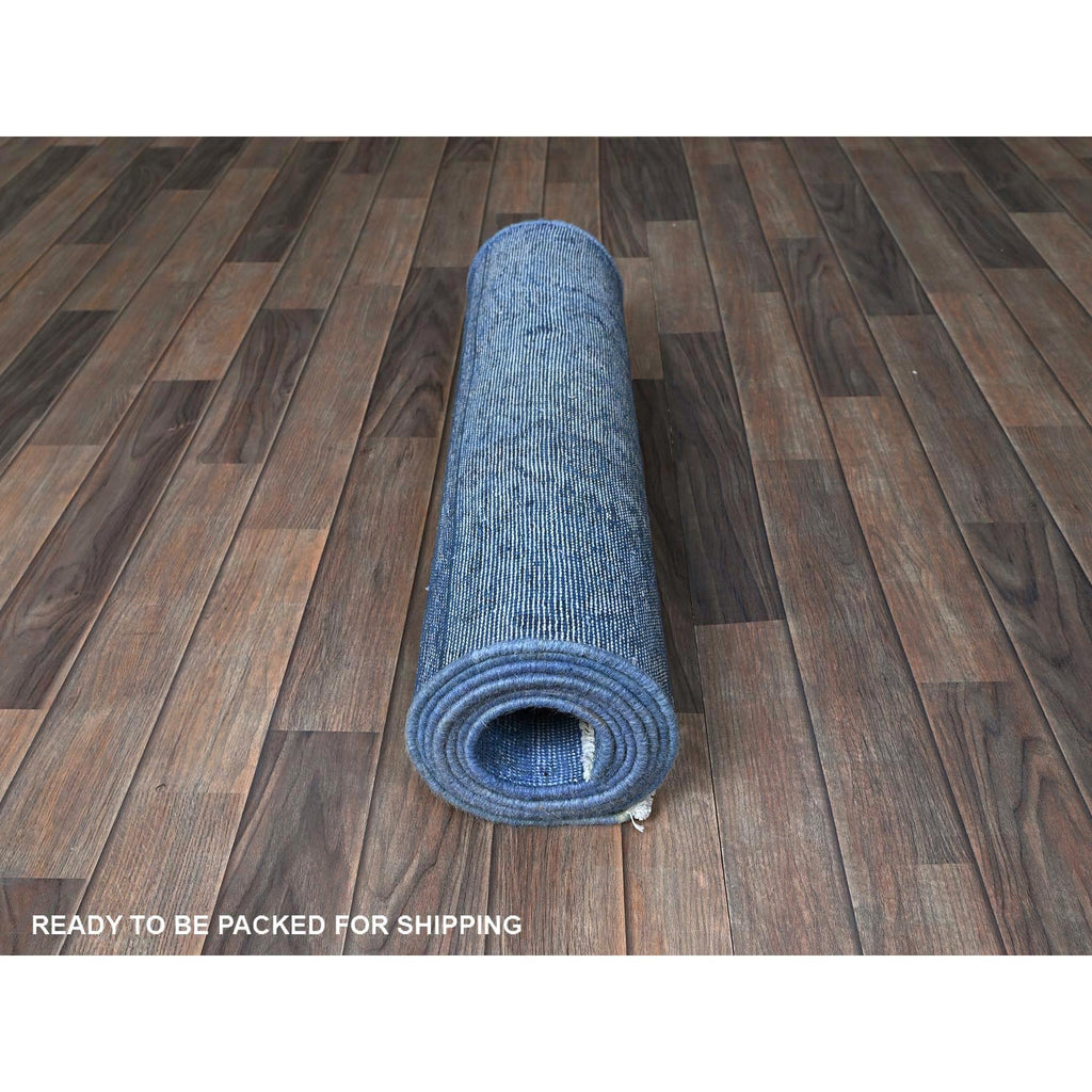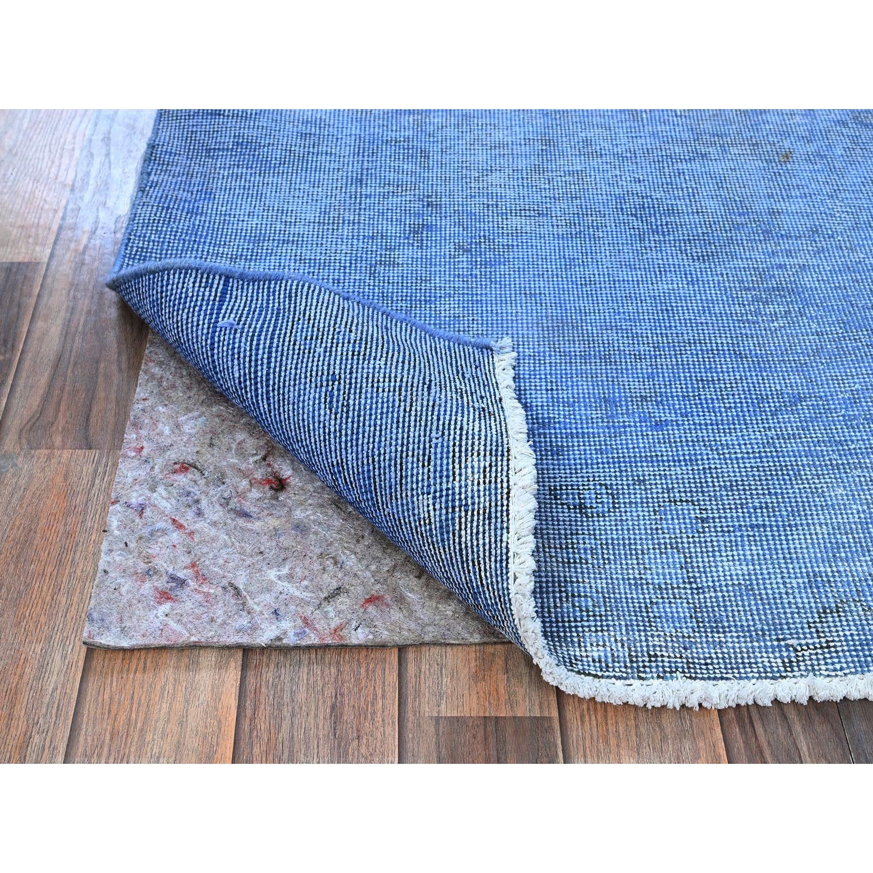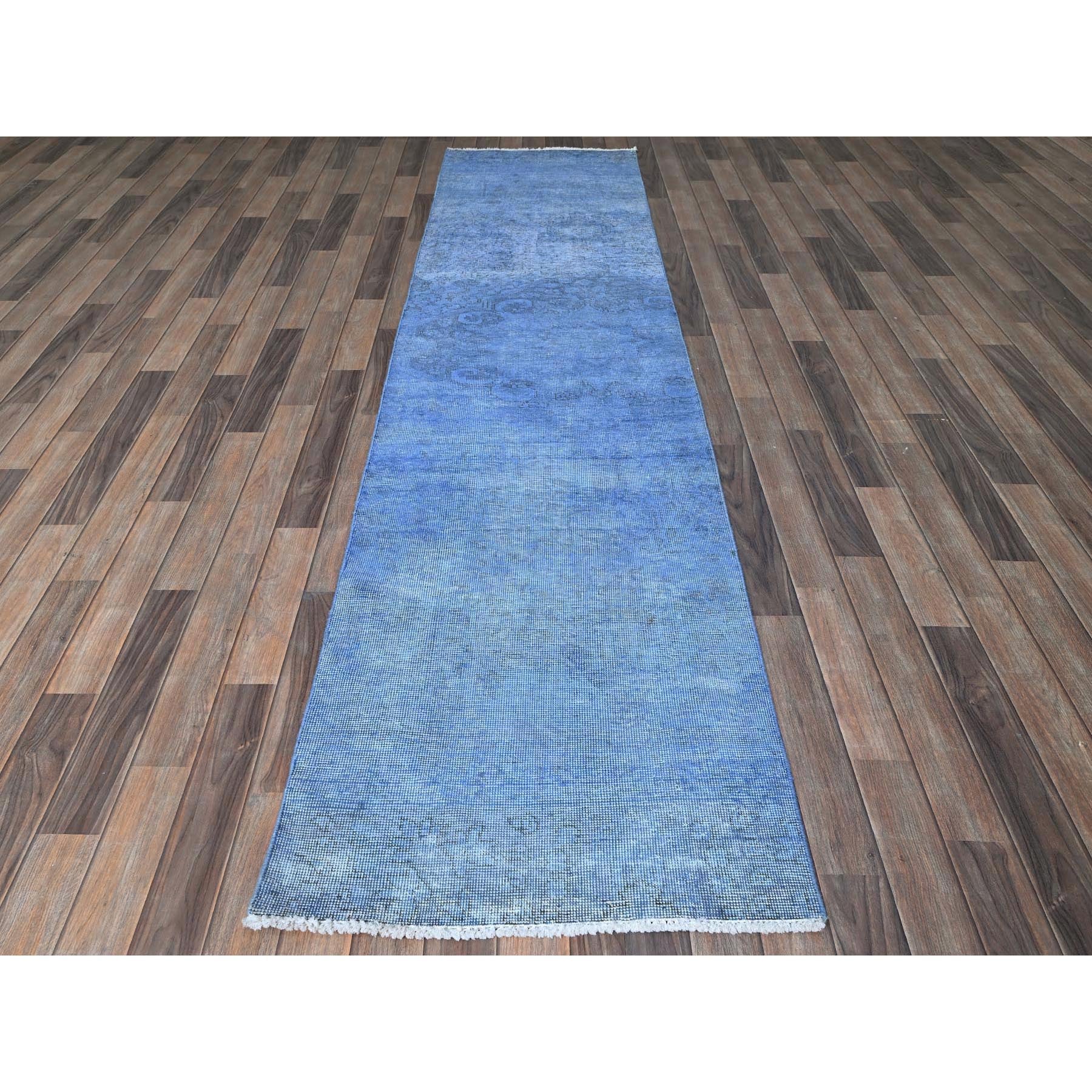 2'6"x9'10" Berry Blue, Overdyed Vintage Persian Tabriz, Worn And Distressed, Sides And Ends Professionally Secured, Sheared Low, Hand Knotted, 100% Wool, Fragment, Runner, Oriental Rug FWR5670