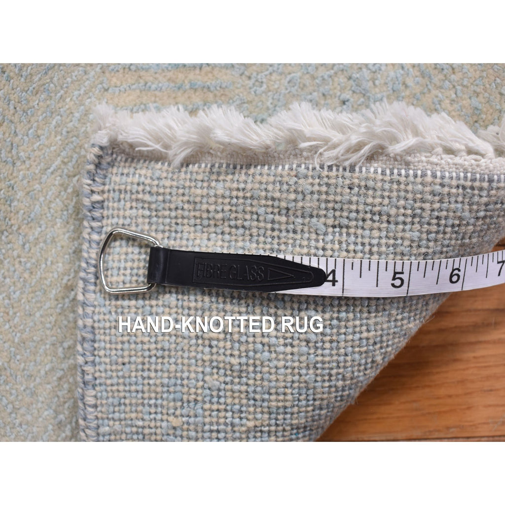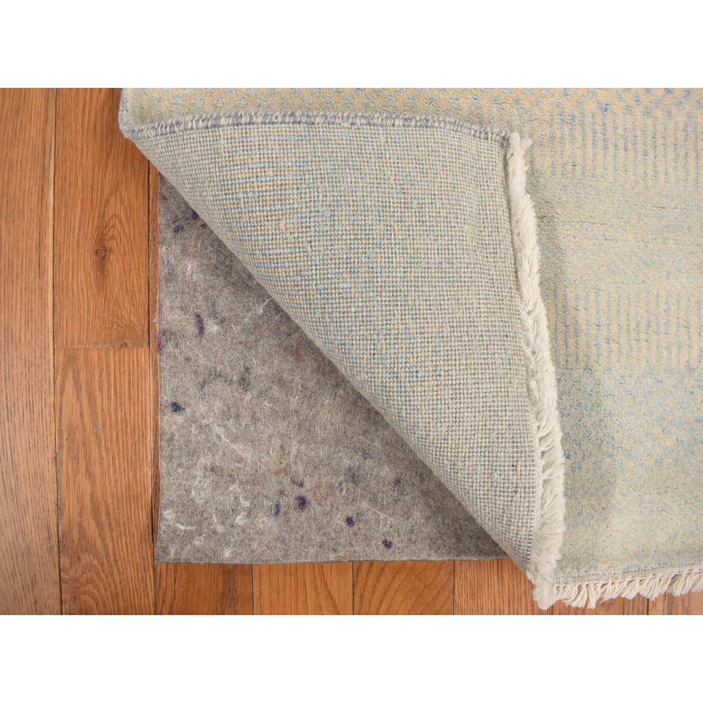 2'6"x9'10" Marian Blue, Grass Design Gabbeh, Wool And Silk, Hand Knotted, Runner Oriental Rug FWR468564