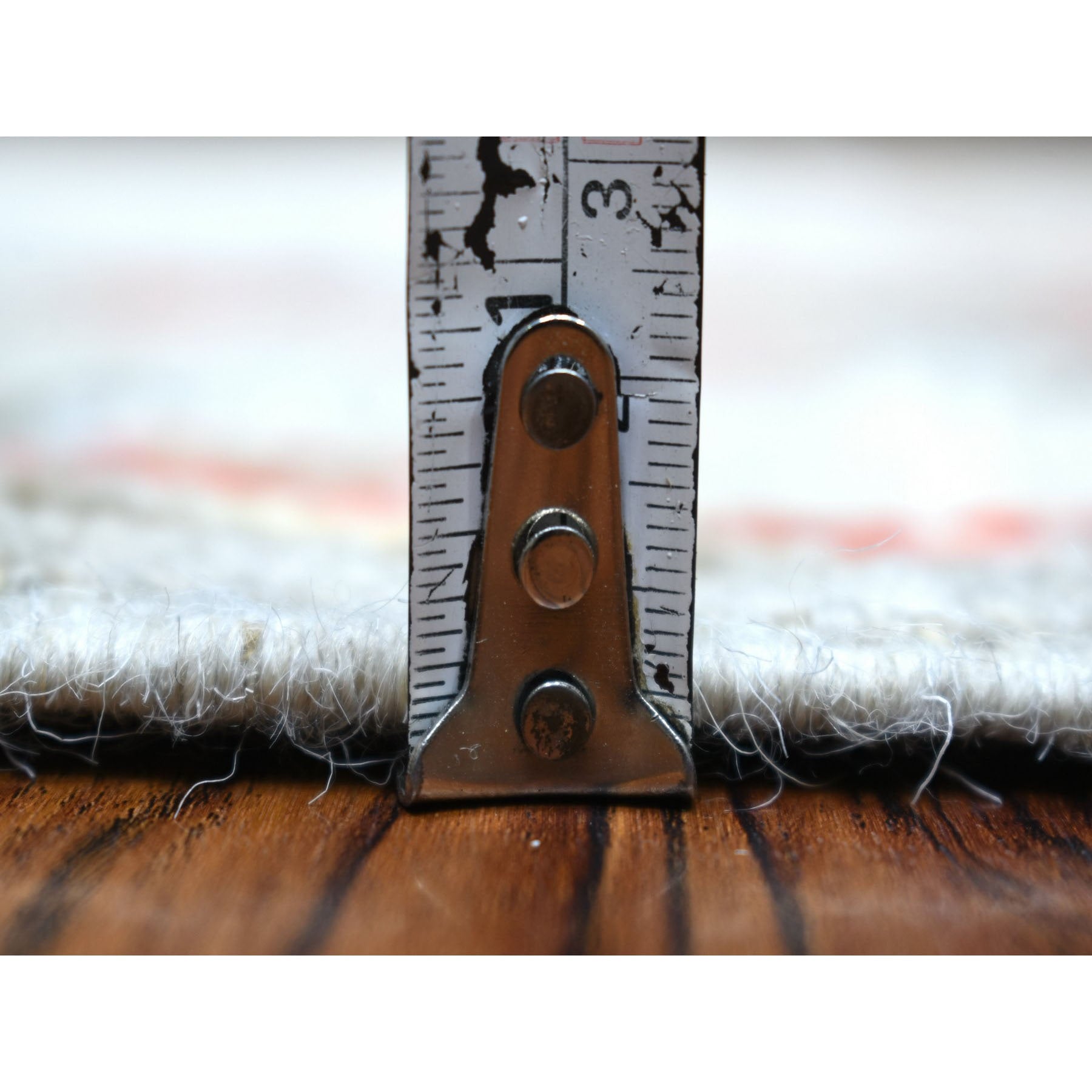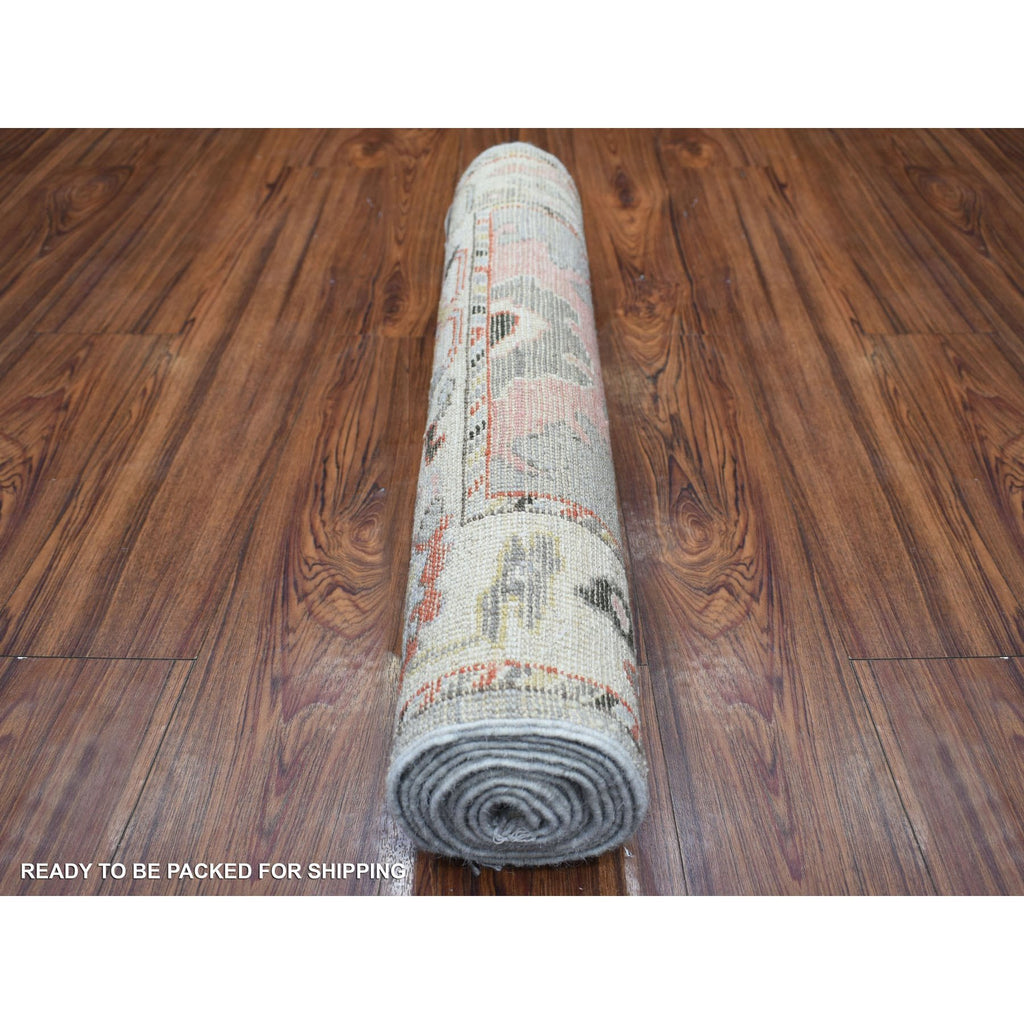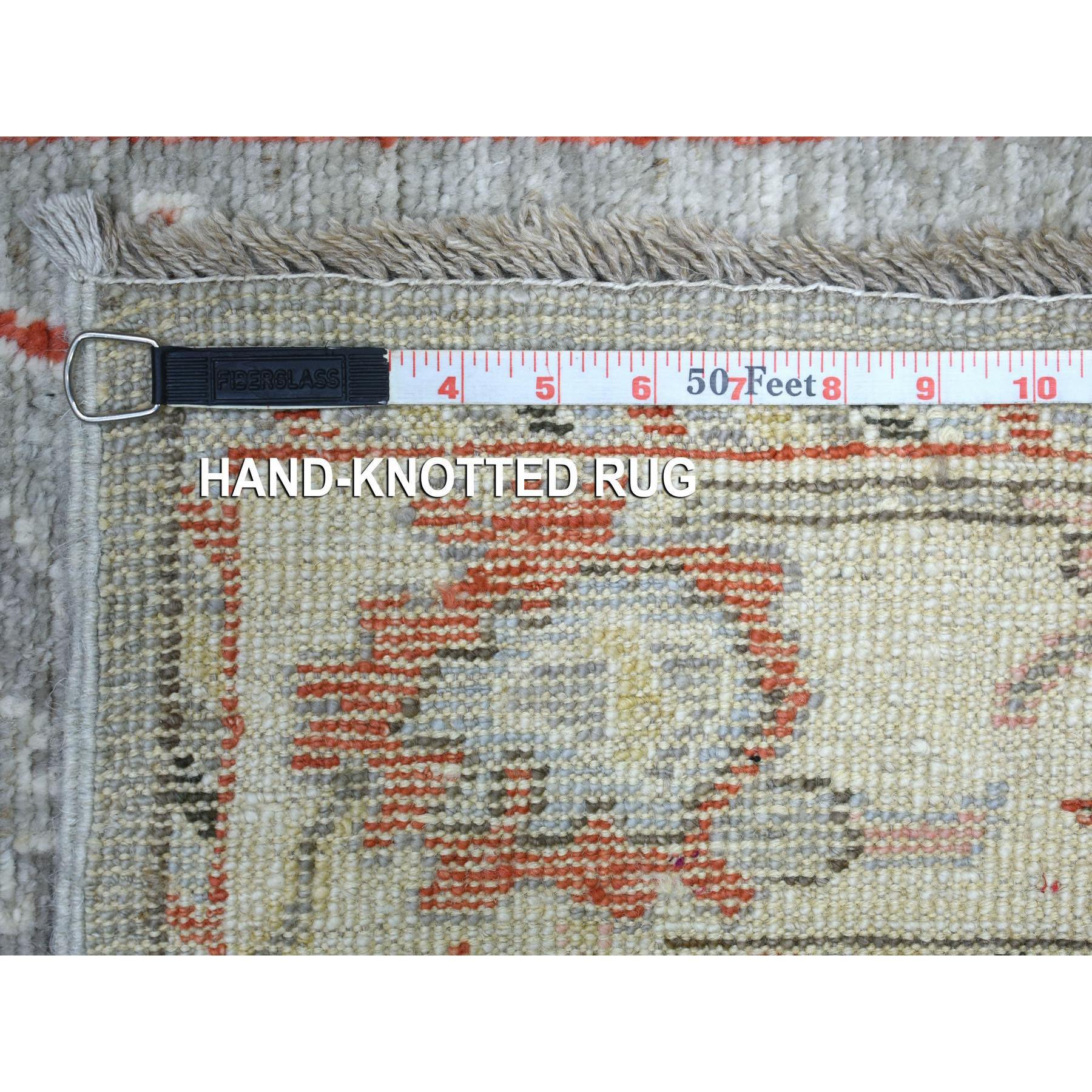 2'6"x9'7" Gray, Afghan Angora Oushak With Pop Of Colors, Hand Knotted, Extra Soft Wool Runner Oriental Rug FWR426996